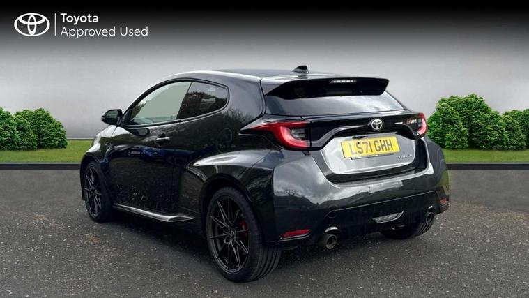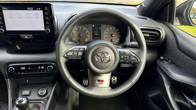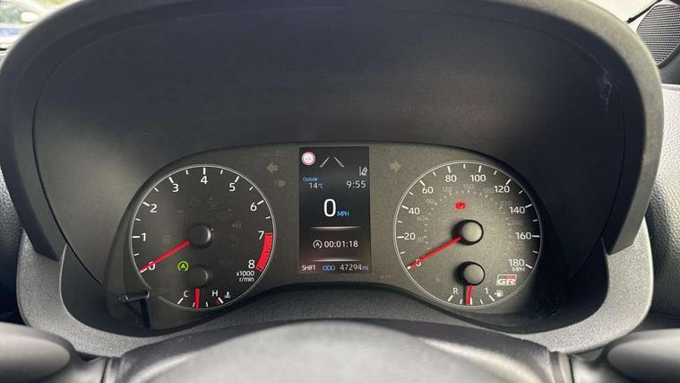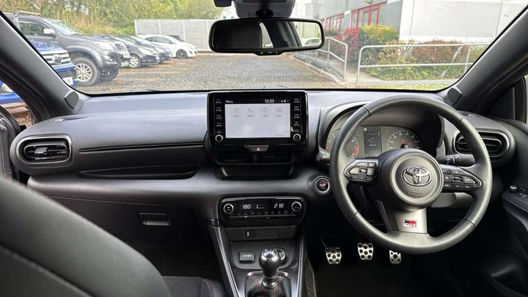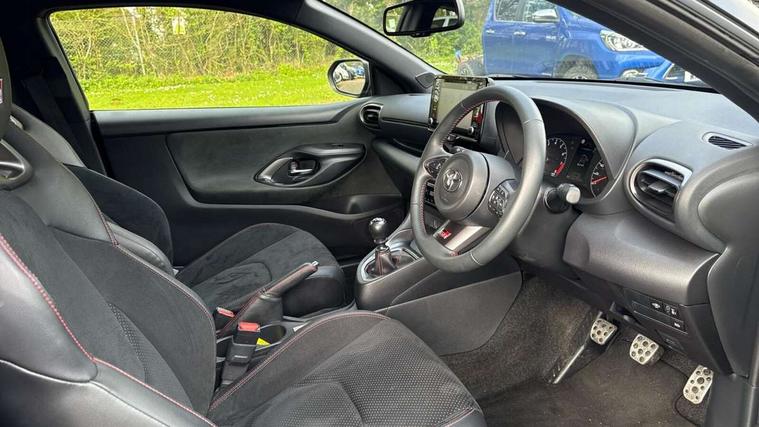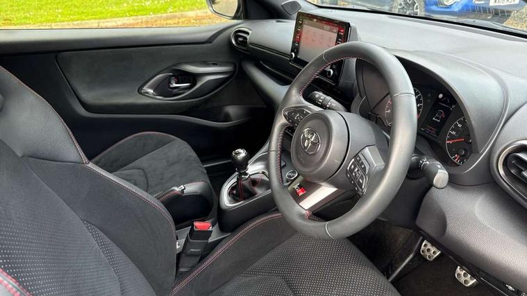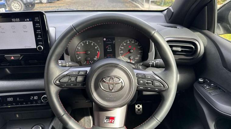Apple car play/Android Auto, Coloured TFT multi informational display, eCall emergency system, Emergency steering assist, Intelligent adaptive cruise control, Lane Departure Alert (LDA) switch on steering wheel, Lane trace assist, Power Steering, Pre-collision system (PCS), Reversing camera, Road sign assist - RSA, Circuit tuned GR suspension, Double wishbone rear suspension, GR-Four AWD switch, MacPherson front suspension, Vehicle Stability Control (VSC), 6 speakers, 8" Multimedia display touch screen, DAB Digital radio, Toyota touch 2 multimedia system, USB connection, Adaptive high beam assist, Adaptive LED Headlights, Air intakes for brake cooling, Auto dimming eletrochromatic rear view mirror, Auto windscreen wipers, Automatic headlights, Automatic headlights cut-off, Automatically retractable door mirrors, Black contrasting colour door mirrors, Black rear spoiler, Body coloured door handles, Body coloured rear bumper, Carbon fibre roof wrap, Door scuff plates, Dual exhaust pipes, Electric adjustable heated door mirrors, Follow me home headlights, Front auto power windows with anti jam protection, Gloss black GR front bumper, GR badges 1 front, 1 rear and 2 sides, GR lower front grille, Integrated LED indicators in door mirrors, LED daytime running lights, LED fog lights, LED High mounted stop lamp, LED rear combination lights, Piano black side air vents, Privacy glass on rear and back windows, Rear auto power windows with anti jam protection, Rear window defogger, Shark fin antenna, 12V socket in front, 2 rear head restraints, 3 spoke leather sports steering wheel, 60/40 split folding rear seat, Aluminium pedals, Clean air filter, Driver and passenger headrests, Driver's sun visor with vanity mirror, Dual zone automatic air conditioning, Front bottle holders, Front cup holders, Front map light, Front sports seats, GR floor mats, GR logo on steering wheel, GR Ultrasuede leather upholstery, Height adjustable driver's seat, Isofix child rear seat restraints, Leather gearshift, Leather handbrake, Manual slide adjustable on driver's and passenger seats, Microphone on front personal light, Multimedia switch on steering wheel, Pollen filter, Red stitching on gearshift, Red stitching on handbrake lever, Satin chrome interior door handles, Soft tonneau cover, Ticket holder on driver's sun visor, Tilt/telescopic steering column, ABS with Brake Assist, Airbags - driver and front passenger, Driver and passenger side airbags, Emergency brake light system (EBS), Front passenger airbag on/off switch, Front seatbelt reminder, Hill start assist control (HAC), Rear passenger airbag, Rear seat belt reminder, Red brake callipers, Red sport front and rear brake pads, Start holding control, Torsen limited slip differentials x2, Tyre pressure warning system, Alarm/immobiliser, Keyless smart entry with push button start, 18" 10 spoke forged alloy wheels with Michelin pilot sport, Tyre repair kit,