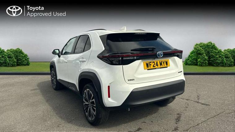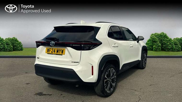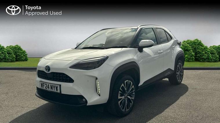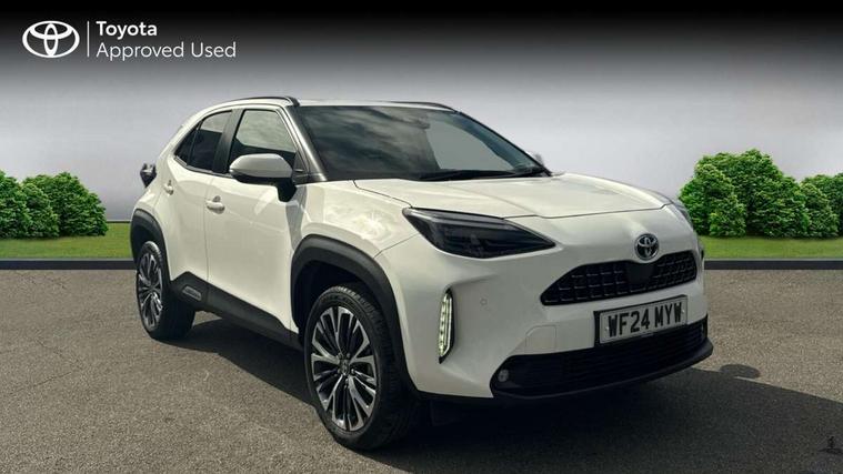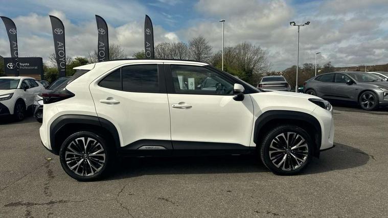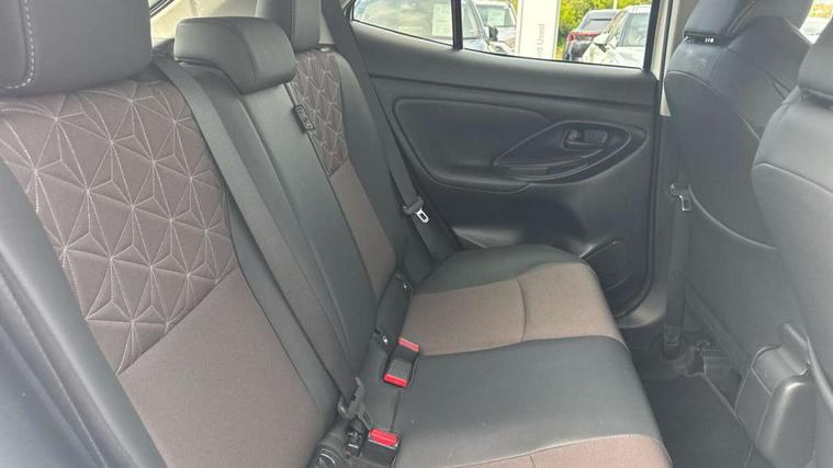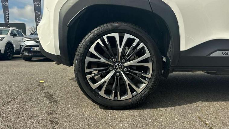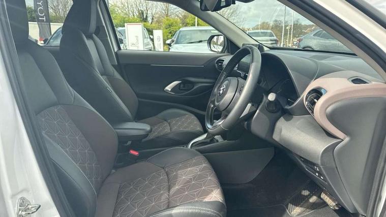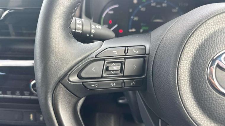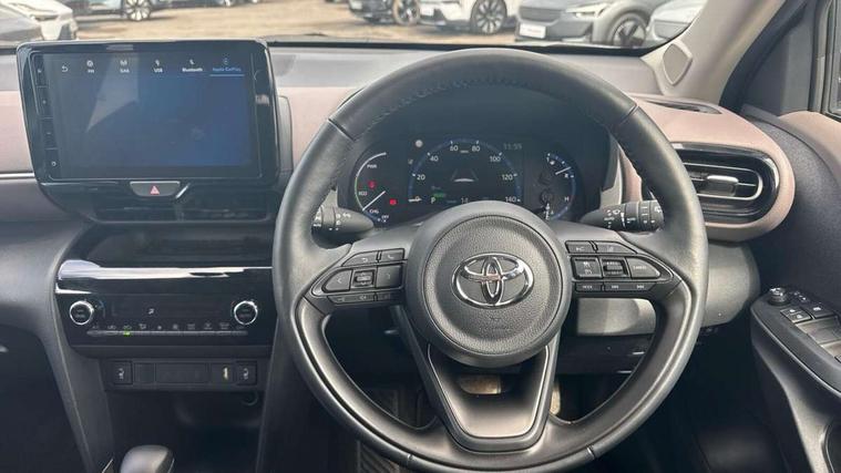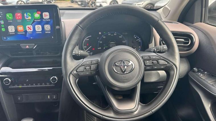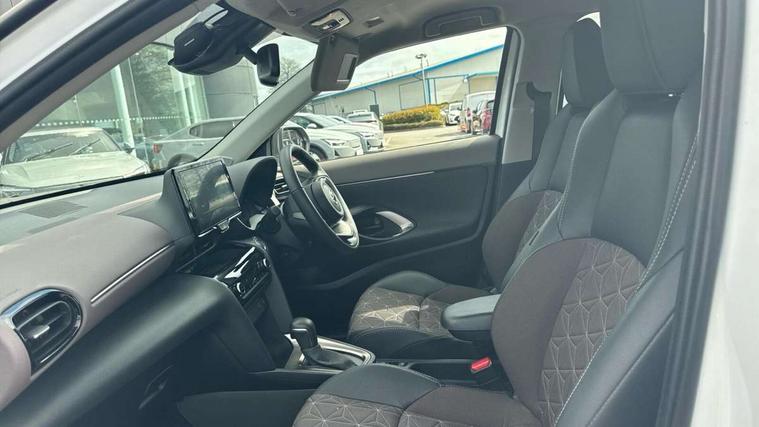 10.5" Multimedia display screen, 10.5" Toyota smart connect+ with navi multimedia system with wireless Smartphone integration incl Apple CarPlay, 360 degree panoramic view monitor, 7" Multi information display screen, Adaptive cruise control, multi info switches on steering wheel, Adjustable speed limiter, Advanced parking assist, Blind spot monitoring, Bluetooth connectivity, Color multi-information display, Digital speedometer, Digital tachometer, Drive mode selector, Driver attention alert system, Dynamic guide lines on reversing camera, eCall emergency system, Electric power steering, Emergency driving stop system, Full range intelligent adaptive cruise control, Hybrid system indicator, Intelligent front and rear parking sensors with clearance sonar and automatic braking, Intersection turn assist, Key reminder warning, Lane change assist, Lane departure warning, Lane trace assist, My T Connected services, Power tailgate, Pre-collision system enhanced with emergency steering assist, Rear cross traffic alert with brake assist, Remote boot door release in cabin, Road sign assist - RSA, Safe exit assist, Telephone switch on steering wheel, Wireless Mobile Phone Charger, Steering assisted vehicle stability control, 6 speakers, DAB Digital radio, Front USB Type-C connector, Front USB-C device charger, 3rd brake light, Acoustic windscreen glass, Anti-jam protection on power windows, Auto dimming rear view mirror, Auto high beam [AHB] with on/off switch, Auto intermittent windscreen wipers, Automatic headlights, Automatic headlights cut-off, Automatically retractable door mirrors, Black door moulding, Black lower front grille, Black protection moulding on side doors, Black roof rails, Black wheel arch mouldings, Body colour door handles, Body colour front bumper, Body colour rear bumper, Electric adjustable heated door mirrors, Follow me home headlights, Front and rear electric windows with auto up/down function, Gloss black upper front grille, Headlight cut off reminder, Indicators integrated on door mirrors, Intermittent rear wiper, Kick activated power back door, LED daytime running lights guide, LED front fog lights, LED front light guide, LED Indicators, LED projector headlights, LED rear lights with sequential indicators, Manual headlight levelling, Meshed shape upper front grille, Noise reduction layer on windscreen, Privacy glass, Rain sensor, Rear side wing doors, Rear spoiler, Rear window defogger, Shark fin antenna, 12v power outlet - front, 12V power point in boot, 2x Rear coat hooks, 3 seat bench in 2nd row, 3 spoke leather steering wheel, 40/60 split deckboard, 40:20:40 split folding rear bench seat, Adjustable rear headrests, Adjustable speed limiter switch on steering wheel, Boot light, Central armrest, Driver and front passenger personal lights, Driver and front passenger Whiplash injury Lesseing seats, Driver and passenger seatback pockets, Dual zone automatic air conditioning, Fabric door trim, Front console box, Front cup holders, Front door pockets, Front head restraints, Front sport seats, Front/rear assist grips, Gear shift indicator, Grey roof lining, Heated driver and passenger seats, Heated steering wheel, Height adjustable driver's seat, Height adjustable front passenger seat, Hooks for luggage holding belts, ISOFIX child restraint system, Lane departure alert switch on steering control, Leather gearshift, LED centre room light, Light on driver and passenger sun visor, Manual telescopic and tilting steering wheel, Mirror on driver and passenger sun visor, Nanoe-X air purifier, Partial synthetic leather upholstery, Pollen air filter, Power adjustable lumbar support on driver seat, Rear cup holders, Rear door pockets, Rear head restraints, Remote air-conditioning system, Single compartment glovebox, Single front passenger seat, Soft tonneau cover, Storage box under boot floor, Voice recognition switch on steering wheel, White ambient lighting in centre console, White ambient lighting in footwell, White ambient lighting on front doors, Yaris cross floor mats, Tech pack - Yaris Cross, 3x3 point rear seat belts, ABS+EBD+Brake assist, Downhill Assist Control (DAC), Driver and passenger central airbags, Driver and passenger front airbags, Driver and passenger side airbags, Electronic parking brake, Emergency brake light system (EBS), Front seat belt reminder, Hill start assist control (HAC), Passenger airbag on/off switch, Pre-collision system with pedestrian and cyclist detection, Rear door child safety locks, Rear passenger side airbags, Rear seat belt reminder, Traction control, Tyre pressure warning system, Immobiliser, Intrusion alarm, Keyless smart entry with push button start, Power door locks, Power passenger window lock, Remote door lock, Gloss black side air vent surrounds, Tyre repair kit,