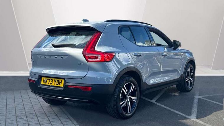 12.3" Progressive Driver Display, 360 degree surround view parking camera with side proximity sensors, 9" centre console portrait touch screen, Adjustable steering wheel force, Bluetooth hands free telephone kit, Cruise control, E-call, Front park assist, Google automatic services - Nav with google maps, apple carplay/android auto, voice recognition with google assistant, Hands free power tailgate, Intelligent speed assistance, Lane keep assist with driver alert control, Oncoming Lane Mitigation, Rear park assist, Speed sensitive steering, Wireless/Inductive Mobile Phone Charging, Dynamic chassis, DAB Digital radio, High performance sound, 8 speakers/250W, front USB and 2 rear type C USB, Steering wheel mounted remote controls, Adaptive brake lights with high level LED brake lights, Auto dimming feature for exterior door mirrors, Auto dimming interior mirror, Automatic headlamp levelling, Automatic LED Headlights + Active high beam incorporating daytime running lights, Front aluminium tread plates, Front and rear electric windows, High gloss black front and rear skid plate, High gloss black mesh front grille with high gloss black surround, High gloss black window trim, Home safe and approach lighting, Integrated roof rails in high gloss black, LED front fog lights, Puddle lights, Rain sensor with automatic windscreen wiper activation, Rear side wing doors, Rear wiper, Roof antenna, Roof spoiler, Visible VIN plate, 12V socket in front tunnel console and luggage compartment, 2-Zone electronic climate control with CleanZone air quality system and pollen filter, 3 seat bench in 2nd row, 3 Spoke tailored steering wheel with chrome trim, 60/40 versatile split folding rear seat, A-pillar parking ticket holder, Centre console cupholders and storage, Flexible load floor and grocery bag holder, Floor mats, Front door pocket, front cupholder, ambient front door, rear reading, rear courtesy, instrument panel and tailgate lighting, Front footwell illumination, Front headrests, Front reading light and theatre lighting, Front seat cushion extensions, Front tunnel pocket, Glovebox bag hook, Heated front seats, Height adjustable passenger seat, Height/reach adjustable steering column, High gloss centre tunnel deco, Illuminated glovebox, Illuminated luggage compartment, Illuminated vanity mirrors, Integrated waste bin, Isofix attachments on outer rear seats, Load protection net, Multi directional lumbar support, Power driver seat with memory + exterior mirrors memory, Rear armrest / integral cup holders / storage tray, Rear headrests, Single front passenger seat, Underfloor cargo storage, Climate pack without heated front seats - XC40, 3x3 point rear seatbelts, City safety with steering support with Pedestrian + cyclist + front collision warning with full auto brake and rear auto brake, Drivers knee airbag, Dual stage driver/passenger airbags, Electronic parking brake with auto hold, First aid kit, Front and outer rear seatbelt reminder and pretensioners, Front seats SIPS airbags, Hill descent control, Hill start assist, Inflatable curtain, Passenger airbag cut-off device, Power child locks on rear doors, Road sign information display, Run off Road Mitigation, Run off Road Protection, SIPS (Side Impact Protection System), Slippery road and hazard light alert, Stability and Traction Control with Spin control, Engine Drag Control and Corner Traction Control, Tyre pressure monitoring system, Vehicle deceleration control with Anti-lock Brake System, Electronic Brake Distribution and Emergency Brake Assist, Warning triangle, WHIPS whiplash protection system - front, Anti-theft alarm including immobiliser/volume sensor + level sensor, Key integrated remote control central locking + fuel flap with deadlocking system and auto open/close power windows, Keyless drive includes keyless entry and keyless start, Locking wheel nuts,