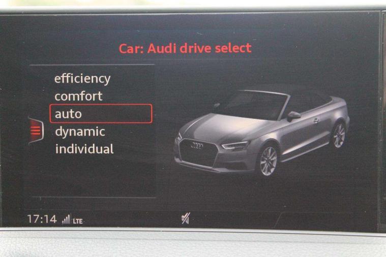 Audi drive select, Audi smartphone interface, Automatic start/stop system, Bluetooth interface, Colour driver's information system display, Electro-mechanical PAS, SD card based MMI navigation, Service interval indicator, Diesel particulate filter, 2 USB ports, Audi music interface, CD player, DAB Digital radio, MMI radio plus with 7" colour MMI screen and MMI controller, Aluminium side window trim, Auto dimming rear view mirror with light and rain sensors, Automatic lights and wipers, Body colour bumpers, Body colour door mirrors with integral indicators, Chrome exhaust tailpipes, Dark chrome grille, Electric operated/heated door mirrors, Front and rear electric windows, Fully automatic acoustic hood, Heated front windscreen, Heated rear window, Heated windscreen washer jets, LED daytime running lights, Roof spoiler, S Line body styling, 2 height adjustable rear headrests, 3 spoke flat bottom multi-function leather steering wheel including paddle shift, 4 lashing points to secure luggage, 50/50 split folding rear seat, Adjustable front armrest, Driver/passenger sunvisors, Dual zone electronic climate control, Front/rear floor mats, Height adjustable front seats, Height/reach adjustable steering column, Illuminated glovebox, ISOFIX child seat preparation+airbag deactivation, Jack and tool kit, Perforated leather gearknob, Stainless steel pedals, Storage compartment in centre console, Storage compartments in doors, LED interior light pack - A3/RS3, Light and rain sensor pack - A3 Cabriolet, Non smoking pack - A3, Storage pack - A3 Cabriolet/Saloon, 3 point seatbelts on all seats, ABS/EBD, Active bonnet, Active front headrests, ASR, Automatic roll over protection, Driver and passenger side airbags, Driver/Front Passenger airbags, Drivers knee airbag, EDL, Electromechanical parking brake, ESC - Electronic Stability Control + traction control, Front passenger airbag deactivation, Seatbelt warning, Tyre pressure monitor, Warning triangle and first aid kit, Anti theft alarm, Anti-theft wheel bolts, Immobiliser, Remote control central locking, Aluminium air vent surrounds, Aluminium trim elements, Matt brushed aluminium inlays, Space saver spare wheel,