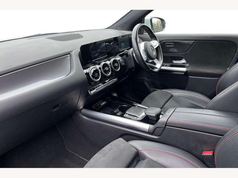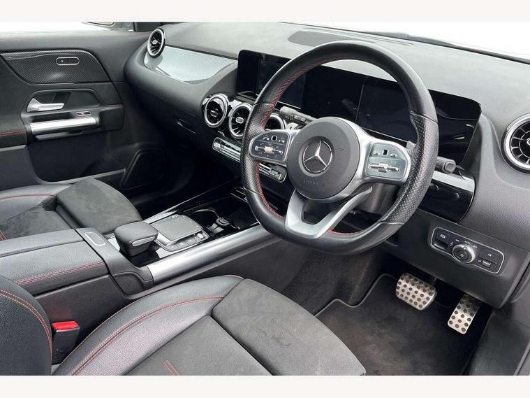 180 degree reversing camera with parking guidelines, 7 inch digital instrument cluster display, 7" touchscreen media display, Active lane keeping assist, Attention assist, Cruise control + speed limiter, Direct steering, DYNAMIC SELECT with a choice of driving modes (ECO, Comfort, Sport and Individual), ECO start/stop function, Fluid level warning indicator for fuel, oil, coolant and washer fluid, Hard-disk navigation, Hey Mercedes Voice activation, Lamp failure indicator, Mercedes me connect including emergency call system, accident recovery, breakdown and maintenance management, Mercedes me remote services, Multi function trip computer, Outside temperature gauge, Owners manual and service booklet in English, Pre-installation of private car share, Radio aerial integrated into front and rear windshields, Service indicator (ASSYST), Speed limit assist, Status display for rear seat belts in instrument cluster, Lowered comfort suspension, Rear axle multi-link, 2 USB ports (type C) in rear stowage compartment and one in front of center console, Bluetooth connectivity including audio streaming, DAB Digital radio, MBUX multimedia system, Media interface, Mercedes-Benz sound system - 100W, Adaptive brake lights, Aerial for GPS, Aluminium roof rails, AMG front and rear apron, AMG specific/dual flow exhaust pipes in chrome (non-functional), Automatic headlamp activation, Beltline strips and weather strip in chrome, Black grained claddings with chrome parts, Body colour bumpers, Body colour door handles, Body colour door mirrors, Car wash function, Dark privacy glass from B-pillar backwards, Electric front windows, Electric rear windows, Electrically adjustable and heated door mirrors with integrated LED indicators, Front door sills with Mercedes-Benz lettering, Heated glass rear windscreen + timer control, Heated windscreen wash system, Interior mirror with black reading lamps and frameless, LED high performance headlamps with integrated LED daytime running lights, LED tail lights in two piece design, LED third brake light, Matt titanium grey front and rear apron trim, Rain sensor windscreen wipers, Rear fog lights, Roof spoiler, Single lamella raditor grille with chrome dotted diamond grille and inlay, 12V power socket in centre console, 3 spoke multifunction sports steering wheel in nappa leather with flattened bottom and perforated grip area, 40:20:40 split folding rear seat backrests, Adjustable head restraints, Air conditioning - Two zone thermotronic luxury automatic climate control with display, Ambient lighting in front headrests, AMG floor mats with AMG lettering and stiched edging, Artico man-made leather/Microfibre Dinamica upholstery with red contrast stitching, Auto Mercedes-Benz child seat recognition sensor, Black roof lining, Brushed door pulls in silver chrome, Courtesy light in boot, Front centre armrest with stowage, Galvanished gear shift paddles on steering wheel, Heated front seats, Illuminated glovebox, Leather trimmed gearknob, Luggage net on driver/front passenger seat backrest, Manually height and reach adjustable steering column, Multi-gesture touchpad control on center console, Sports pedals in brushed stainless steel with black rubber studs, Sports seats, Stowage compartment in centre console, Stowage compartment with retractable cover, Sunvisors with illuminated vanity mirrors, Twin front cup holders, Two outer rear seat isofix and top tether child seat fixing points, AMG body styling pack - GLA, Comfort seat pack - GLA Class, Interior lighting with light and sight pack - GLA, Load compartment pack - GLA, 3 rear 3 point seatbelts, ABS with Brake Assist, Active bonnet pedestrain safety measure which detects an impact and raises bonnet by 65mm, Active brake assist includes forward collision warning system with autonomous braking, Adaptive brake assist with hold function and hill start assist, Bonnet with power domes, Brake pad wear warning indicator, Childproof locks manually operated for rear doors and electrically operated for rear power windows, Crash responsive emergency lighting, Driver and passenger head and side airbags, Drivers knee airbag, Dual stage driver/passenger airbags, Electronic parking brake, ESP curve dynamic assist, ESP with ASR, Front and rear seatbelt reminder, Front brake callipers with Mercedes Benz logo lettering on front, Front brake discs internally ventilated and perforated, Front passenger seat occupancy sensor, Tyre pressure monitoring system, Warning triangle and first aid kit, Window airbags, Alarm system with immobiliser and interior protection -Thatcham category 1, Keyless Go starting function, Remote central locking and crash sensor with emergency opening function, Urban guard vehicle protection, Vehicle key with decorative surround in chrome, Carbon structure trim, Chrome air vent surrounds, 19" AMG 5 twin spoke light alloy wheels aerodynamically optimised painted in tantalite grey with a high sheen finish, Summer tyres, Tirefit tyre sealant kit,