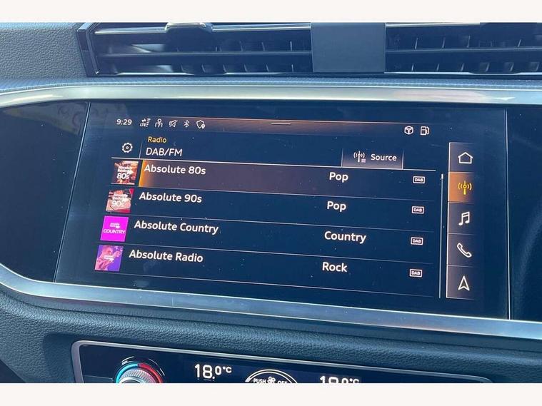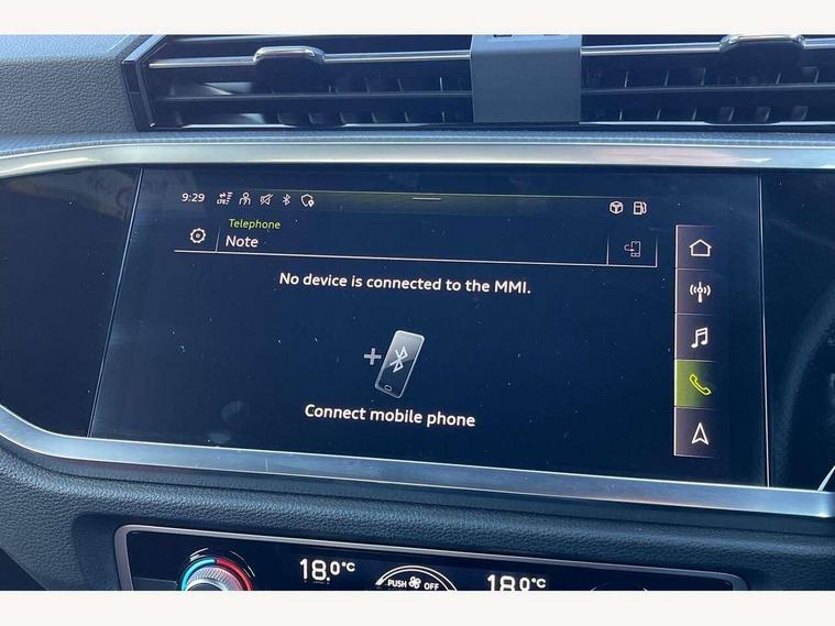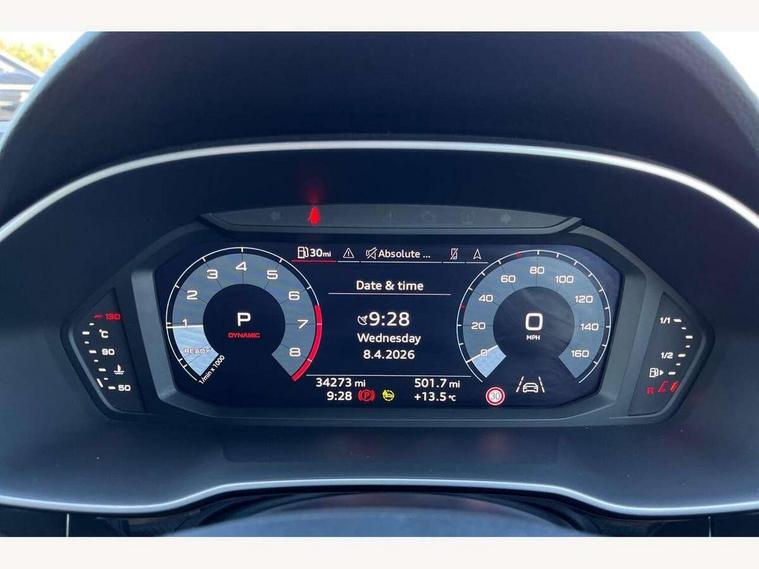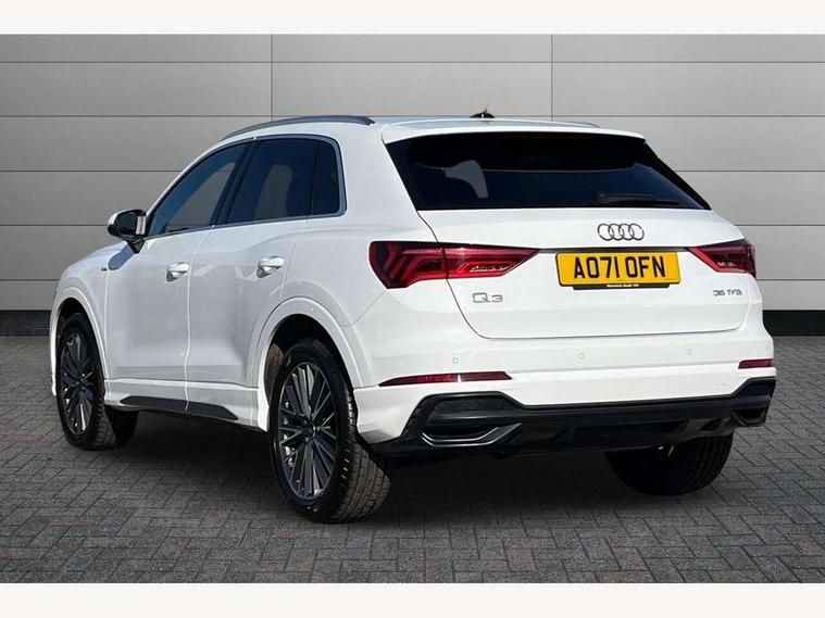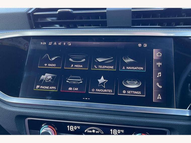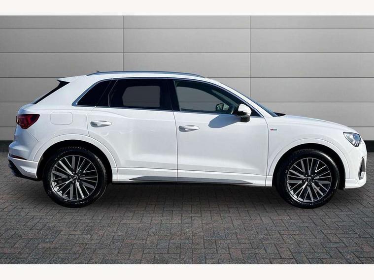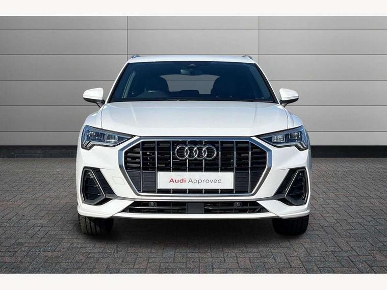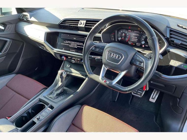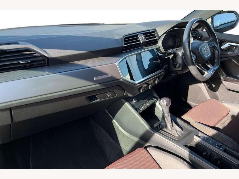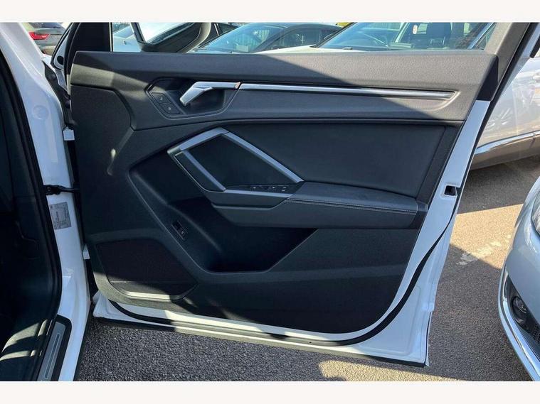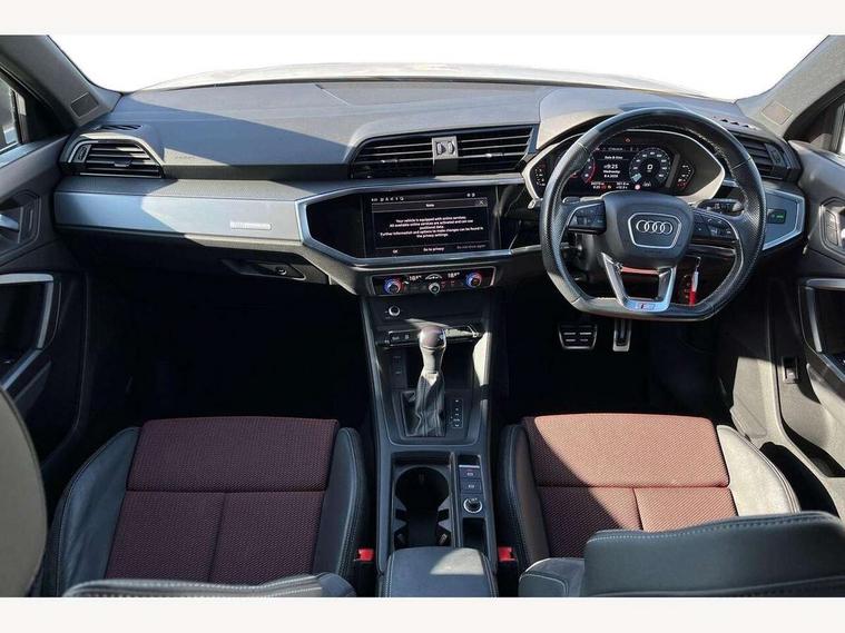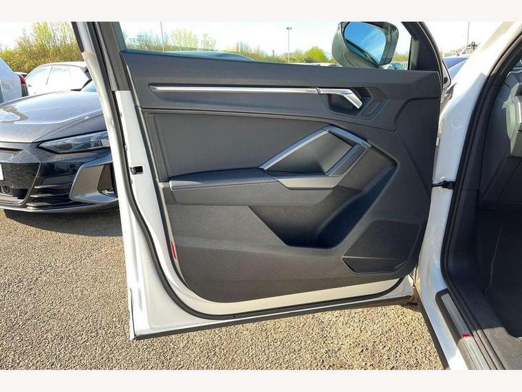 Amazon alexa Integration, Audi connect safety and service (e-call), Audi drive select, Audi lane departure warning, Audi smartphone interface includes wireless Apple carplay/Android Auto, Audi Virtual Cockpit - 10.25" display, Bluetooth interface, Camera based traffic sign recognition, Cruise control + speed limiter, MMI Navigation Plus with high resolution 10.1 inch touchscreen colour display, Power operated tailgate, Progressive steering, Rear parking sensors, Service interval indicator, Start stop system with recuperation, Voice control system with natural language interaction, 48V Mild hybrid technology, Sports suspension, 2 USB-C ports with charge and data functions, 6 passive loudspeakers, DAB digital radio module, Acoustic windscreen, Aluminium roof rails, Aluminium window trim, Auto dimming frameless rear view mirror, Body coloured bumpers, Electrically folding, adjustable and heated door mirrors with integrated LED side indicators and kerb view function for passenger side, Front and rear electric windows, Front fog lights, Front side air inlets in matt platinum grey, Front spoiler blade in matt platinum grey, Grille vertical bars in aluminium silver/Matt, High gloss black finish B and C pillars, LED headlights with LED daytime running lights and dynamic rear indicator, LED rear lights, Privacy glass dark tinted rear and rear-side windows (from B-pillar backwards), Rain and light sensors, Rear diffuser strip in matt titanium black, S line badges on front wings, S Line front and rear bumpers, Side skirt insert in matt Platinium grey, Silver chrome grille surround, Titanium black radiator grille, 12V socket in rear centre console, 40:20:40 folding with manual adjustment for 60:40 forwards/backwards position and backrest angle, Adjustable rear seat bench/backrest with centre armrest and cupholder, Black cloth headlining, Dual zone electronic climate control, Front and rear black floor mats with contrast stitching in rock grey, Front and rear headrests, Front and rear roof module including reading lights, Front centre armrest, Glove compartment lighting, Height and reach adjustable steering wheel, Illuminated door sill trims with S logo, ISOFIX child seat mounting for front passenger with airbag deactivation and outer rear seat including top tether attachment point for outer rear seats, Luggage compartment light, Manual front seats with height adjustment, Perforated leather gearknob, Stainless steel luggage compartment sill finisher, Stainless steel pedals, Tool kit, Non smoking pack - Q3, 3x3 point rear seatbelts, 6 airbags - Driver, front passenger, curtain and side windows, Electrically operated child locks on rear doors, Electromechanical parking brake, Electronic stabilisation control including ABS, ASR and EDL, Hill descent control, Hill hold assist, Pre sense basic, Seatbelt monitoring, Tyre pressure warning, Warning triangle and first aid kit, Anti theft alarm, Anti theft wheel bolts, Audi pre-sense front with pedestrain and cyclist recognition, Remote central locking, Dark matt brushed aluminium inlay, Detail dashboard around MMI touch colour display in glass look, black with surround in aluminium look, Leatherette door armrest, Tyre repair kit,
