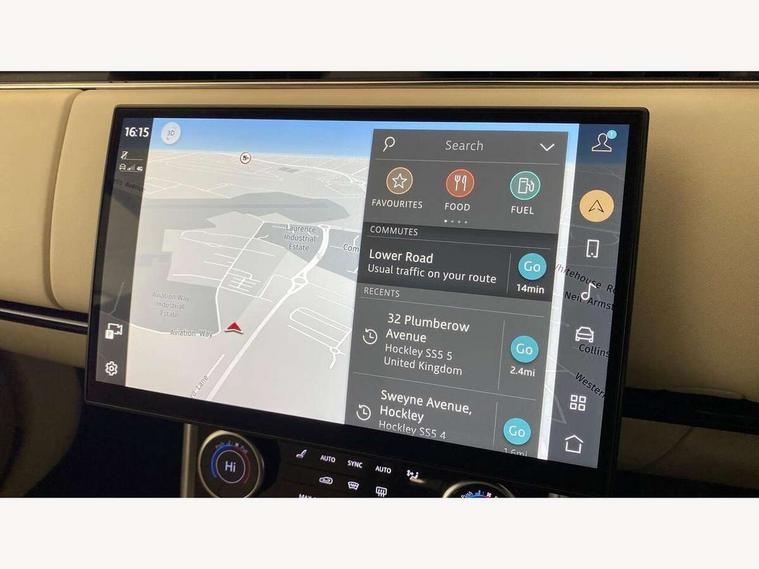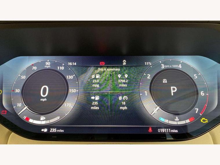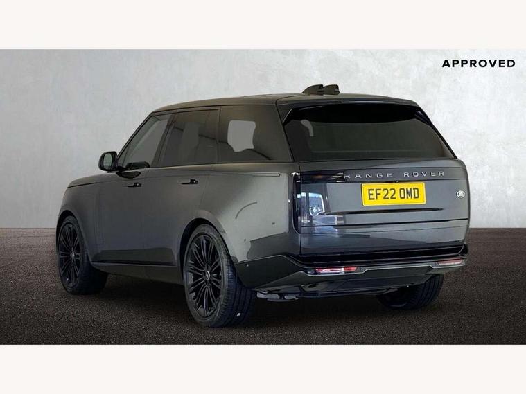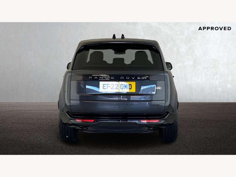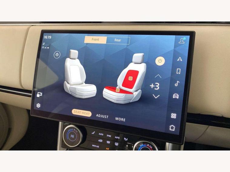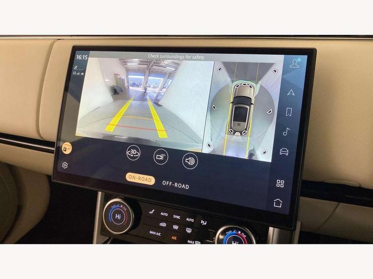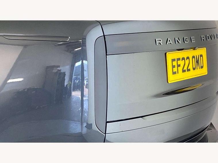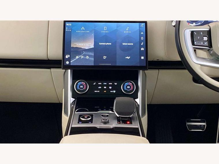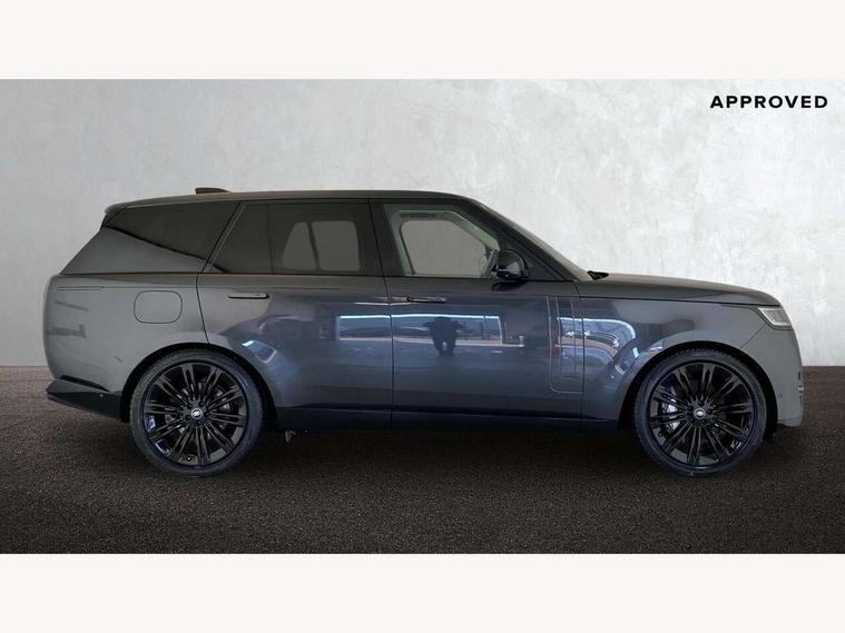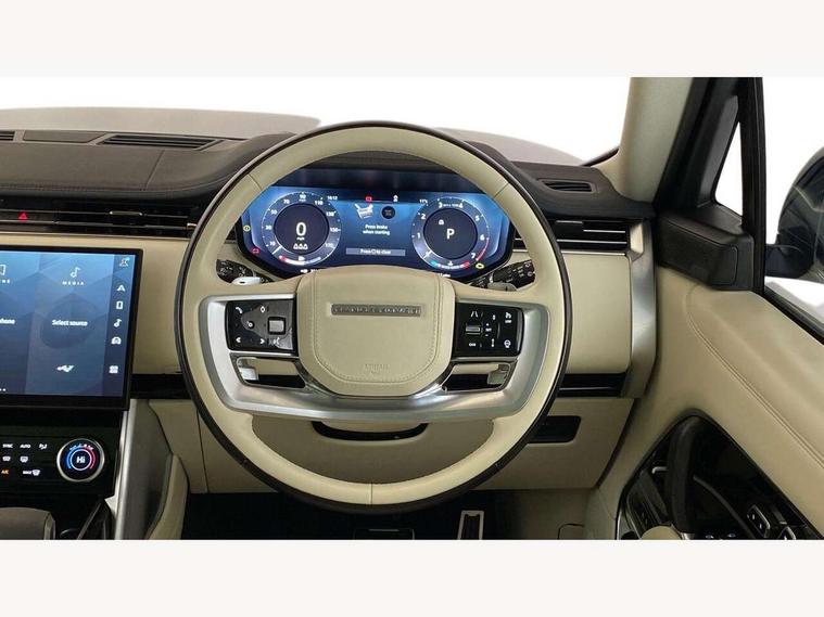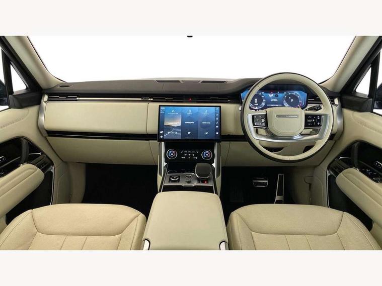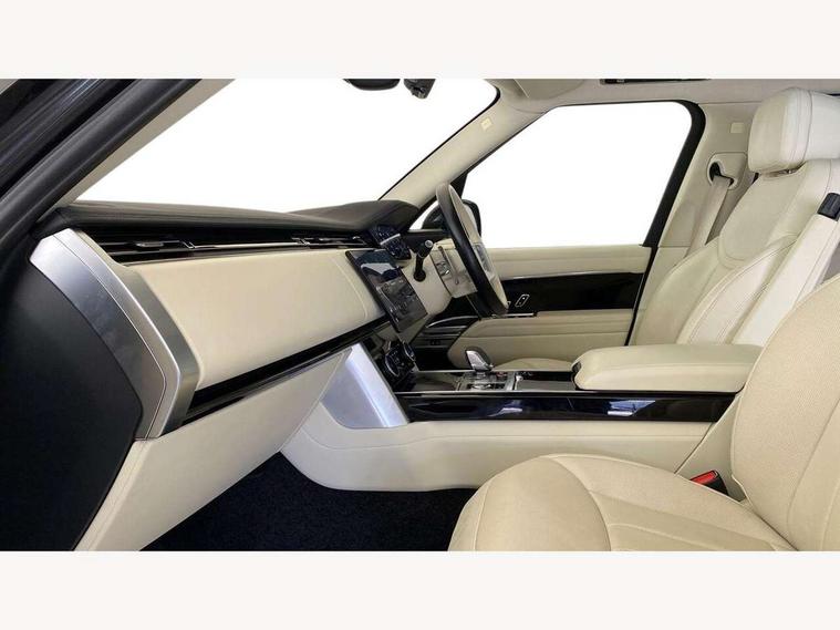 13.1" Touchscreen, 3D surround camera inc frwd traffic detection, vehicle clearance guidance, 3D view, clearsight ground view, manoevure light, 360 parking aid, wade sensing, Adaptive cruise control with steering assist, All Terrain Info Centre, All wheel steering, Android Auto, Apple car play, Blind spot assist, Bluetooth connectivity streaming, Driver condition response, Eco mode, Electric power assisted steering (EPAS), Emergency call service, Front and rear parking aid, Head up Display, Interactive driver display, Lane keep assist, Powered gesture tailgate/boot lid, Rear collision monitor, Rear traffic monitor, Remote, Traffic sign recognition with adaptive speed limiter, Wi-Fi Enabled with data plan, Wireless device charging with phone signal booster, 8 speed automatic transmission, Active damper technology system, Adaptive dynamics, All terrain progress control, All Wheel Drive (AWD), Automatic access height, Terrain Response 2 Auto, Twin speed transfer box, Digital Audio Broadcast radio-DAB, Pivi pro including smart settings, Connected navigation pro, nuance speech, USB socket, Acoustic laminated windscreen, Animated directional indicators, Automatic headlights, Automatic levelling headlights, Centre high mounted stop light, ClearSight interior rear view mirror, Electric windows with one touch open/close and anti trap, Flush deployable exterior door handles, Front and rear recovery eyes, Front fog lights, Headlamp power wash, Heated rear window, Heated washer jets, LED tail lights, Power fold, auto-dimming, heated door mirrors with approach lights, Rain sensing windscreen wipers, Range rover badge, Rear boot, Rear fog lights, Rear side wing doors, Rear wash/wipe, Side repeater indicators in mirror, Trailer stability assist, Winter wiper park position, 12V power sockets, 3 seat bench in 2nd row, Air quality sensor, Bright metal pedals, Cabin air purification pro, Cabin lighting, Customer configurable single point entry, Driver and passenger front seat armrests, Easy boot loading, Ebony Carpet, Front and rear cupholders, Front and rear grab handles, Front head restraints, Gearshift paddles, Heated steering wheel, Hook in load space, Loadspace light, Luggage tie down in loadspace, Multifunction steering wheel, Rear centre armrest, Rear head restraints, Rear ISOFIX, Single front passenger seat, Twin blade sunvisors with Illuminated vanity mirrors, Upper and lower glovebox, Online pack with data plan - Range Rover, 3x3 point rear seat belts, Anti-lock braking system (ABS), Brake hold function, Cornering brake control (CBC), Customer configurable autolock, DSC - Dynamic Stability Control, Electronic brake force distribution, Electronic parking brake, Electronic traction control, Emergency brake assist, Emergency braking, Front airbags with passenger seat occupant detector, Front side airbags, Hill descent control, Hill launch assist, Illuminated seat belt buckles, Low traction launch, Occupant protection assist, Power operated child locks, Roll stability control, Tyre pressure monitoring system (TPMS), Immobiliser, Intrusion sensor and alarm, Keyless entry, Locking wheel nuts, Remote central locking, Noble chrome controls,