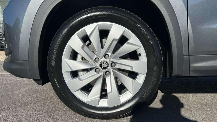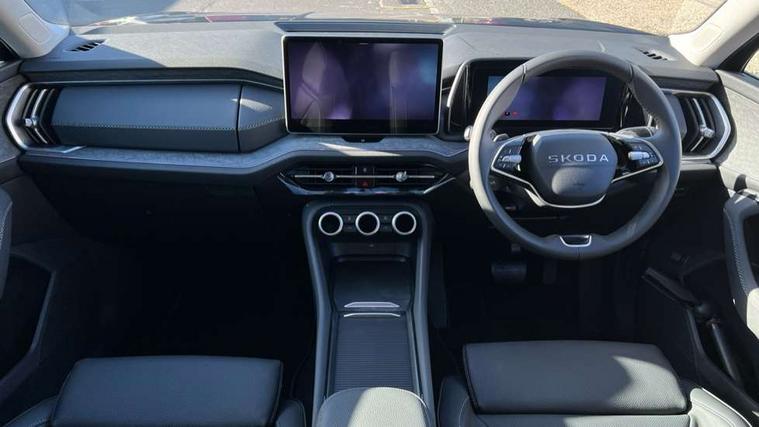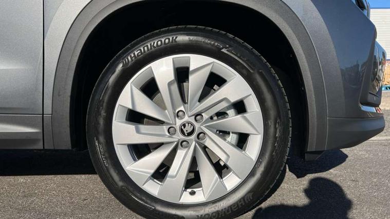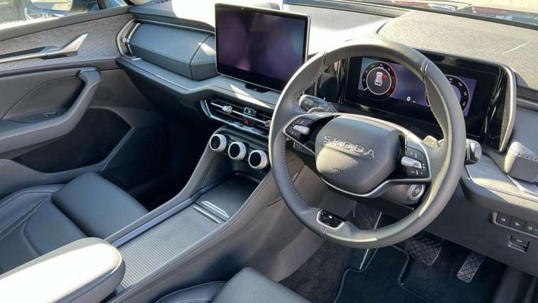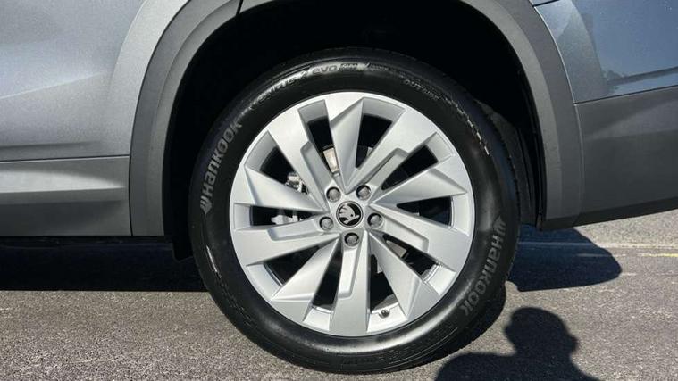13" satellite navigation touchscreen display, Blind spot detection with door exit warning, Bluetooth system, ChatGPT functionality, Driver alert - Fatigue and drowsiness monitor, Dry display cleaner, Emergency call, Front and rear parking sensors, Front cross traffic assist, Lane assist, PAS, Rear traffic assist, Tailgate unlocking from outside, Traffic sign recognition, USB C Port x 2 in front centre console, Virtual Cockpit - 10.25" digital display, Voice control system, Wireless charging for two smartphones (15W) with cooling function, Wireless SmartLink for Apple CarPlay and Android Auto, Stop/start function, 2x USB-C in the rear, DAB Digital radio, Aero front windscreen wipers with intermittent function, Auto dimming rear view mirror, AWL (all weather lighting) and all weather light with cornering function, Black wheel arch surrounds, Body colour bumpers, Body colour door mirrors and handles, Cornering light and poor weather light, Electric folding /adjustable/separted heated/folding door mirrors, auto dimming with boarding sports and memory function, Electric front and rear windows, Exterior black decorative trims, Heat insulating glass in windshield, Heated rear window, Ice scraper in fuel tank cap, Invisible tailpipe, LED daytime running lights, LED third brake light in rear spoiler, Light assistant with automatic headlight control and coming home feature, Logo projection in door mirrors, Privacy glass, Rear roof spoiler, Rear side wing doors, Rear window wiper, Red decorative strip between rear LED lights, Safety reflectors on front and rear doors, Unique dark chrome design logo on alloy wheels, Window control switches with black trim, Windscreen wipers with rain sensor, Without engine designation, 1.5l bottle holder points in all door, 1x centre rear reading light, 2 seat bench in 3rd row, 3 configurable smart dials with 32mm coloured display, 3 seat bench in 2nd row, 4 foldable roof handles with rear coat hooks, Ambient interior lighting - Dashboard, front-door stowage compartments, front and rear door panels and footwell lighting, Automatic gear selector on steering column, Chrome interior door handles, Driver/front passenger reading lights, Fabric headlining, Fixed bench 40:60:40 split folding backrests, Front and rear floor mats, Front centre armrest with jumbo box storage compartment, cup holder and 12V socket, Height adjustable front headrests, Isofix child seat fittings in outer middle row rear seats and front passenger with top tether, Manually adjustable steering column, Pollen filter, Rear centre armrest with cupholders, Rear seat boot backrest release, Single front passenger seat, Skoda lettering on steering wheel, Storage pocket including mobile phone pockets on the backs of the front seats, Sunvisors with illuminated vanity mirrors, Three rear height adjustable headrests, Ticket holder on A Pillar, Tri zone climate control, Umbrella in door panel x1 made from sustainable materials, Upper and lower glovebox with card holder and coin compartment, USB C port by rear view mirror for charging only (15W), Exterior styling pack - Kodiaq, Auto door release and activation of warning lights in the event of an accident, Driver and front passenger airbag with knee airbag and front passenger airbag deactivation, Electric child locks, Electronic parking brake, ESC (incl. ABS+EMD+MSR+ASR+EDL+HBA+DSR+RBS+ESBS+MCB+TSA+XDS), Front assist with braking reaction to vehicles, pedestrians and cyclists, Front disc brakes, Fuel cut off safety device, Height adjustable front 3 point seatbelts + pretensioners, Hill hold assist, Junction assist with automatic emergency braking, Rear disc brakes, Safety vest holder in door, Seat belt reminder for all seats, Three point rear seat belts, Two tone horn, Tyre pressure monitor, Anti-theft wheel bolts, Immobiliser, Remote central locking with 2 keys,