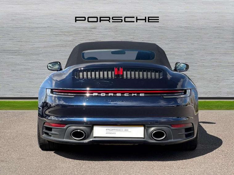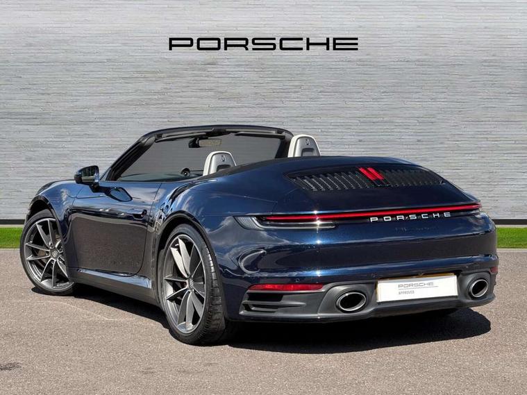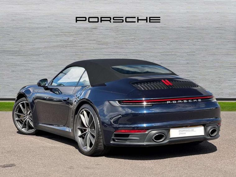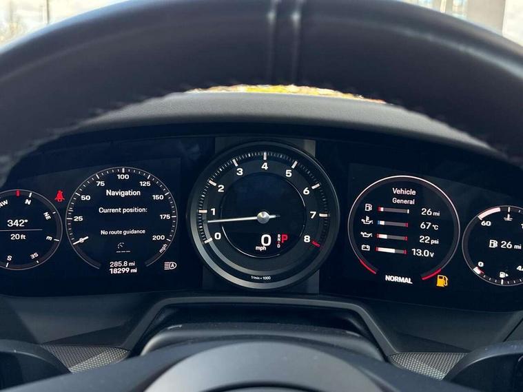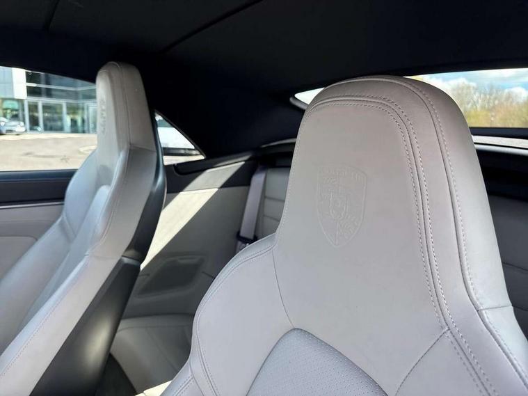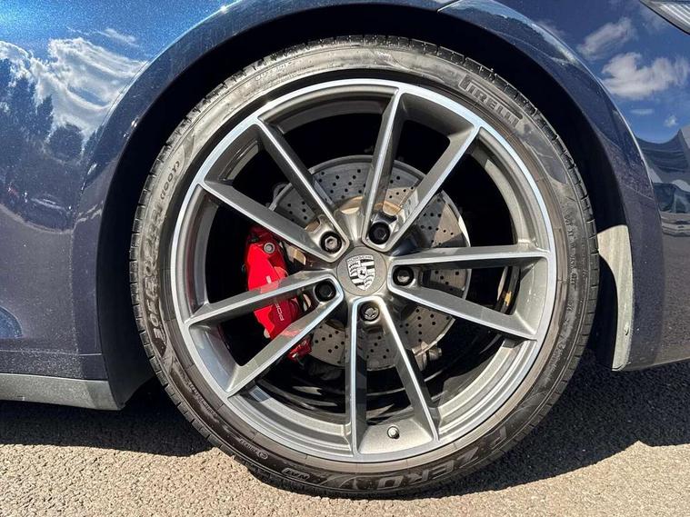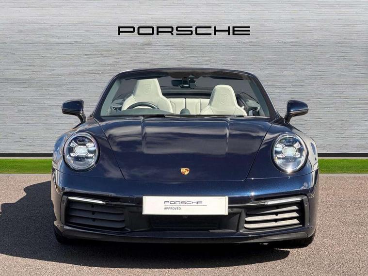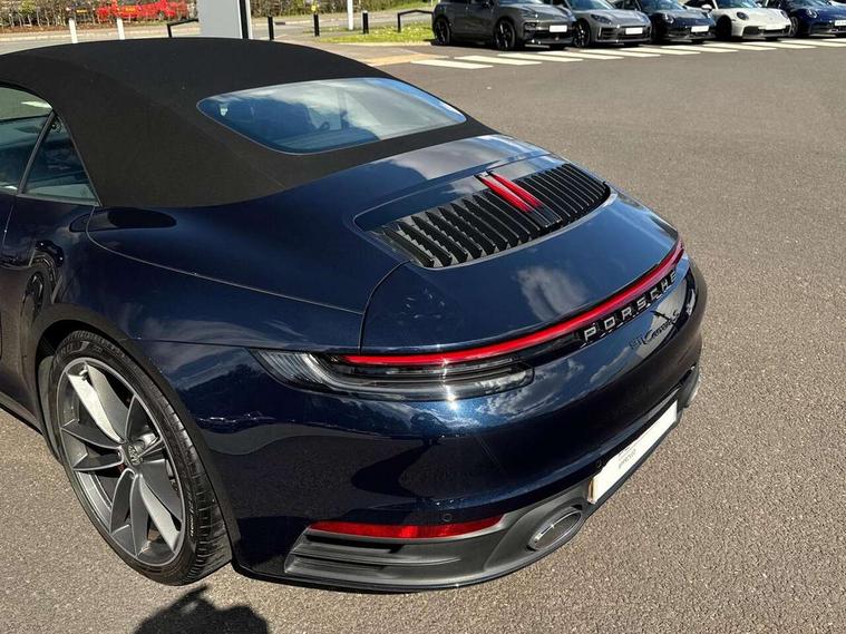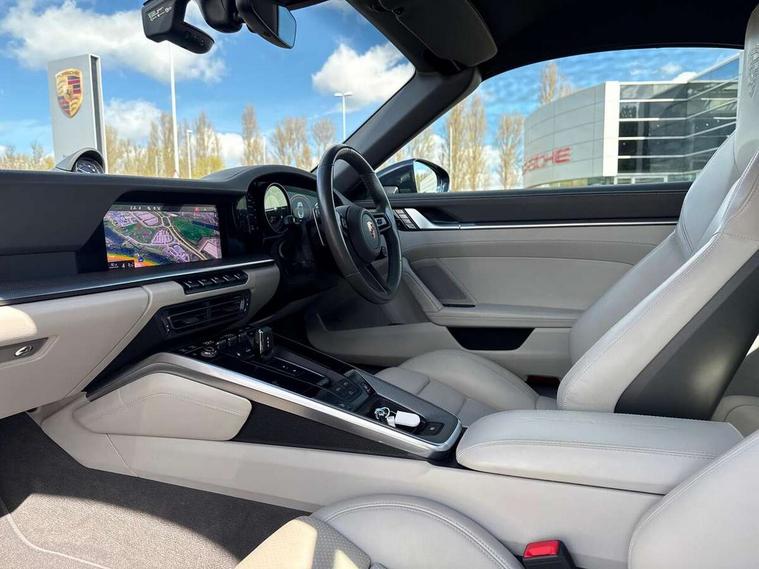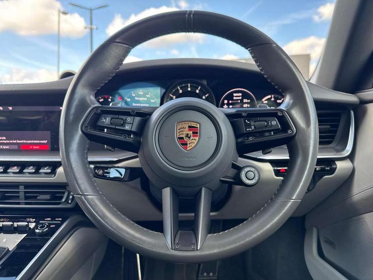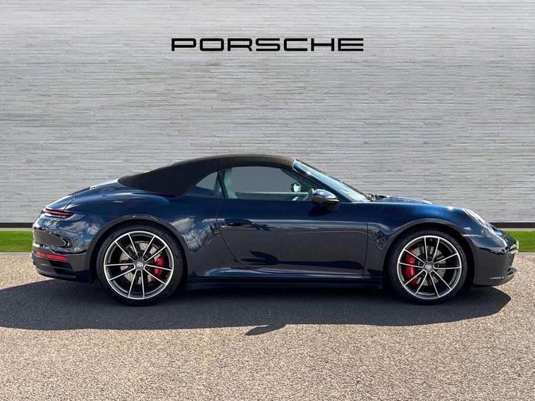 10.9 inch centre display, Automatic start/stop system, Digital display for selected gear in rev counter, eCall emergency system, Instrument cluster with central analogue rev counter and two 7-inch TFT displays, Porsche Communication Management (PCM) including online navigation module, mobile phone preparation, audio interfaces and voice control system, Porsche connect plus, Apple carplay, LTE telephone module with Sim card reader, wireless internet access and other Porsche connect services, Porsche WET Mode, Service indicator, Stationary management with HOLD function, Trip computer, Warn and Brake Assist with intergrated front cameras, 8 Speed Porsche Doppelkupplung (PDK), Aluminium block and cylinder heads, Direct fuel injection (DFI), Expansion intake manifold, Four valve per cylinder, Integrated dry-sump lubrication with an on-demand oil pump, McPherson-strut suspension with anti-roll bar at front, Multi-link suspension with anti-roll bar at rear, Porsche Stability Management (PSM), ABS with extended brake functions, Porsche Torque Vectoring Plus (PTV Plus) inc electronically regulated rear differential lock and fully variable torque distribution, Rear wheel drive, Twin turbocharger intercooled, Two gasoline particulate filter, Two three-way catalytic converters and on-board diagnostics for monitoring emission control system, VarioCam Plus variable valve timing and switchable valve lift, Water cooled with thermal management, DAB Digital radio, Two USB charging and connectivity ports in the front centre console storage compartment, "PORSCHE" lettering integrated in taillight strip, Auto deploying rear spoiler, Automatic headlight activation including welcome home lighting, Body coloured bumpers, Electrically adjustable heated exterior mirrors on door waist rails, aspherical on driver's side, Engine compartment cover grille with vertical slats in black (high-gloss), Fully automatic fabric roof, electrically operated rigid glass rear screen, operable approx 30 mph and convenient operation by key remote, Green tinted heat insulating glass, Heated rear windscreen, Integral electrically powered wind deflector, Intelligent lightweight body in Aluminium/Steel composite construction, LED auxiliary light units in the front end with position lights, direction indicators and side indicators, Power windows with one touch operation and door seal protection, Retractable door handles, Side air intakes at front with active cooling flaps and air blades, Taillight strip including integral parking lights and rear driving lights, Three dimensional LED taillights and integral third brake light, Trims on sideskirts in black, Windscreen washer system with aero wiper blades and washer jets, 12V socket in front passenger footwell, 2+2 seater with rear engine, Clothes hooks on seat backrests, Front and rear head restraints, Heated front seats, Hood lining in black fabric, ISOFIX child seat mounting points on front passenger seat, Luggage compartment at front, One individual cupholder (passenger side) and one individual cupholder in centre console, Particle/pollen filter with active carbon filter, PDK gear selector with automatic mode, manual gear selection via shift paddles on the steering wheel, Split folding rear seats, SPORT button to activate dynamic driving settings for engine and transmission, Storage compartments in each doors, Two zone auto climate control with separate temperature settings for driver/front passenger, automatic air recirculation mode incl air quality sensor, Auto deploying roll over protection system, Brake discs with 350mm diameter at front and 350mm at rear, internally vented and cross-drilled, Electric parking brake, Electromechanical power brake, ESP, Full size two stage airbags for driver and front passenger, Porsche side impact protection system includes side impact protection in doors, curtain, head/thorax airbags for driver/front passenger in each door, Six piston front and four piston rear in closed type aluminium monobloc, Tyre pressure monitoring system, Engine immobiliser with remote central locking and alarm system with radar based interior surveillance, Porsche vehicle tracking system (PVTS Plus),