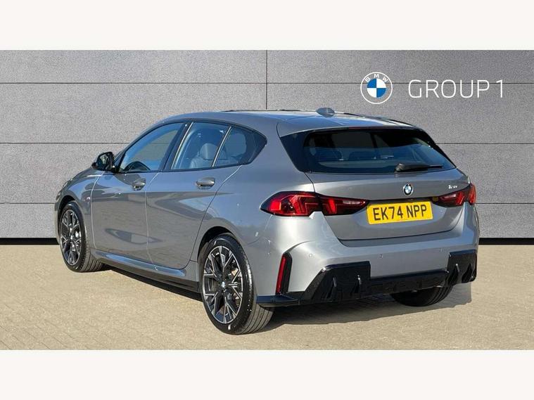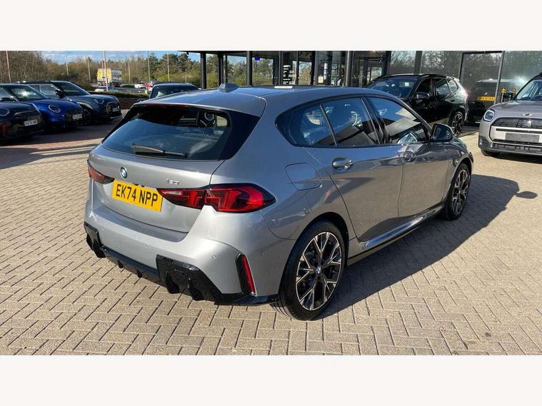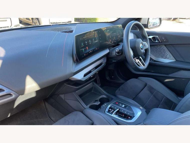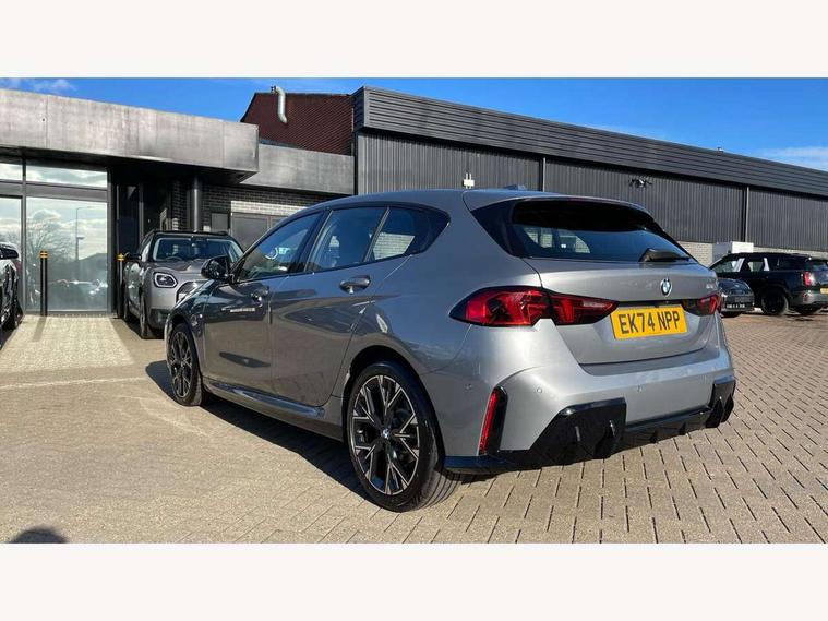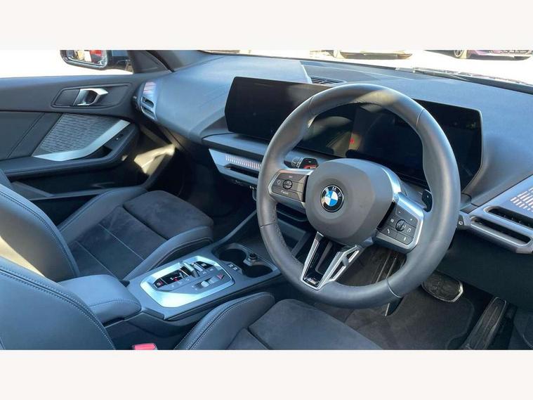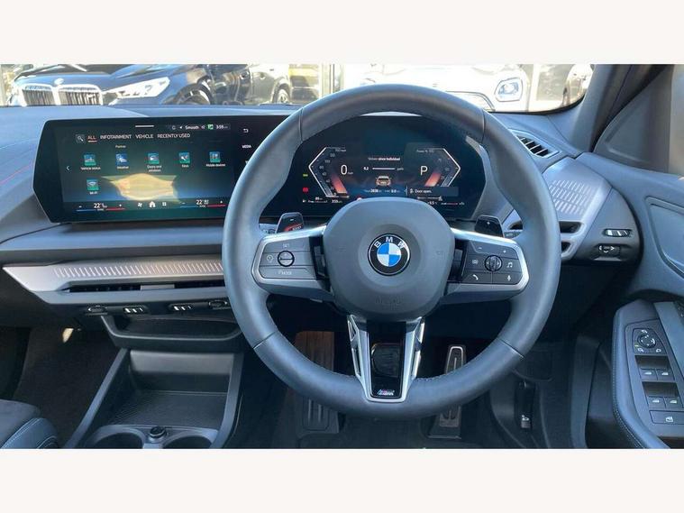 Active guard plus, Attentiveness assist, Bluetooth / WiFi interface for wireless connection of mobile terminal devices and audio streaming, BMW ConnectedDrive online services, BMW Live cockpit plus, BMW Teleservices, Check Control warning system for monitoring of lights and door/luggage compartment open warning, Cruise control with speed limiter, Eco pro mode, Electric power steering with Servotronic steering optimised at all speed ranges, Front and rear parking sensors, Front axle single joint with specific axle kinematics to minimise drive influences on steering + provide increased rigidity agile driving behaviour, Integrated owners handbook, Lane departure warning system, Oil sensor for level and grade, On board computer, Optimum shift indicator, Park assist including reversing assistant, lateral parking aid and reversing assist camera, Personal Profile, Pull away assistant, Rigidly mounted rear subframe - Multi link construction with separate spring / damper configuration and excellent driving characteristics, Speed limit Info including no-overtaking indicator, Speedometer, 49 litre fuel tank, Aluminium lightweight construction, Anti roll bar front and rear, Balancer shaft, Double VANOS twin scroll turbocharging system, Drive Performance Control, Electronic differential lock, High precision injection, M Adaptive suspension, Petrol Particulate Filter, Twin tube gas filled shock absorbers with degressive characteristic curve, VALVETRONIC engine management, DAB Digital radio, Auto dimming rear view mirror, Automatic headlight beam throw control, Automatic windscreen wipers and automatic headlight, Body colour door handles, Body colour mirror caps, Body colour roof trims, Chrome 'M' logo side designation, Chrome exhaust twin tailpipes round 90mm in left, Chrome kidney grille frame with Satin Aluminium struts, Direction indicator side lights in exterior mirrors, Electrically adjustable exterior mirror with mirror adjustment switch on drivers armrest and aspheric on driver side, convex on passenger side, Fading support, Folding side mirrors with auto dimming/folding wing mirrors with auto dimming, Follow me home headlights, Front and rear bumper system with replaceable deformation elements, Front and rear electric windows with open and close fingertip control, anti trap facility and comfort closing, Front door sill finishers in black plastic with M designation in metallic look, Green tinted heat protection glazing, High gloss shadowline window frame, Recess cover mirror frames and B/C pillar embelisher trim, High level third brake light, Integrated front windscreen with washer jets, LED daytime running lights, LED eyebrow turn indicators, LED front fog lights, LED Headlights, Lightweight engineering, Matt black air guide grilles, Matt black wheel arch trim, Nearside reverse light in rear light cluster, Preparation for high beam assistant, Rear fog lights, Rear side wing doors, Rear window wiper, Shark fin antenna, Trailer stabilisation logic, Visible VIN plate, Welcome lighting, 12V power socket in front centre console with blanking plug, 3 rear seat head restraints, 3 seat bench in 2nd row, 3 spoke sports leather steering wheel with black leather and stitching, pearl chrome decorative finish, specific M Badge, Anthracite headlining, Black boot net with lashing eyes, Cargo function on 2nd seat row, Child seat ISOFIX attachment for two outer rear seats and front passenger seat with anchorage points, Conditioned based service, Driver and front passenger backrest net on rear, Driver and front passenger seat heating, Driver side folding compartment in instrument panel, Folding rear clothes hook, Four grab handles integrated in roof lining, Front and rear door pockets with bottle holders, Front and rear side armrest integrated into door trim, Front armrest, Glove compartment, Height adjustable front head restraints, Luggage compartment for bag hooks on left and right, foldable luggage compartment liner and four lashing eyelets, Manual adjust steering wheel, Multi-function controls for steering wheel, Rear seat backrest with manual 60:40 split folding with 3 top tether clips integrated on rear of seat panels, Single front passenger seat, Storage compartment in centre console, Storage compartment in luggage compartment, Stowage of the parcel shelf in luggage compartment trim, Sun visors with vanity mirrors and insert tab, Two front centre console cupholders, Type C two USB ports in rear centre console, Velour floor mats, Connected pack professional - 1 Series, Interior lights pack - 1 Series, M Sport exterior styling aerodynamics pack - 1 Series, 2 tone horn, 3 point seatbelts on all seats, front pyrotechnic belt tensioners, stopper and belt force limiters, rear coded belt buckles, Airbags - Front driver/passenger, front and rear curtain head protection, front side, manual deactivation of front passenger airbag, Anti lock braking system (ABS) with brake assist, BMW emergency call, Brake drying, Braking readiness, Child proof locking system in rear door, Comfort modes, Cornering brake control, Crash sensor activating of airbags, Unlocking doors, hazard warning lights, interior light, safety battery terminal, Driver and front passenger seat belt security check, Dynamic stability control + (DSC+), Dynamic Traction Control - DTC, Electrically operated hand brake including automatic hold function, Front and rear disc brakes, Seatbelt warning, Side impact protection, Tyre pressure monitoring system, Warning triangle and first aid kit, Central locking switch for all doors, fuel filler cap and luggage compartment, Deadlocking function system to all doors, Drive away locking system on all doors and luggage compartment with de-activated in iDrive settings, Locking wheel bolts, Remote control with integrated key with High-gloss Black inlay and M designation and 1 button for open/ close lock, window, open luggage compartment, Start/stop button illuminated in centre console with keyless engine start and auto 