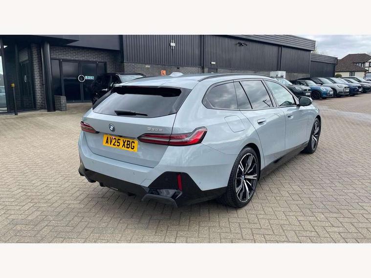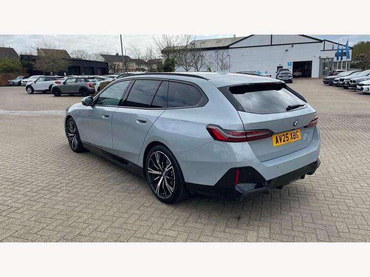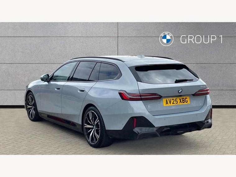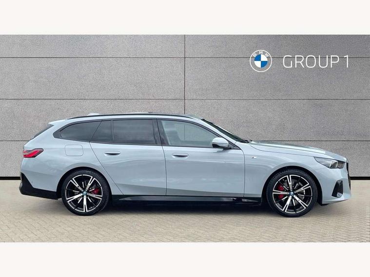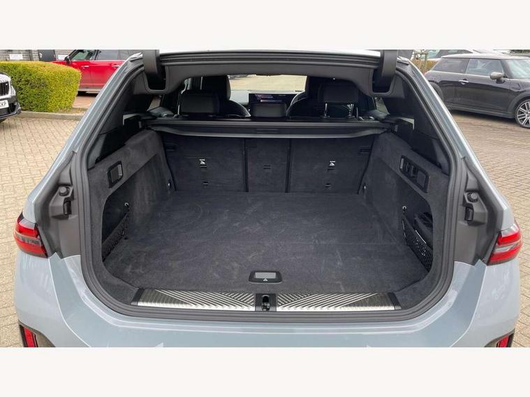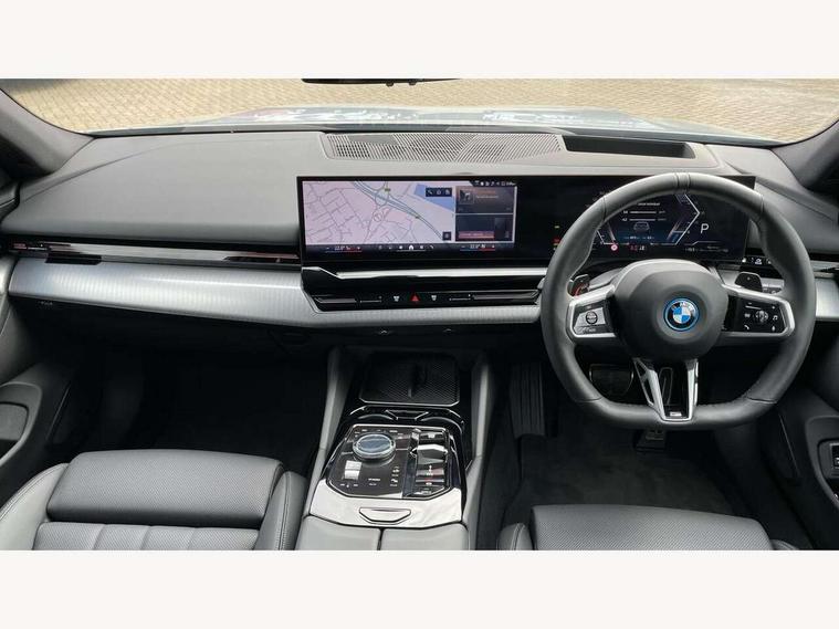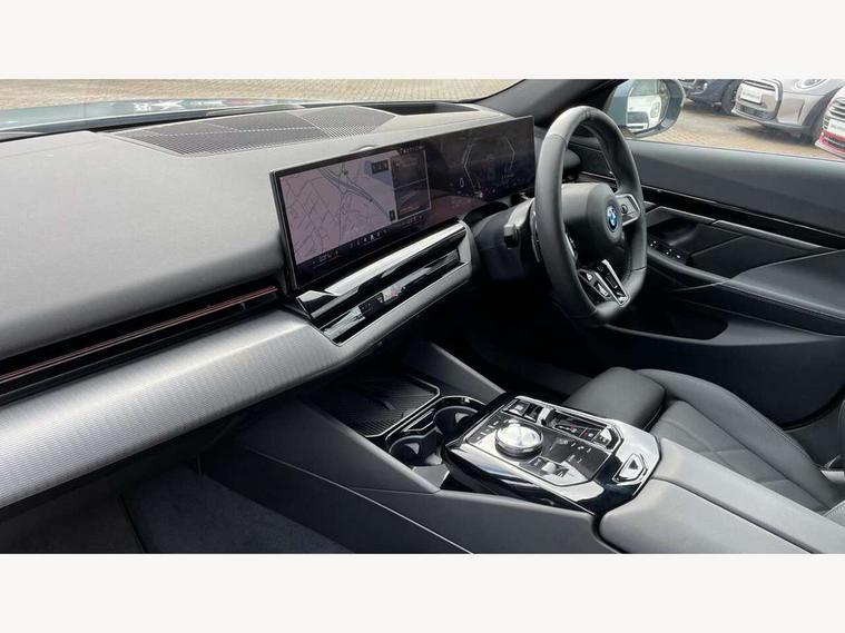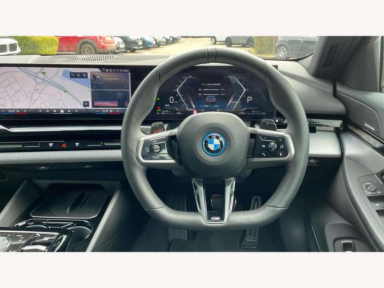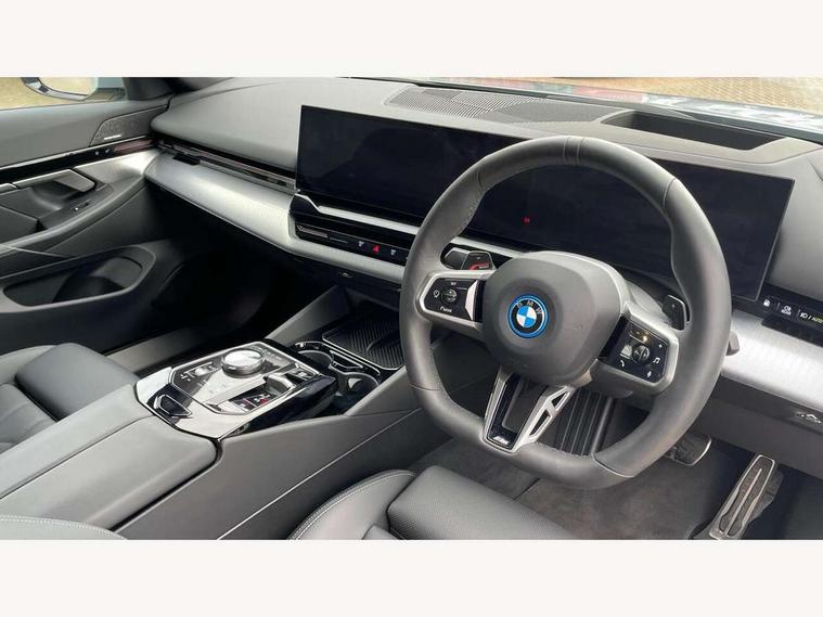 Automatic tailgate operation, BMW ConnectedDrive online services, BMW Iconic sounds electric, BMW legal emergency call, BMW Teleservices, Brake pad wear indicator, Cruise control with brake assist, Driving Assistant Plus Preparation, Front collision warning with brake intervention, Lane departure warning with active return, Left turn warning with brake function, Multifunctional instrument panel, Oil sensor for level and grade, On board computer inc. average speed, fuel consumption, liquid crystal Info display, journey computer, outside temperature display, personal profile, On-board diagnosis - OBD, PAS, Personal e-SIM, Powered by Operating System 7.0, Run flat indicator, Service interval indicator, Speed limit Info with manual speed limit assist, Stop/start button, 8 speed automatic steptronic transmission with gearshift paddles, AC charging cable professional (mode 3) for public charging, Expert mode, Launch control, DAB tuner, Acoustic glazing, Adaptive LED Headlights, Automatic cornering lights, Automatic windscreen wipers and automatic headlight, BMW selective beam, Body colour door handles, Body coloured bumpers, Dynamic brake lights with LED technology, Electric adjustable door mirrors, Electric front and rear windows with fingertip open/close + anti-trap facility and comfort closing function, Follow me home headlight function, Headlight elements in blue, Heated windscreen washer jets, LED daytime running lights, LED third brake light, Light colour close to that of ordinary daylight, M high gloss shadow line with extended contents - Radiator grille frame, struts and strip in rear light, M light shadowline - Dark design of selected elements of the headlight and rear lights, M rear spoiler, Optimum, homogeneous illumination of the road, Rear side wing doors, Rear wiper, 2 zone automatic air conditioning, 3 seat bench in 2nd row, 3 spoke leather M steering wheel in BMW M specific design with M badge, Armrest - front and rear integrated door trim, centre console includes storage compartment, rear centre includes 2 cupholders, Child seat ISOFIX attachment with rear outer seats includes top tether, Electric adjustable front sports seats, Electric adjustable steering column, Electrically adjustable lumbar support for driver and front passenger, Heated driver and front passenger seats, High-gloss black door switch cluster, power window switch and tailgate button on first and second row seat, M Anthracite headlining, M Sport pedal covers in stainless steel, Rear headrests, Single front passenger seat, Through loading system with 40/20/40 rear seat backrest split, Velour floormats, Wireless charging tray, Ambient lighting pack - 5 Series/I5, BMW Iconic glow kidney grille exterior package, Connected package professional - 5 Series/I5, Driving assistance pack - 5 Series/I5, Expanded exterior mirror package - 5 series/I5, M high gloss shadow line pack - 5 Series/ I5, M Sport exterior styling pack - 5 Series/I5, 3 rear three point seatbelts, Active protection, Airbag deployment is controlled with respect to the intensity and scope, Anti-lock braking system (ABS), Brake assist, Brake energy regeneration, Cornering brake control (CBC), Crash sensor activating central locking release, hazard warning lights, fuel cut off and interior lighting, Driver and front passenger airbags, Driver central airbag, Driver/front passenger side airbags, DSC - Dynamic Stability Control, Dynamic brake control, Dynamic Traction Control - DTC, Electromechanical parking brake with automatic drive away release and auto hold function, Electronic brake force distribution, Engine drag torque control, Front and rear brake discs with interior ventilation, Front and rear curtain airbags, Front head restraints with anti-whiplash, Head airbags for first and second row seats, Hill start assist, Locking of doors after driving off, M seat belts, Mechanical child proof lock on rear doors, PC iBrake PostCrash approach control warning with light braking function, Side impact protection, Trailer stability control, Two tone horn, Tyre pressure monitoring system, Warning triangle and first aid kit, Alarm system, Locking wheel bolts including wheel bolt adapter, Tyre repair kit,