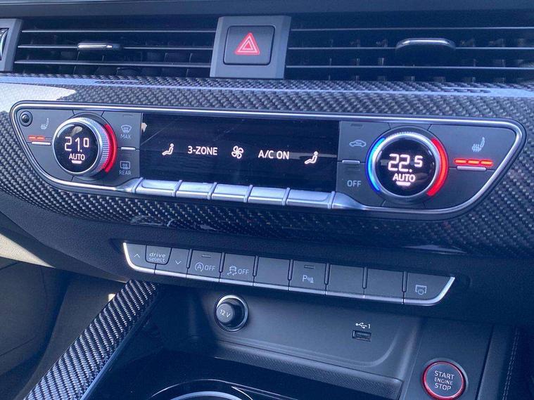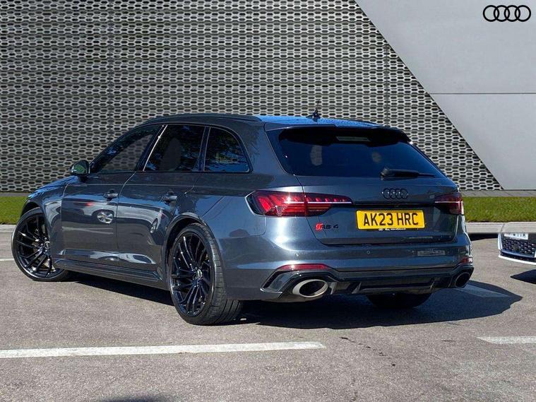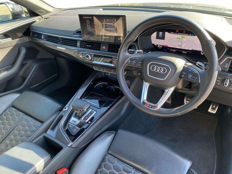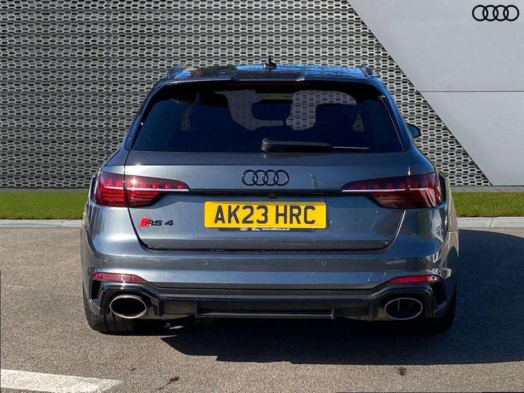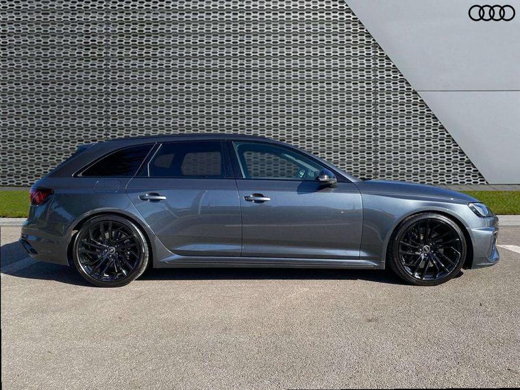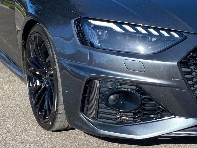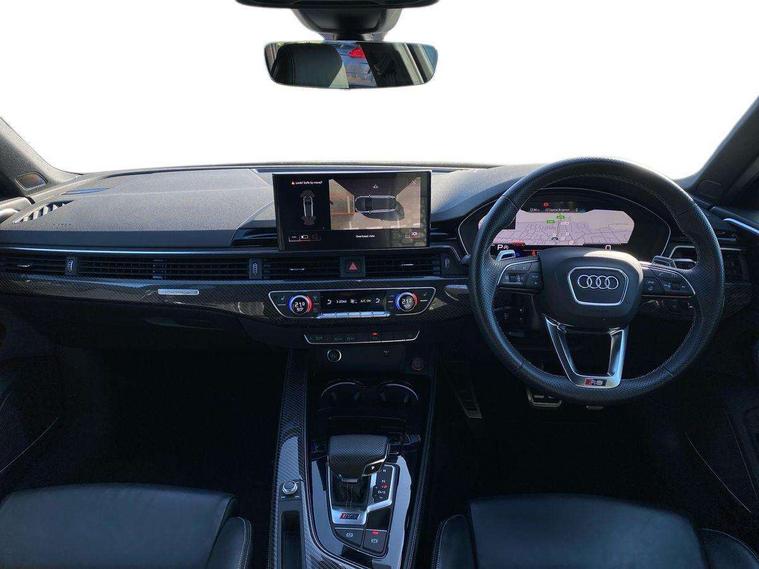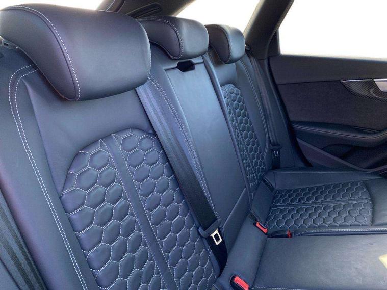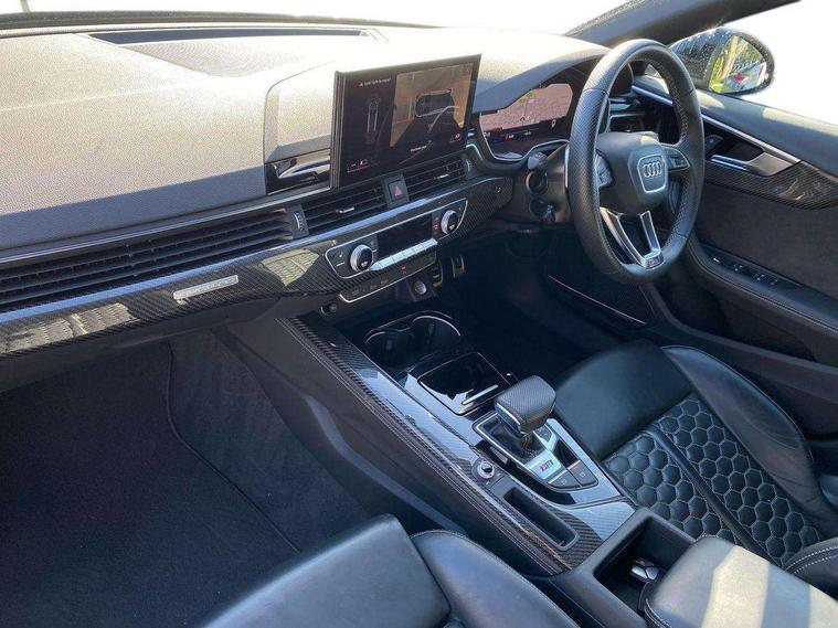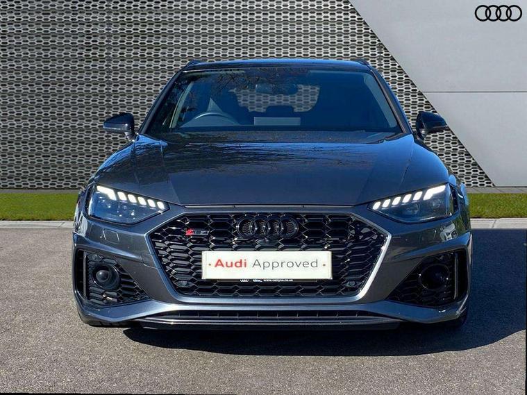 7" Colour driver information system, Amazon alexa Integration, Audi connect safety and service (e-call), Audi drive select, Audi side assist, Audi smartphone interface, Audi virtual cockpit with RS specific display, Automatic start-stop system with coasting functionality and efficiency programme, Bluetooth interface, Electromechanical power steering, Email, calendar and text messages displayed via MMI, MMI Navigation plus with MMI touch includes 10.1" high resolution colour MMI display, 3D map, Power opening/closing tailgate, Service interval indicator, Voice control system, 58 Litre fuel tank, Quattro sports differential, 2 USB charging ports, Audi sound system, DAB digital radio module, 3rd brake light, Acoustic windscreen, Audi Beam uses LEDs to project the RS logo onto ground as you exit your RS4, Audi matrix LED headlights with LED rear lights + dynamic front and rear indicators, Audi rings and lettering glossy black, Auto dimming rear view mirror, Automatic headlights + automatic windscreen wipers, Black roof rails, Blue tinted glass, Body colour door handles, Electric front windows, Electric rear windows, Electrically folding auto dimming/adjustable/heated door mirrors with memory function, LED side indicators and kerb view function for passenger side, Flared front and rear wheel arches, Front bumper with enlarged air inlets, Headlight range control, High beam assistant, High gloss black door mirror housing, High gloss black triangular aperture at rear door, Honeycomb design grille with quattro logo, Lateral air inlets next to front headlights, LED daytime running lights, LED indicators in door mirrors, Privacy glass with rear acoustic glazing, Rain and light sensors, Rear side wing doors, Rear wiper, Roof spoiler, RS 4 badges on grille and rear, RS4 dual branch chrome tailpipes with left and right oval pipes, 3 seat bench in 2nd row, 3 spoke multifunction plus leather steering wheel with heating and RS badging, 40/20/40 split folding rear seats with rear centre armrest, Black cloth headlining, Deluxe 3 zone electronic climate control, Electric load area cover, Electrically adjustable front seats, Fine nappa leather with contrast honey comb stitching + super sports seats with pneumatic massage function, Front centre armrest, Front headrests, Front/rear floor mats, Heated front seats, Height and reach adjustable steering wheel with full size airbag, Illuminated door sill trims with RS4 logo, ISOFIX child seat mounting and top tether, Leather door armrests and knee pad, Luggage compartment carpet, Perforated leather gear lever knob with contrast stitching, Rear headrests, Retractable load area cover, Single front passenger seat, Stainless steel pedals, Sunvisors with vanity mirrors, Carbon black styling pack - RS4, LED Interior light pack - RS4, Non Smokers pack, 3 point seatbelts on all rear seats, Adaptive driver and front passenger airbags, Electromechanical parking brake, Electronic stabilisation control including ABS, ASR and EDL, Enhanced braking system, Front head airbags, Front seatbelt pretensioners + load limiters, Front side airbags, Hill hold assist, Manual child lock in rear doors, Multi-Collision braking, Pop-up bonnet for pedestrian protection, Pre sense city, Rear side airbags, Seatbelt monitoring, Traction control, Tyre pressure warning, Variable restraint system, Warning triangle and first aid kit, Anti theft alarm, Anti-theft wheel bolts, Immobiliser, Keyless Go, Remote central locking, Remote control key with RS emblem, Carbon twill inlays, 20" 5 segment spoke evo design glossy black sport alloy wheels, Tool kit, Tyre repair kit,