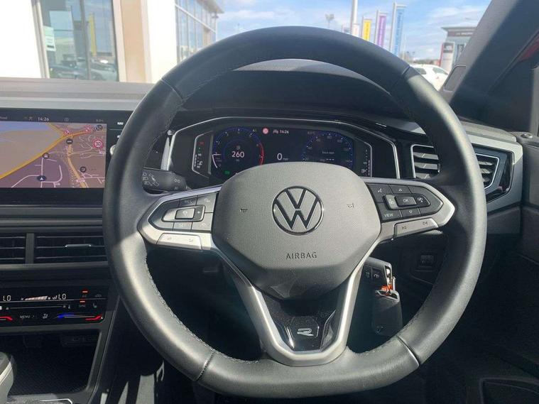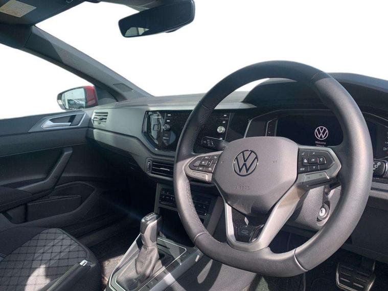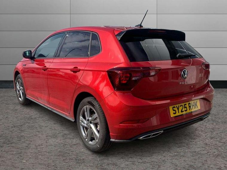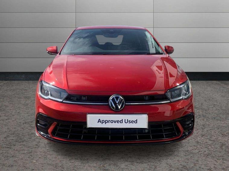 Adaptive cruise control with follow-to-stop and speed limiter, Advanced driver attention and drowsiness monitor, Bluetooth mobile phone interface, Digital Cockpit Pro with 10.25" Display, Dynamic road sign display, Emergency call service, Multifunction camera, Power assisted speed sensitive steering, Preparation for We connect and We connect plus, Speedo and rev counter, electronic odometer, trip, service interval display and fuel gauge, Standard rear axle, Travel Assist - Lane keeping system and traffic jam assist, Travel assist including emergency assist, Trip computer, Warning signal and warning light for front and rear seatbelts not fastened, Washer fluid level indicator, Wireless app connect, Front wheel drive, Rear shock absorpion, Start-stop system with battery regeneration (recuperation - energy recovery during braking), DAB Digital radio, Diversity antenna for FM reception, Front and rear 6 speakers, Body colour bumpers, Body colour door handles, Electric front windows, Front scuff plates with R-Line logo, Heat insulating glass windscreen, Power folding adjustable/heated exterior mirrors and front passenger exterior mirror lowering function, Rear electric windows, Rear fog light, Rear side wing doors, Rear windscreen washer and wiper with interval delay, Third brake light, 12V power socket in centre console, 2 USB-C ports in the front, 2 USB-C charging sockets on the center console in the rear, 3 rear head restraints, 60/40 split folding rear seat and rear seat bench not split, Air care climatronic air conditoning system with active combination filter and 2-zone temperature control, Black roof lining, Carpet mats, front and rear, Chrome plated radiator grille inserts, air vent surrounds and light switch surrounds, Door and side trim panel, Driver and front passenger seat height adjustment, Driver/passenger sunvisors with illuminated vanity mirrors, Front centre armrest, Front footwell illumination, Front seat backrest storage pockets, Front sports comfort seats, Handbrake lever handle in leather, Headliner in recycled material, Isofix child seat preparation easy-fit (for two outer rear seats, and front passenger seat) compatible with I-size, Karoso artvelours cloth upholstery, Leather trimmed gear knob, LED interior light with switch off delay and dimmer, 2 reading lights front and rear, Luggage compartment cover, Luggage compartment floor, Luggage compartment lighting, Lumbar adjustment for front seats, Single front passenger seat, Stainless steel pedals, Standard pedal cluster, Three spoke leather wrapped multifunction steering wheel with shifting paddles, Light and sight pack - Polo R-Line/Black Edition, 3 point height adj front seatbelts + pretensioners, 3x3 point rear seatbelts, ABS, Driver and front passenger airbag with front passenger airbag deactivation, Drivers and front passengers safety optimised head restraints, ESC (Electronic stability control) + EDL (Electronic Differntial lock) and ASR (Traction control), Extended and predictive pedestrian/ cyclist protection, Front curtain and side airbags with center airbag, Front/rear disc brakes, Hill hold control, Manual child lock in rear doors, Single tone horn, Tyre pressure loss indicator, Alarm with interior protection, Anti-theft alarm system with interior monitoring, backup horn, and towing protection, Anti-theft wheel bolts, Electronic engine immobiliser, Chrome applications on rotary light, mirror adjustment, window regulator switches, outlet with frame in black, Dark grey anodised matt decorative inserts in dash and front door panels, 16" Coventry alloy wheels, Low rolling resistance tyres,
