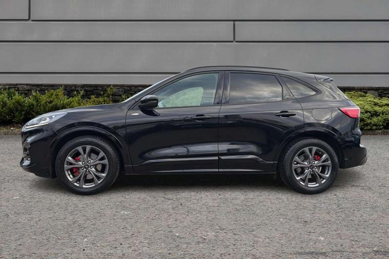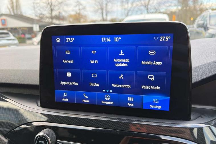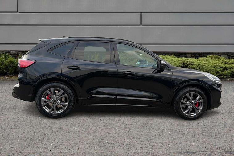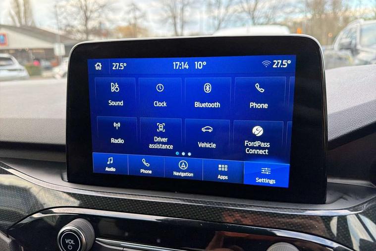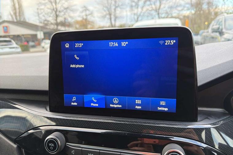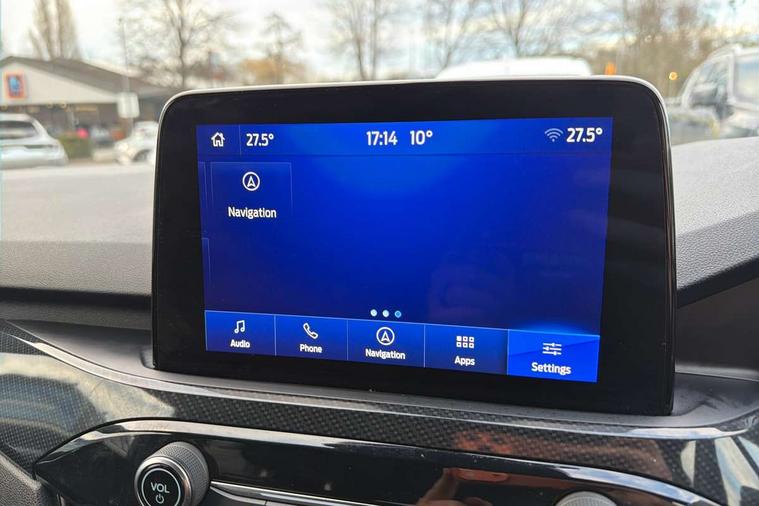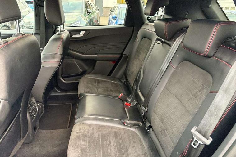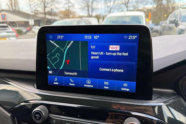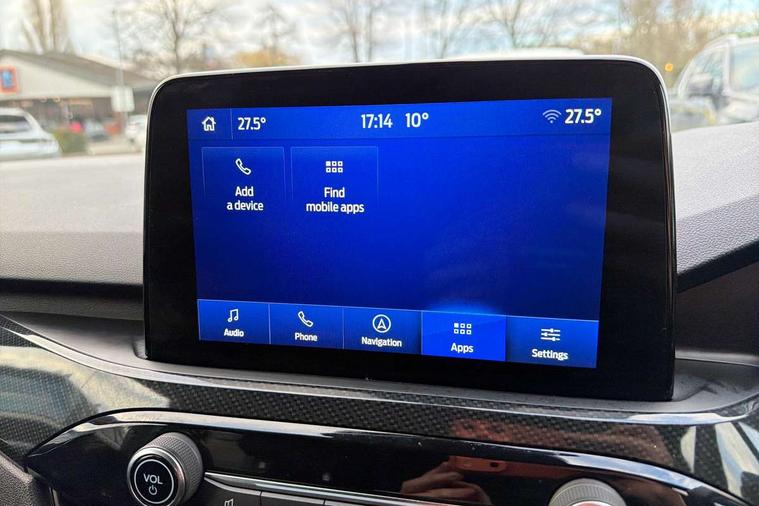 12.3" digital colour instrument cluster, Ford easy fuel, Ford SYNC 3 with 8" TFT LCD touchscreen, App Link, andriod auto/apple carPlay, emergency assistance and navigation with Ford pass connect, Front and rear parking sensors, Hands free power tailgate, Lane keeping aid with lane departure warning, Power assist steering, Rear view camera, Selectable drive modes, Service interval indicator, Sports suspension, Twist beam rear suspension, B&O premium audio system with 10 speakers and subwoofer, 2 USB ports, DAB radio/CD, Auto headlamps with high and low beam, Black roof rails, Body colour bumpers, Day/night rear view mirror, Front LED fog lamps, Large rear roof spoiler, LED daytime running lights, LED rear lights, Power folding, electrically adjustable and heated door mirrors with puddle lights, Power front/rear windows with global close, Quickclear heated windscreen, Rain sensing wipers, Rear privacy glass, Rear side wing doors, Rear wiper, ST Line body styling kit with unique front and rear fascia and bumper, rear painted diffuser, front painted skid plates, dark mesh upper grille, ST Line front scuff plates, Third brake light, Twin exhausts, 2nd row sliding seats with 60:40 split, Alloy pedals, Centre console with electronic parking brake, Dark headlining and pillars, Electronic automatic temperature control (EATC), Flat bottomed leather steering wheel in sensico with red stitching, Front and rear head restraints, Partial premium touch Sensico with black cloth inserts and red stitching, Rear centre head restraint, Single front passenger seat, Sports seats, ST Line front and rear floor mats, ST Line gear knob, 3x3 point rear seatbelts, Airbags - front driver/passenger, front and rear curtain, Drivers knee airbag, Electronic stability control (ESC) and ABS, Ford MyKey Gen 2 safety system, Manual child proof rear door locks, Post collision braking, Pre collision assist with autonomous emergency braking, Rear seat Occupancy alert, Red brake calipers, Tyre pressure monitoring system, Engine immobiliser, Keyless entry and Ford power start button (Keyless start), Locking wheel nuts, Remote powered central double locking doors, Thatcham category 1 alarm,