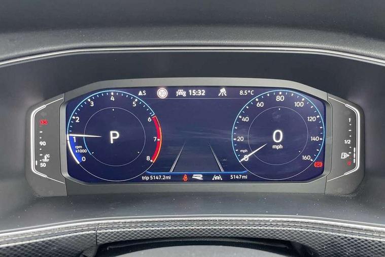 'Lights On' Reminder warning buzzer, 10.25" Digital cockpit pro, Advanced driver attention and drowsiness monitor, Blind spot monitoring, Car information display, Driver profile selection including ECO function, Dynamic road sign display, E-Sim card for online connectivity, eCall emergency call system, Front and rear parking sensors, Front assist, forward collision warning, autonomous emergency braking and speed limiter, Low washer fluid warning light, Multifunction computer with visual gear change recommendation for fuel consumption, Multifunction front facing camera for distance control, Operating permit alteration, Power assisted steering, Predictive adaptive cruise control, Preparation for navigation system with media and internet package, Preparation for We connect and We connect plus, Semi-automated driving assistance, travel assist including lane keeping system Lane Assist and emergency assisst, Speedo, rev counter, electronic odometer, trip, service interval display, exterior temperature and fuel gauge, Warning sound and light for doors and tailgate open, Warning sound and light for front seatbelts unfastened, Wireless Car net app connect with Apple CarPlay, combined functionality of Apple CarPlay/Android Auto and MirrorLink, Wireless charging, Misfuel prevention device, Start-stop system with battery regeneration (recuperation - energy recovery during braking), 2 USB C ports in front, 2 USB charging sockets on the centre console in the rear charging capacity upto 45W, Diversity antenna for FM reception, Music playback - MP3, WMA and AAC files, Radio, Automatic dimming interior rear view mirror, Automatic hazard lights activation under emergency braking, Automatic headlight control with LED separate daytime running light and coming home and leaving home feature, Body colour door handles, Body colour door mirrors, Body coloured bumpers, Dynamic headlight range control with self adjusting whilst driving, Electric folding door mirror, adjustable, heated with front passenger exterior mirror lowering function, Exterior mirrors convex on the left and aspherical on the right, Front and rear electric windows, Front door sill protectors with R-Line logo, Galvanised body, Heat insulating and laminated safety glass windshield, Heat insulating darkened glass in side and rear windows, High Beam Assist, automatic sensing for switching between dipped and main beam, LED rear combination lights, LED third brake light, Lower door sills and door pillars in black, Privacy glass for rear side windows and rear window, Rain sensor, Rear fog light on one side, reversing light on both sides, Rear side wing doors, Rear window aerial, Rear window wiper with intermittent control, Reflectors in all doors, Scuff plates, Tailgate with integrated roof spoiler, 12V Accessory socket in centre console, 2 Front and rear reading lights incorporating LED technology, 3 rear head restraints, 3 seat bench in 2nd row, 60/40 split folding rear seat backrest, Air care climatronic 2 zone air conditioning system, Ambient lighting, Brushed stainless steel pedals, Chrome plated radiator grille inserts, air vent surrounds and light switch surrounds, Cloth upholstery, Comfort front sport seats, Door and side trim panel, Drawer under drivers seat, Driver and front passenger sunvisor with vanity mirror, Dust and pollen filter, Front + rear carpet mats, Front centre armrest with storage compartment, Front footwell illumination, Front seat back storage pockets, Glove compartment door with light, Heated front seats, Heating and fresh air system with 4 stage blower, Height/reach adjust steering wheel, Instrument lighting white adjustable panel illumination, Interior light with switch off delay and dimmer, Isofix anchors for child seats on outer rear seats and front passenger seats, Leather gearshift handle, Leather wrapped multifunction steering wheel, Luggage compartment floor, Luggage compartment lighting, Manual front seats with height adjustment, Padded dashboard, Removable luggage compartment cover, Single front passenger seat, Storage compartment in drivers and front passengers door, Titanium black roof lining, Unsplit sliding rear seat bench, 3 point outer rear seat belts with ECE label, 3 Point seatbelt for centre rear seat, Anti-lock Braking System (ABS) with Hydraulic Brake Assist (HBA), Automatic post collision braking system, Disc brakes in front, Disc brakes in rear, Driver and front passenger safety-optimised head restraints, Drivers and Front Passengers airbags with front passengers airbag deactivation switch, ESC with EDL and ASR (traction control), Extended and predictive pedestrian/cyclist protection, Front and rear passenger curtain airbag system including front side airbags, Height adjustable front 3 point seatbelts + pretensioners, Hill start assist, Pre crash preventive occupant protection, Proactive passenger protection system in combination with front assist, Rear door child safety locks, Rigid safety cell with front and rear crumple zones, Single tone horn, Tyre pressure loss indicator, Volkswagen roadside assistance, Alarm with interior protection, Anti theft alarm system, Electronic engine immobiliser, Remote tailgate unlocking using key fob, Titanium Black Decorative inserts - R Line, Low rolling resistance tyres,