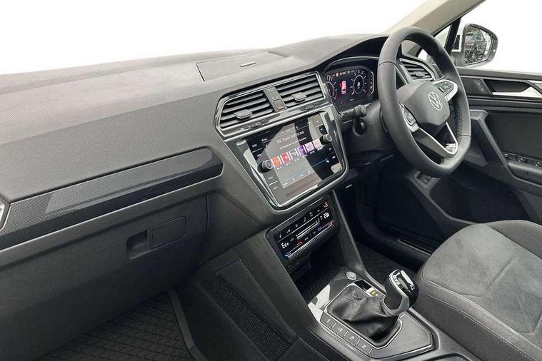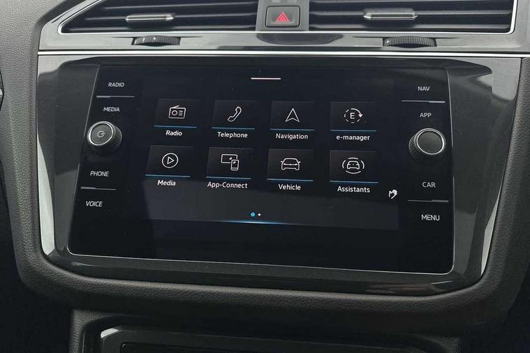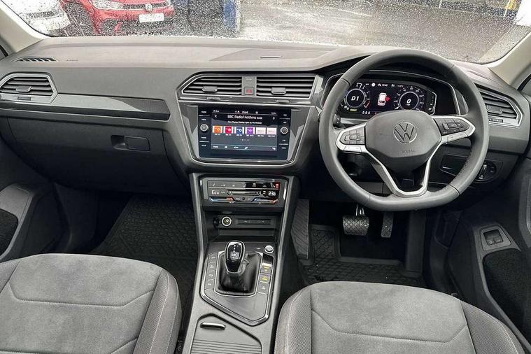 Adaptive cruise control ACC stop and go including speed limiter, App-Connect incl. App-Connect Wireless for Apple CarPlay and Android Auto, Bluetooth phone integration system, Distance control assist, Driver alert system, Driver profile selection, Dynamic road sign display, eCall emergency call system, Electromechanical speed sensitive power steering, Engine start/stop button, Lane keeping system Lane Assist, Lights on warning, Motorised electric tailgate operated via key fob, drivers door and foot movement under tailgate, Multifunction front facing camera, Outside temperature display, Premium multifunction display with multi colour display, Remote control boot opening, Rev counter, Revision / skills operating concept travel assistant, Service interval indicator, Speed limit display, Start/stop system with regenerative braking, Tailgate/trunk lid unlocking from outside, Trip computer, Warning sound and light for doors and tailgate open, Battery regeneration during braking, Charging cable Mode 3 Type 2 / 3 (16A), XDS electronic differential lock for improved traction and handling, 4 X 20 watt output, 8 Speakers, Diversity antenna for FM reception, Radio, SD card slot, Simultaneous pairing of 2 compatible mobile devices, SMS functionality - read, compose and send SMS messages using touch-screen display, Title and cover art display, USB C ports, Aluminium door sill protectors, Auto dimming interior rear view mirror, Automatic headlight control system, Body colour door handles, Body coloured bumpers, Body coloured door mirrors with integrated indicators, Coming/leaving home lighting function, Dynamic headlight range control, Front and rear electric windows, Heated rear window, High level 3rd brake light, IQ light-Adv high beam, Dynamic light assist for LED matrix headlamp+LED separate DRL+DCL, dark red rear LED tech, Poor weather light+ cornering light, Laminated safety glass windshield, heat and sound insulating, LED rear number plate lights, Privacy glass for rear side windows and rear window, Rain sensor windscreen wipers, Rear exhaust tailpipe, Rear fog lamp, Rear side wing doors, Rear windscreen washer and wiper with interval delay, Side and rear windows in heat insulating glass, Tilting and sliding panoramic sunroof with rear panoramic sunroof, Trailer Stability Programme, Windscreen wipers/ intermittent wipe + 4 position delay, 12V outlet in center console rear and in luggage compartment, 12V outlet in front and tray, 2 cup holders in front, 2 LED front reading lights, 2 LED rear reading lights, 3 bench rear seats in 2nd row, 3 rear headrests, 4 load lashing points, 40:20:40 split folding rear seats, Air Care Climatronic 3 zone automatic climate control with enhanced air filter and controls in the rear, Backrest release for left front seat, Climate control unit rear with touch function, Door and side trim panel in foam film and woven fabric, Front centre armrest, Front footwell illumination, Front seats head restraints (x-adjustment), Height adjustable front seats, Height/reach adjust steering wheel, Instrument lighting white adjustable panel illumination, Interior light with delay, Isofix Preparation 2 Rear child seats, Leather gear knob, Lockable cooled glovebox, Luggage compartment lighting, Luggage net, Rear bench seat asymetrically split folding, longitudinally movable and folding with load-through hatch and center armrest, Remote unlocking for rear seat backrest, Removable luggage cover, Removable rear headrests, Safety optimised front head restraints, Single front passenger seat, Sliding/reclining rear seats, Standard rear seat release, Storage compartment in driver's door, Storage compartment in passenger's door, Storage compartment in rear doors, Storage compartments in luggage area left and right, Storage tray on dashboard, Sun visors with illuminated vanity mirrors, Top front comfort seats, Variable boot floor, height adjustable and removable, Easy open and close pack with safelock - Tiguan, Park assist pack - Tiguan, 3 point seat belt for centre rear seats, 3 point seat belts with seat belt pretensioners for the outer rear seats, Active bonnet, Curtain airbags for front and rear passengers, Driver/Front Passenger airbags, Drivers knee airbag, Electronic parking brake with auto hold, Electronic Stability Control with driver steering recommendation, ABS, ASR, EDL, EDTC and trailer stabilization, Front assist with autonomous emergency braking (for Adaptive Cruise Control ACC up to 130 mph), Front disc brakes, Front passenger airbag deactivation, Front side airbags, Height adjustable front 3 point seatbelts + pretensioners, Hill hold control, Manual child proof rear door locks, Pedestrian monitoring system, Power assisted brakes, Proactive passenger protection system in combination with front assist, Rear disc brakes, Rigid safety cell with front and rear crumple zones, Two tone horn, Tyre pressure loss indicator, Warning sound and light for front seat belts if unfastened, Anti theft alarm system with interior monitoring, backup horn and towing protection, Anti theft wheel bolts, Central locking system with safelock radio remote control and 2 remote control folding keys, Electronic engine immobiliser, Tool kit, Tyre mobility kit Includes 12V compressor and tyre sealant,