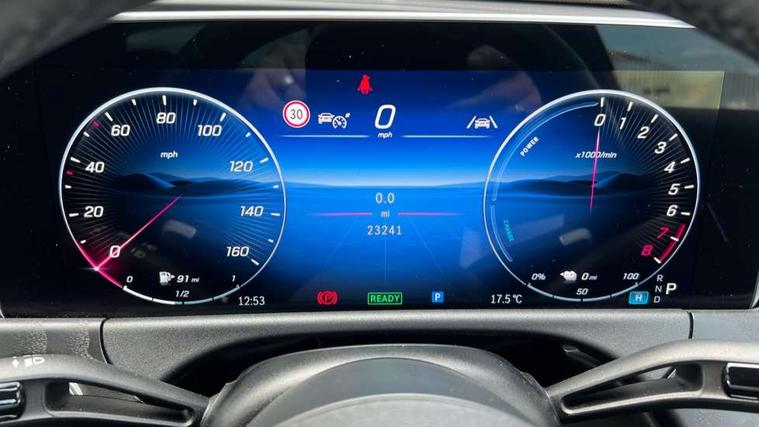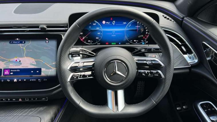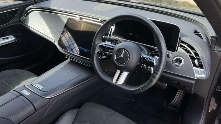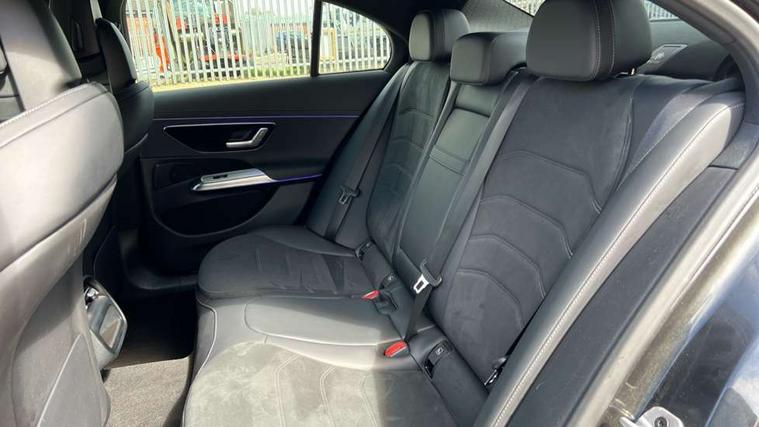 12.3" high resolution cockpit display, 14.4" high resolution central media display with latest MBUX generation, 5G Communications module, Acoustic presence indicator, Active lane keeping assist, Attention assist, Blind spot assist, Bluetooth, Brake wear warning display, Direct steer speed sensitive steering, ECO start/stop function, Evasive manoeuvre support, Fingerprint scanner, Fluorescent jacket for driver, Hard disc navigation, MBUX navigation premium, MBUX voice control, Mercedes me connect including emergency call system, accident recovery, breakdown and maintenance management, Outside temperature display, Preinstallation for live traffic, Remote and charging services plus, Remote Services Premium, Service indicator (ASSYST), Status display for rear seat belts in instrument cluster, Traffic sign assist, Trip computer in multifunction display showing current fuel consumption, Wireless charging, Wireless smartphone integration with Apple CarPlay and Android auto, 50 litre fuel tank, 9G TRONIC automatic transmission, AC charging, Agility control suspension with selective damping system, Charging cable for household socket, DC charging, Mode 3 charging cable for public charging and domestic charging stations, Sporty engine sound system, DAB Digital radio, Preinstallation for MBUX Entertainment Plus, 3rd brake light, Adaptive brake lights, Aerial integrated in rear window, AMG Line exterior, Auto dimming driver's door mirror, Auto dimming rear view mirror, Digital air vent control, Electric folding door mirrors, Electric windows with one touch opening/closing and obstruction sensors, Electrically adjustable and heated door mirrors, EQ badging, Heat insulating privacy glass, LED daytime running lights, LED high performance headlights with adaptive highbeam assist, Pre-installation for roof rail systems, Rear boot, Rear side wing doors, Surround lighting with logo projection, 3 seat bench in 2nd row, 4 way lumbar support, Ambient lighting, AMG brushed stainless steel sports pedals with rubber studs, AMG floor mats, AMG line interior, Artico/Microcut microfibre upholstery, Automatic child seat recognition sensor, Central stowage compartment with USB socket for use with Android Auto and Apple CarPlay, Courtesy lights in rear grab handles with reading light functionality, Folding rear seat backrest, Front centre armrest with stowage compartment, Gearshift paddles in galvanised silver, Glove compartment - lockable, air conditioned and illuminated, Head restraints for driver and front passenger (four-way adjustability) and in rear (two-way), Heated front seats, Instrument panel and door beltlines in artico nappa look leather, Multifunction sports steering wheel in nappa leather, Roof liner in black fabric, Seat occupancy sensor for front passenger seat, Single front passenger seat, Sports seats, Steering wheel touch control buttons for audio and onboard settings, Sunvisors with illuminated vanity mirrors, THERMATIC 2 zone automatic climate control, Night pack - E class, Parking package with 180 degree camera - E Class, USB plus package - E Class, 3x3 point rear seatbelts, Active bonnet pedestrian safety measure which detects an impact and raises bonnet, Adaptive brake system with HOLD function and brake drying in the wet, Anti-lock braking system (ABS), Automatic front passenger airbag deactivation, Central airbag, Childproof locks manually operated for rear doors and electrically operated for rear power windows, Driver and front passenger airbags, Electronic parking brake, Electronic Stability Programme, Hill start assist, ISOFIX child seat attachment points two outer rear seats, Knee airbags, Pedestrian protection, Pre-Safe anticipatory safety system, Tyre pressure monitoring system, Warning triangle and first aid kit, Window airbags, Alarm system/interior protection/immobiliser, Central locking with interior switch, automatic locking and crash sensor with emergency opening function, Guard 360 degree vehicle protection, Increased anti theft protection, Keyless Go, Urban guard vehicle protection plus, Centre console and dash trim in silver metallic mixted fabric, 20" AMG multispoke design alloy wheels painted in black with high sheen rim flange, Summer tyres, TIREFIT with tyre inflation compressor,