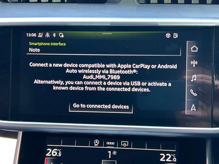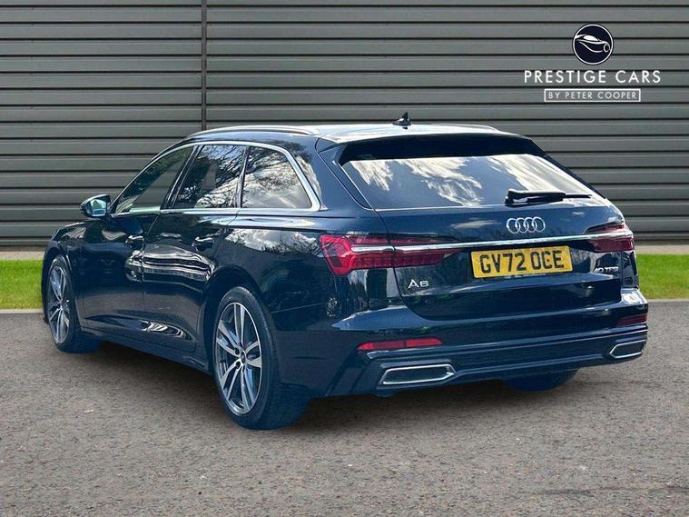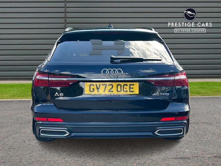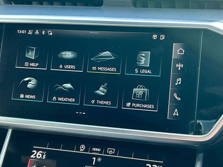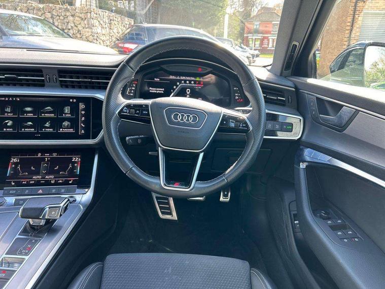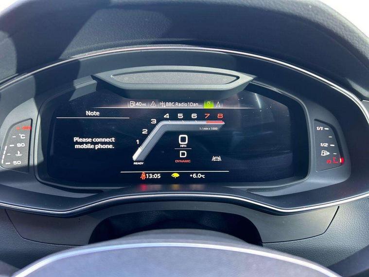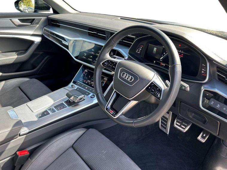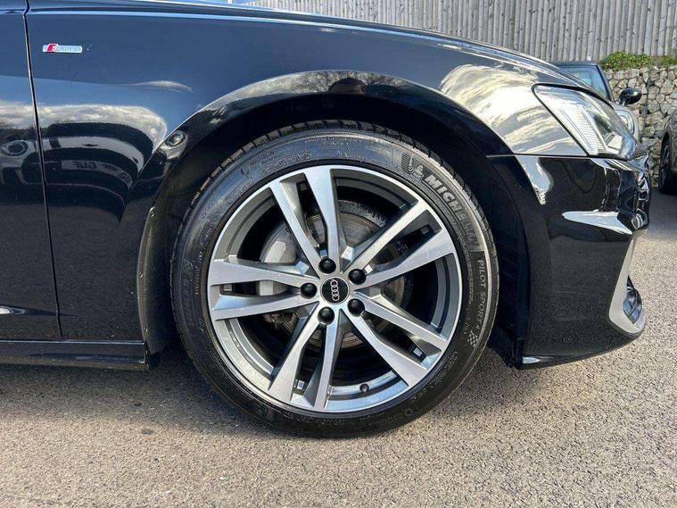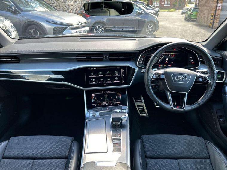 7" high resolution colour driver information display system, Audi connect safety and service (e-call), Audi connect with Amazon Alexa Integration, Audi drive select, Audi parking system plus - acoustic and visual park assist system for front and rear, Automatic start/stop system with coasting functionality, Bluetooth interface, Lane departure warning system, Power operated tailgate, Progressive steering, Rear view camera, Service interval indicator, Smartphone interface includes wireless Apple carplay/Android Auto, Voice control system, Sports suspension, Audi front music interface, Audi sound system, Auxiliary input socket, DAB Digital radio, USB connection, All weather LED headlights, Aluminium roof rails, Body coloured door mirrors, Electric front/rear windows, Frameless auto dimming interior rear view mirror, Front intermittent wipers, Headlight washers, Heat insulating darkened glass in side and rear windows, Heat insulating glass in windshield, LED rear lights, LED signature front daytime running light, LED third brake light, Matt black side air intake grille with inlay in matt aluminium, Privacy glass, Radiator grille in titanium black matt, single frame in chrome and horizontal struts in matt aluminium silver, Rain and light sensors, Rear side wing doors, Rear wiper, S line air inlet design with inlay in matt aluminium, S Line badge on front fender, S Line front and rear bumpers, S line rear diffuser and grille in matt black with matt aluminium tailpipes, S Line roof edge spoiler, S Line side skirts, 2 zone deluxe electronic climate control, 4 way electric lumbar support for driver and front passenger, 40/20/40 split folding 3 rear seat bench in 3 parts with rear centre armrest, Black cloth headlining, Black steering wheel insert, Electrically adjustable front seats with driver memory, Front centre armrest, Front head restraints, Heated front seats, Height/reach adjust steering wheel, Illuminated door sill trims with S logo, Illuminated sun visors with vanity mirrors, ISOFIX child seat mounting and Top Tether with front passenger airbag deactivation, Leather gear knob, Luggage compartment system, Rear headrests, S line front and rear black carpet floor mats with contrast stitching, Single front passenger seat, Stainless steel pedals and foot rest, LED Interior Ambient Lighting Pack - A6, Non smoking pack - A6, Technology pack - A6, 3 point seatbelts on all seats, Airbags - Front side, front and rear including head, Audi pre-sense front, EBD - Electronic brakeforce distribution, Electromechanical parking brake, Electronic Stability Control (ESC) including ABS, ASR and EDL, Extended pedestrian protection measures, Manual child proof rear door locks, Seatbelt monitoring, Tyre pressure warning light, Warning triangle and first aid kit, Anti theft alarm with tow away protection, Anti-theft wheel bolts and wheel loosening detection, Immobiliser, Keyless Go, Remote central locking, Black seatbelts, Matt brushed aluminium dark inlays,