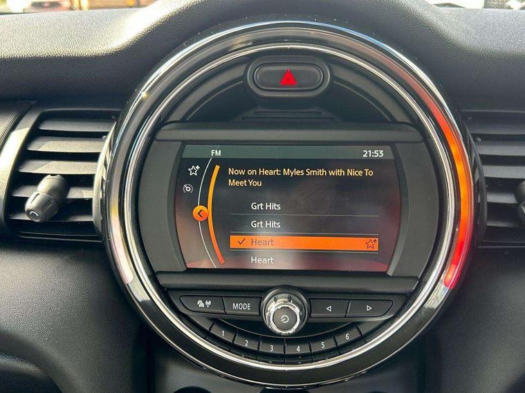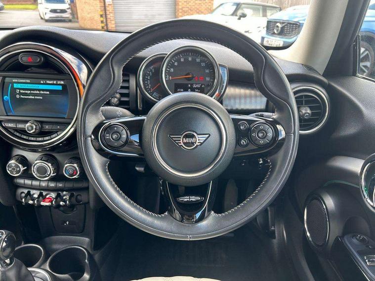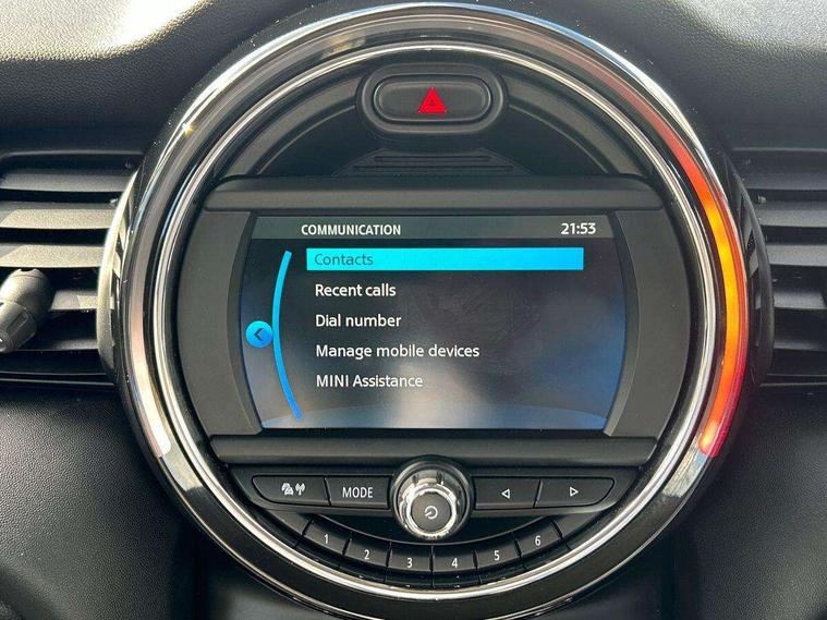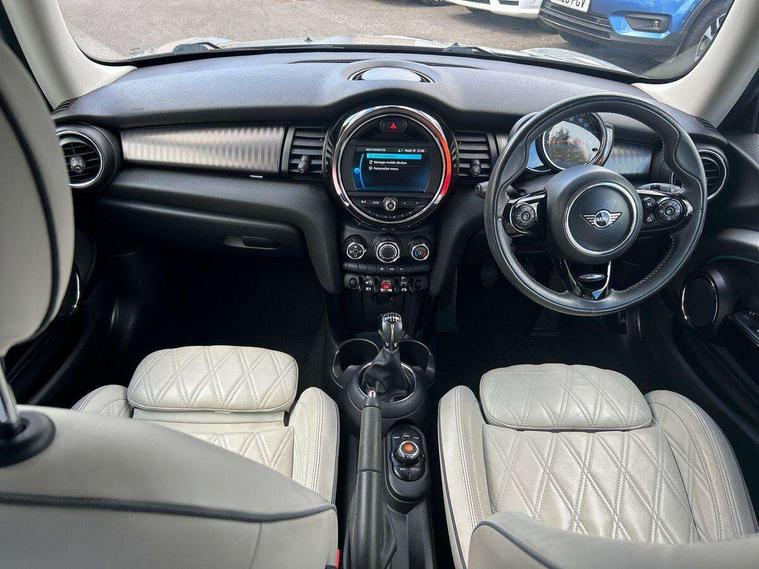 Automatic start/stop function with brake energy recuperation, Compatible mobile phone bluetooth with audio streaming, Electro-mechanical speed dependant steering assistance, Instrument cluster, Mini E-call, MINI TeleServices, On board computer, Service interval indicator, Double Vanos system, Fully variable valve control, High precision injection, 6.5" touchscreen with LED ring, FM tuner and DAB digital radio, Automatic headlight activation switch, Body colour fuel filler cap, Chrome border high gloss black slats radiator grille, Chrome line exterior, Dynamic brake lights, Electric front+rear windows, Heated rear window, Heated windscreen washer jets, LED headlight with closed ring and daytime driving lights, Left exhaust tailpipe with chrome finisher, Metal door sill strips with MINI imprint, Model logo Cooper on right of tailgate, Radiator grille bars, tailgate handle, lower front grille grating, rear central fog light in chrome, Rain sensor window wipers, Rear fog lights, Rear LED lights with union jack design, Rear window wiper, Side scuttle panel with integrated indicator, Sun/heat protection glass, White indicator lenses, 12V Accessory socket in centre console, 4 lashing eyes in luggage compartment, 60/40 split folding rear seat, Air vents, gear lever base, speakers in doors, door handles in chrome, Chrome interior highlights, Cupholders, Front and rear head restraints, Front and rear isofix with front passenger airbag deactivation, Glove compartment, Height and length steering column adjustment, Interior lighting with 12 basic colours selectable via toggle switch in roof, Leather gearshift lever and handbrake gaiters, LED reading lights, vanity mirror lights, front foot well light and spotlight on front seats, Manual air conditioning, Mechanical seat adjustment, driver seat height adjust, forward/back and front seats backrest, Mini logo projection on floor from drivers exterior mirror, MINI Yours leather steering wheel with silver contrasting stitching with MINI Yours badge, Multifunction steering wheel, Storage compartments in doors, Sunvisors with vanity mirrors, 3 point seatbelts on all four seats, 6 Airbags - front, side, head and seat belt tensioners, Anti-lock braking system (ABS), DSC - Dynamic Stability Control, Front and rear disc brakes, Hill start assist, Single tone fanfare horn, Tyre pressure monitoring system, Alarm system with tilt sensor, monitoring doors, bonnet interior and tailgate, Electronic vehicle immobiliser, Start/stop toggle with keyless go, Chrome line interior, Tool kit,