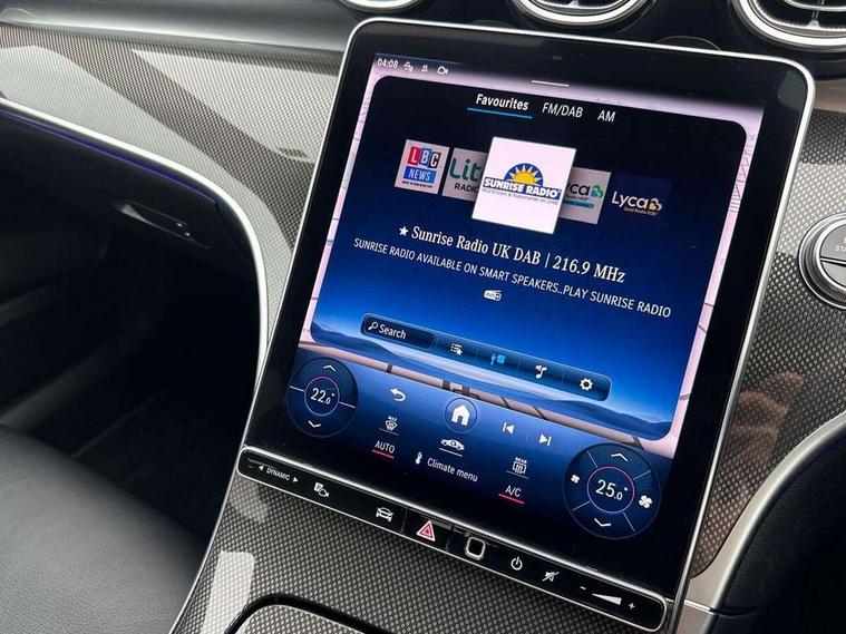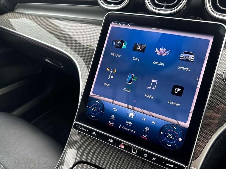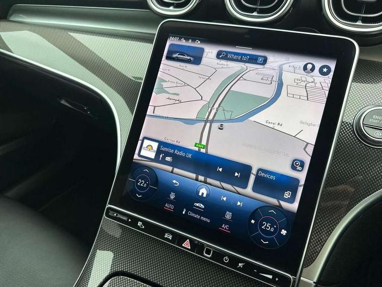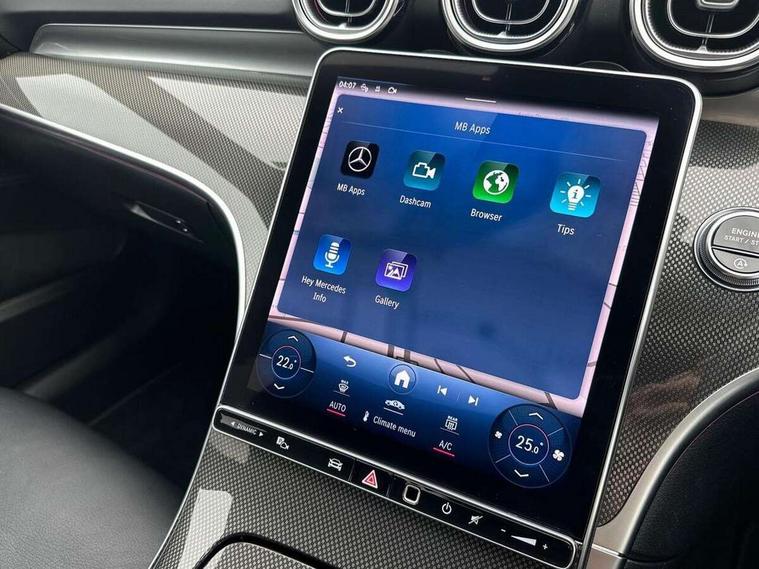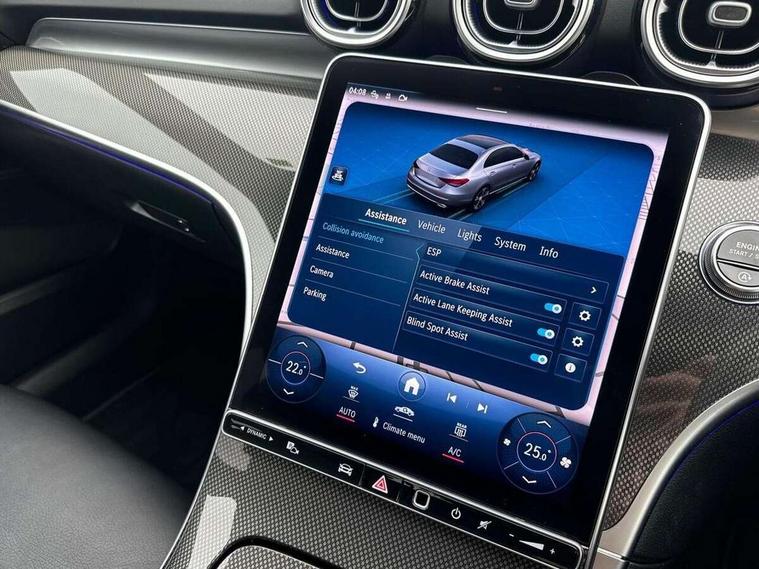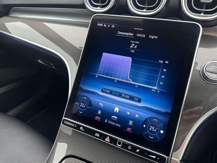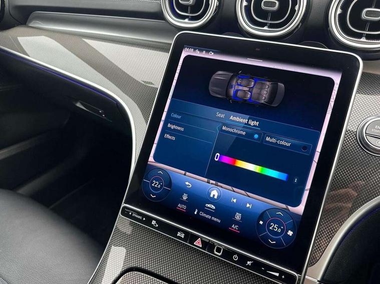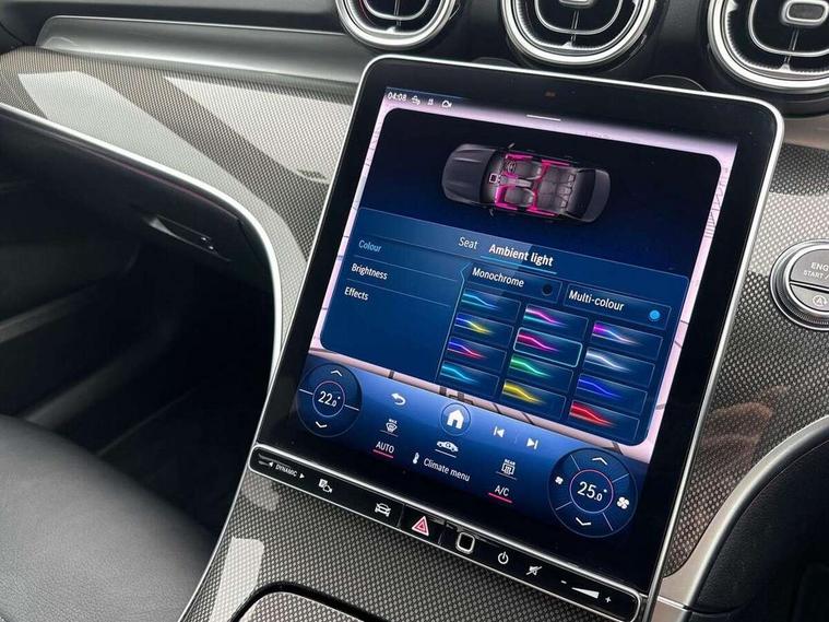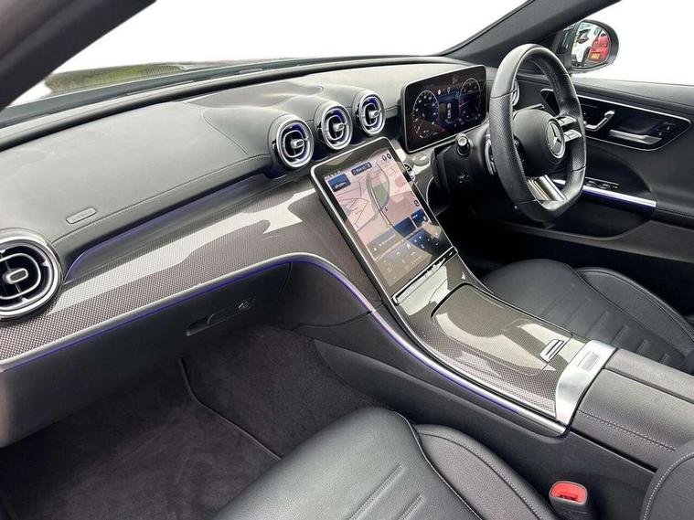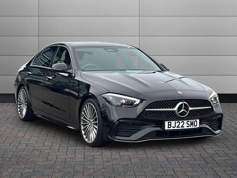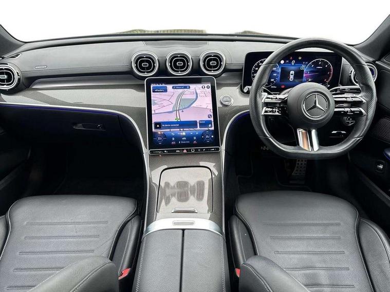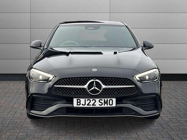 11.9" high resolution multimedia colour display, 12.3" digital instrument cluster display, Active blind spot assist, Active brake assist plus, Active lane keeping assist, AMG DYNAMIC SELECT with a choice of driving modes (Slippery, Comfort, Sport, Sport+, Individual), Attention assist, Cruise control with speedtronic variable speed limiter, E-call, Extended MBUX functions, Finger print sensor, Fluorescent jacket for driver, MBUX augmented reality for navigation, MBUX navigation premium, MBUX voice control activated by keywords "Hey Mercedes", Mercedes connect me, Mercedes me remote services, Outside temperature gauge, Pre-installation for digital key transfer, Remote boot release, Service indicator (ASSYST), Smartphone integration, Sports direct steer speed sensitive steering, Status display for rear seat belts in instrument cluster, Wireless charging system for mobile devices, 66l fuel tank with increased capacity, 9G TRONIC 9 speed automatic transmission, Agility control sports suspension and lowered by 15 mm, Diesel particulate filter, DAB Digital radio, MBUX multimedia system, Adaptive brake lights, Adaptive high beam assist plus, AMG body styling front apron, rear apron and side skirts, AMG front bumper with sporty air intakes and chrome elements, AMG rear bumper with high gloss chrome elements, AMG side skirts in vehicle colour, B-pillar trim in glossy black, Body coloured bumpers, Body coloured door mirrors, Chrome beltline trim, Daytime running lights, Digital light LED headlamps, Electric windows with one touch opening/closing and obstruction sensors, Electrically adjustable and heated door mirrors, Green tinted glass, LED Indicators, LED tail lights, LED third brake light, Powerdomes on bonnet, Privacy glass, Radiator diamond grille with integrated Mercedes Benz star and louvre silver with chrome pins, Radio aerial integrated into rear window, Rain sensor with automatic windscreen wiper activation, Rear boot, Rear side wing doors, Two visible exhaust pipes integrated into rear bumper, 3 spoke flattened bottom AMG multifunction steering wheel in black nappa leather with chrome inserts and perforated leather in grip area, 40:20:40 split folding rear bench seat, AMG Leather upholstery, AMG sports seats, Audio and onboard settings control on multifunction steering wheel, Auto Mercedes-Benz child seat recognition sensor, Black air vents with silver chrome elements, Black floor mats with AMG lettering, Black roof liner, Door trim elements high gloss black with silver chrome surroundings and switches, Double cupholder in centre console, Electrically height/reach adjustable steering column, Folding rear seat backrest, Front and rear head restraints, Front centre armrest with storage compartment, Gearshift paddles on steering wheel, Heated front seats, Illuminated door sills with Mercedes Benz lettering, Illuminated glove compartment stowage, Interior lighting - 64 colour Ambient lighting, Overhead control unit in high gloss black, Rear top tether child seat ISOFIX attachment, Single front passenger seat, Sports pedals with stainless steel surfaces and rubber studs, Sunvisors with illuminated vanity mirrors, THERMATIC 2 zone automatic climate control, Interior lighting package - C Class, Memory package - C Class, Mirror pack - C Class, Parking package with 360 degree camera - C Class, Seat comfort pack - C Class, Stowage space pack - C Class, USB package - C Class, 3 rear 3 point seatbelts, Active bonnet pedestrian safety measure which detects an impact and raises bonnet, Adaptive brake system with HOLD function and brake drying in the wet, Anti-lock braking system (ABS), Black seat belts, Brake calipers with Mercedes-Benz lettering + perforated front brake discs, Child proof door locks, Drivers knee airbag, Drivers pelvis airbag, Dual stage driver/passenger airbags, Electric parking brake, Electronic Stability Programme (ESP), Front centre airbag between driver and front passenger seats, Front side airbags, Larger brake discs on front axle, Rear passenger airbag, Rear seatbelt warning indicator, Sports braking system with perforated front disc brakes, Tyre pressure monitoring system, Warning triangle and first aid kit, Window airbags, Central locking with interior switch, automatic locking and crash sensor with emergency opening function, Chrome surround in electric key, Keyless Go comfort access, URBAN GUARD vehicle protection (Thatcham Category 1) consisting of break-in, anti-theft alarm system (ATA), interior monitoring and tow-away protection, Artico man-made leather dashboard with contrast stitching, Centre console trim in metal weave, 19" AMG multi spoke design alloy wheels painted in black with high sheen finish, Summer tyres, TIREFIT with tyre inflation compressor,