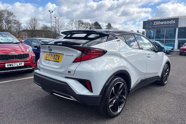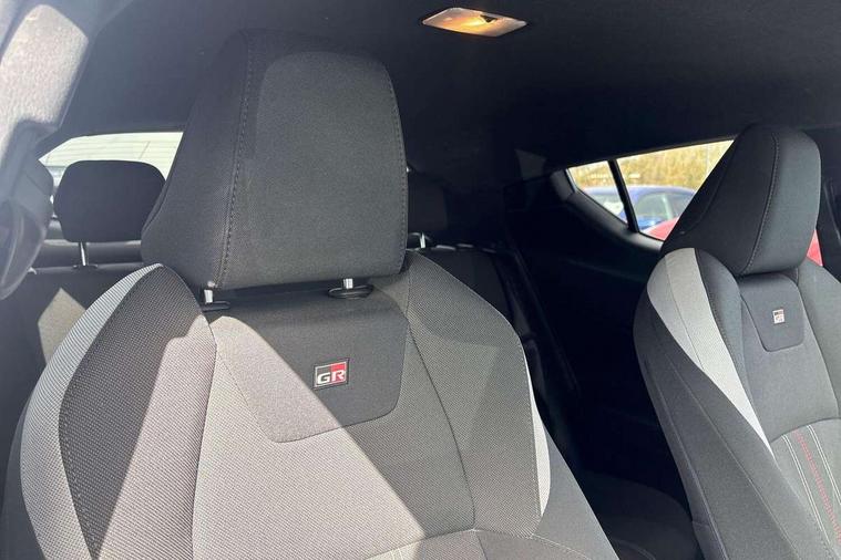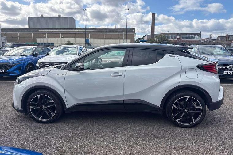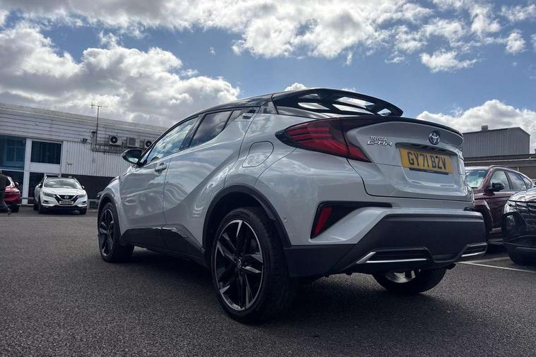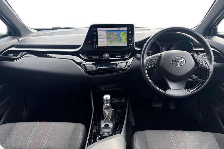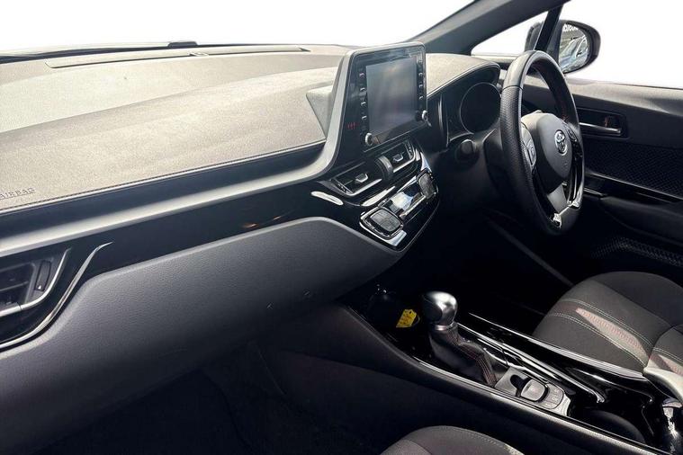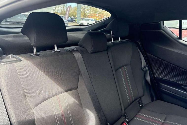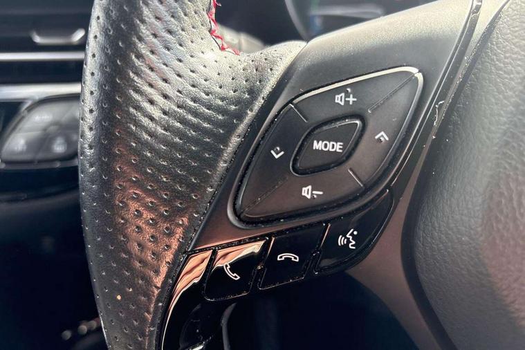 4.2" coloured TFT screen for multi-information display, Adaptive cruise control, Bluetooth connectivity, Electric power steering, Hybrid system indicator, Lane departure alert with steering control, Remote boot door release in cabin, Remote boot door release in key, Reversing camera, Road sign assist - RSA, Simple Intelligent parking assist, Touch 2 Go navigation system, Trip computer, Voice recognition, Vehicle Stability Control (VSC), 6 speakers, AM/FM radio, DAB Radio (Digital Audio Broadcasting), Toyota touch 2 multimedia system with 8" display, USB connector, Wi-fi connectivity, Adaptive front light system, Adaptive LED Headlights, Anti-jam protection on power windows, Auto high beam, Auto up and down function on all power windows, Automatic headlight levelling, Automatic headlights, Automatic headlights cut-off, Black and body coloured rear bumper, Black upper front grille, Body colour door handles, Body colour door mirrors, Body coloured front bumper, Boot door release with push button, Chrome front lower bumper, Electric heated door mirrors, Follow me home headlights, Front and rear power windows, Front spoiler lip in black, Honeycomb lower front grille, LED daytime running lights, LED fog lights, LED front light guide, LED High mounted stop light, LED rear brake lights, LED rear combination lights, Noise reduction layer on front windows and windscreen, Power adjustable door mirrors, Privacy glass, Rear sequential indicators, Rear spoiler, Rear tailgate, Rear window defogger, Rear window wiper, Shark fin antenna, UV-filter on driver and passenger windows, UV-filter on rear windows, 12v power outlet - front, 3 rear headrests, 3 spoke perforated leather steering wheel, 60/40 split folding rear seat, Adjustable rear headrests, Adjustable speed limiter switch on steering wheel, Assist grips front and centre pillar, Audio and telephone switches on steering wheel, Black front door assist grips, Blue ambient lighting on front cup holders, Blue ambient lighting on front doors, Boot light, Chrome interior door handles, Driver and front passenger personal light, Driver and front passenger Whiplash Injury Lessening seats, Driver and passenger seatback pockets, Dual zone automatic air conditioning, Fabric upholstery, Floor mats, Front cupholders, Front head restraints, Front sports seats, Glovebox with internal light, Hard tonneau cover, Heated driver and front passenger seats, Hooks for luggage holding net, Humidifying Nanoe air purifier, Illuminated entry system, Isofix attachments on outer rear seats, Leather gearshift, Light on driver sun visor, Light on passenger sun visor, Manual telescopic steering wheel, Manual tilt steering wheel, Manually height adjustable driver seat, Manually height adjustable front passenger seat, Manually reclining driver seat, Manually reclining front passenger seat, Manually sliding driver seat, Manually sliding front passenger seat, Microphone on front personal light, Mirror on driver sun visor, Mirror on passenger sun visor, Multimedia switches on steering wheel, Pollen filter, Power adjustable lumbar support on driver seat, Shopping bag hooks, Slow opening on lower glovebox, Voice recognition switch on steering wheel, Tech with parking sensor pack - C-HR, 16 Disk front wheel brake, 3x3 point rear seatbelts, ABS+EBD+Brake assist, Electronic parking brake, Front and rear seatbelt reminder, Front passenger airbag on/off switch, Hill start assist control (HAC), Pre collision system with pedestrian detection, Pre-tensioners and force limiters, Rear door child safety locks, SRS Airbags - Driver + Front passenger, front side, front and rear curtain and driver's knee airbags, Toyota safety sense, Tyre pressure monitoring system, Acoustic vehicle alert system (AVAS), Glass-breaking alarm sensors, Immobiliser, Intrusion alarm, Intrusion sensor, Motion sensor alarm, Power door locks, Power passenger window lock, Remote central locking, Black lower dashboard, Black upper dashboard, Piano black console, Silver deco line on upper dashboard, 19" Black machined alloy wheels, Tyre repair kit,