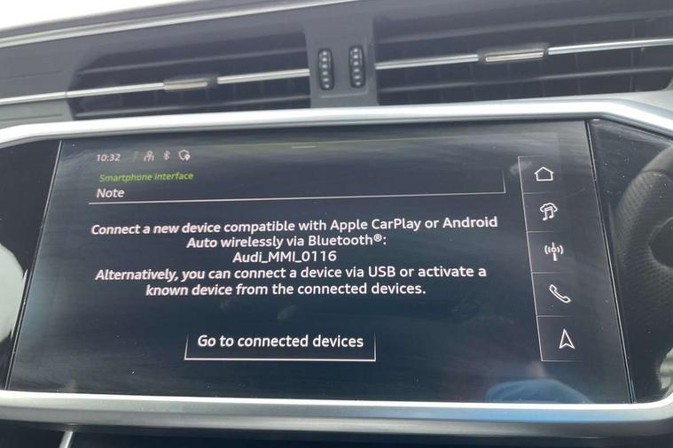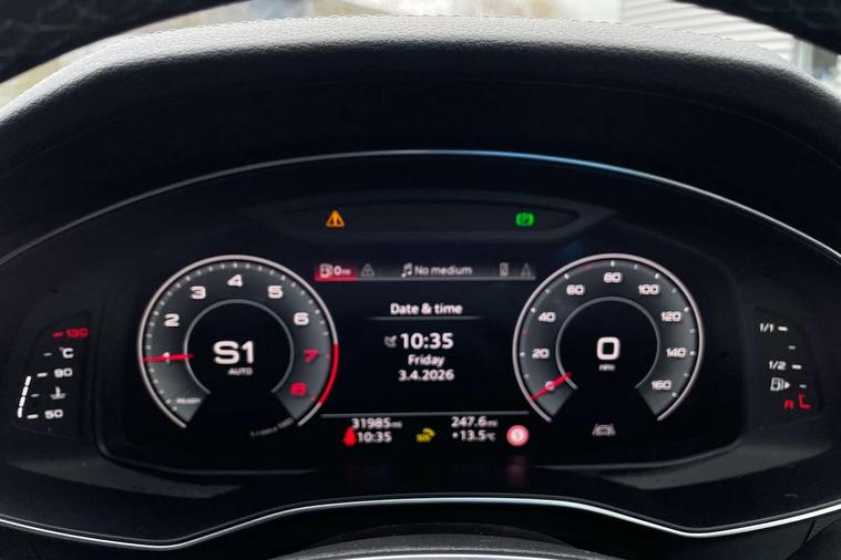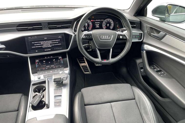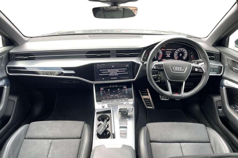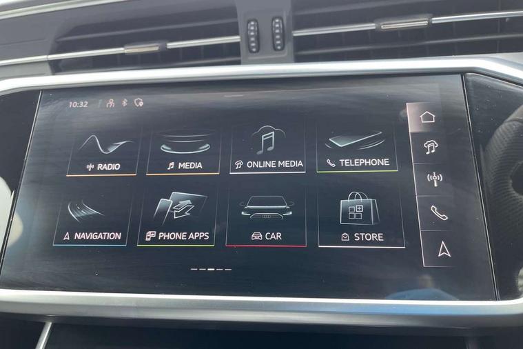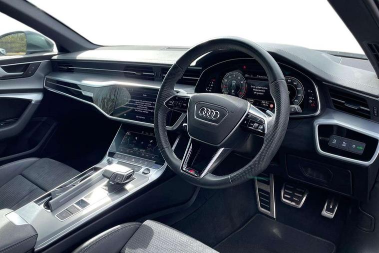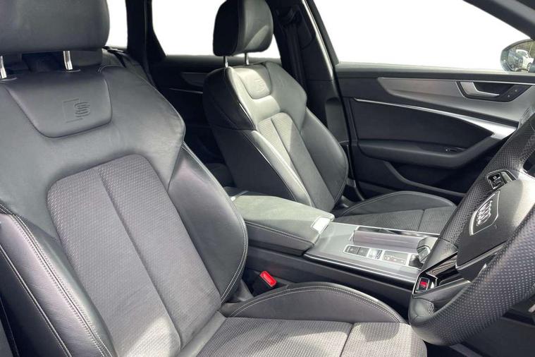 Audi connect safety and service (e-call), Audi connect with Amazon Alexa Integration, Audi drive select, Audi parking system plus - acoustic and visual park assist system for front and rear, Audi virtual cockpit, Automatic start/stop system with coasting functionality, Bluetooth interface, Camera based traffic sign recognition, Lane departure warning system, MMI navigation plus with 10.1" and 8.6" touch screens, Power operated tailgate, Progressive steering, Rear view camera, Service interval indicator, Smartphone interface includes wireless Apple carplay/Android Auto, Voice control system, Sports suspension, Audi front music interface, Audi sound system, Auxiliary input socket, DAB Digital radio, USB connection, Aluminium roof rails, Body colour rear roof spoiler, Body coloured door mirrors, Electric front/rear windows, Electrically adjustable heated and folding + automatically dimming exterior mirrors with memory function, Frameless auto dimming interior rear view mirror, Front intermittent wipers, Heat insulating darkened glass in side and rear windows, Heat insulating glass in windshield, LED rear lights with dynamic indicators, LED signature front daytime running light, LED third brake light, Matrix LED headlights, Matt black rear diffuser with diffuser strip and tailpipes in chrome, Matt black side air intake grille with inlay in matt aluminium, Privacy glass, Radiator grille in anthracite black matt, single frame in chrome and horizontal struts in matt aluminium silver, Rain and light sensors, Rear side wing doors, Rear wiper, 2 zone deluxe electronic climate control, 3 spoke high multi-function perforated leather steering wheel with contrast stitching and shift paddles, 40/20/40 split folding 3 rear seat bench in 3 parts with rear centre armrest, Audi phone box light, Black cloth headlining, Electrically adjustable front seats including seat height, fore/aft position, backrest angle and 4-way lumbar with memory for driver's seat, Front and rear floor mats, Front centre armrest, Front head restraints, Heated front seats, Height/reach adjust steering wheel, Illuminated door sill trims with S logo, Illuminated sun visors with vanity mirrors, Leather gear knob, Luggage compartment system, Rear headrests, Single front passenger seat, Stainless steel pedals and foot rest, Tool kit and car jack, LED Interior Ambient Lighting Pack - A6, Non smoking pack - A6, S line exterior style pack - A6, 3 point seatbelts on all seats, Airbags - Front side, front and rear including head, Audi pre-sense front, EBD - Electronic brakeforce distribution, Electromechanical parking brake, Electronic Stability Control (ESC) including ABS, ASR and EDL, Extended pedestrian protection measures, ISOFIX child seat mounting for front passenger seat and ISOFIX child seat mounting with Top Tether for outer rear seats, Manual child proof rear door locks, Seatbelt monitoring, Tyre pressure warning light, Warning triangle and first aid kit, Anti theft alarm with tow away protection, Anti-theft wheel bolts and wheel loosening detection, Immobiliser, Keyless Go, Remote central locking, Matt brushed aluminium inlays,