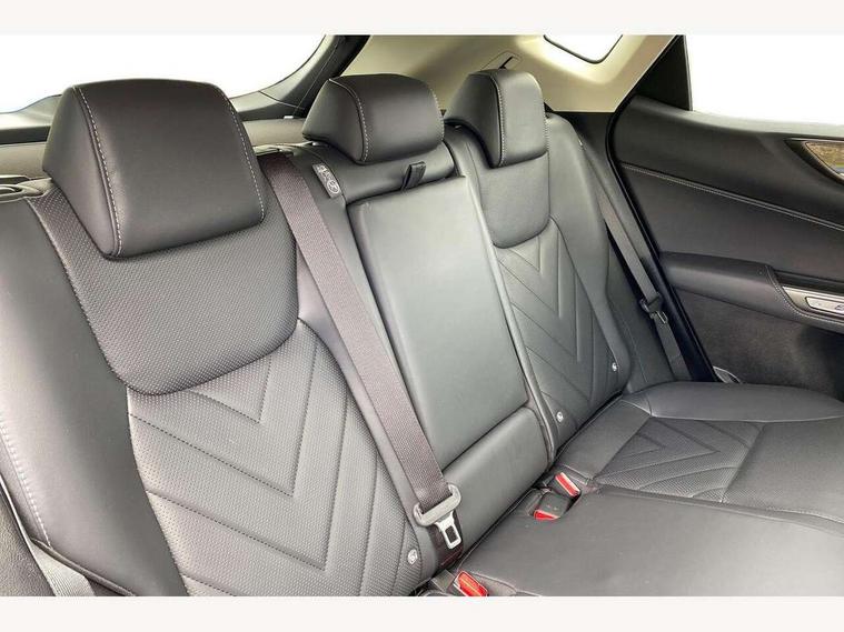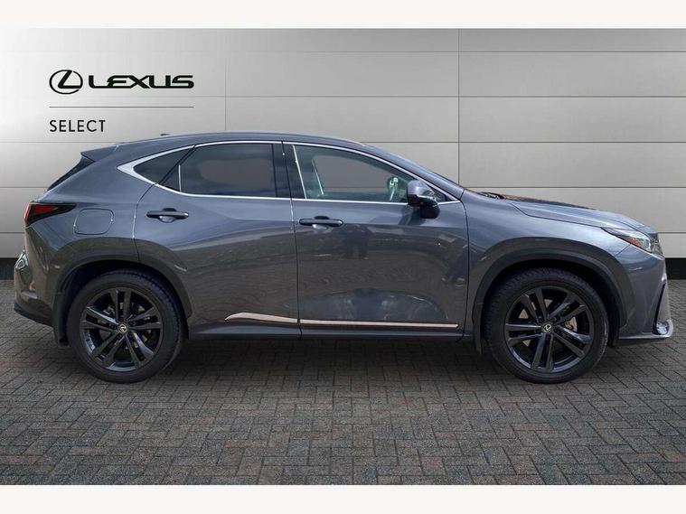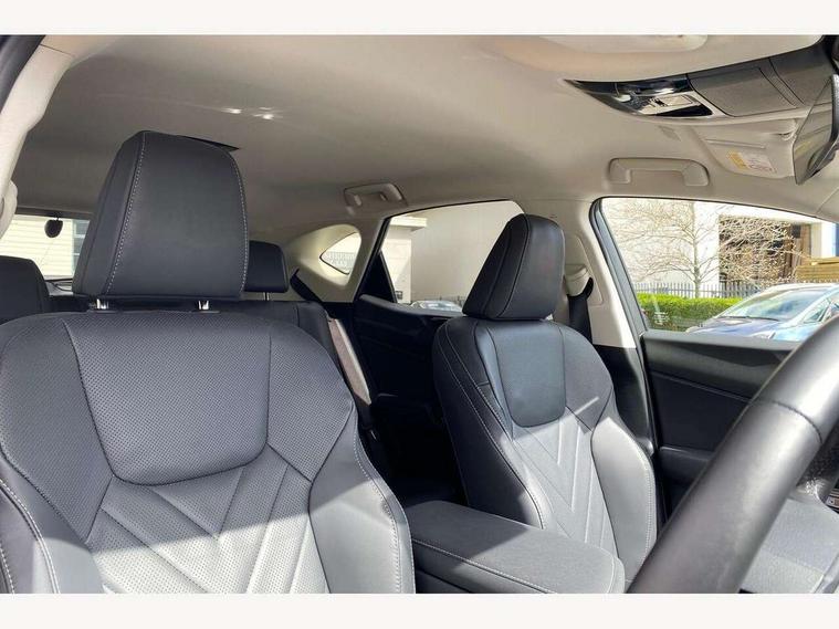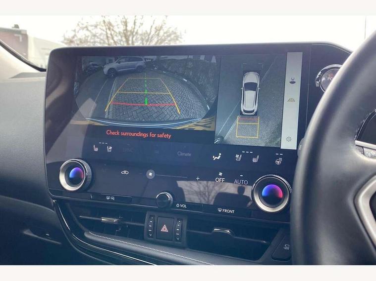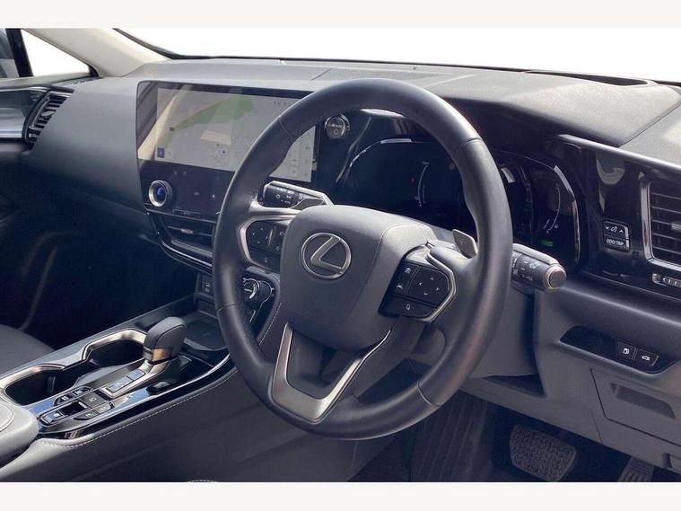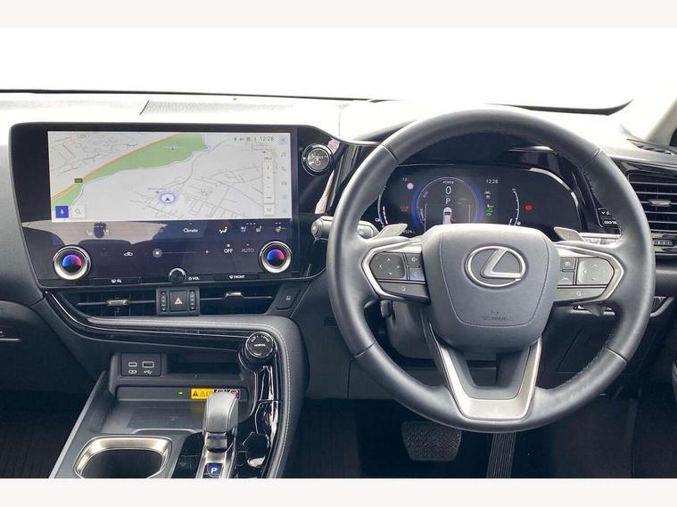 4 driving modes EV/Eco/Normal/Sport, 7" display in instrument binnacle, Blind spot monitoring with rear cross traffic alert, Bluetooth telephone connectivity, eCall emergency system, Electric speed sensitive power steering, Intelligent parking sensors - 4 front and 4 rear, Lane change flasher function, Lexus link connect - Cloud based navigation, cloud based voice assistant, always online and 9.8" VGA touchscreen, Push button starter, Reversing camera with back guidelines, Service interval indicator, Tailgate, Wireless Apple CarPlay and wired Android Auto, Wireless Smartphone charger, 6.6 kW onboard charger, All Wheel Drive (AWD), Hybrid automatic transmission, Vehicle Dynamics Integrated Management (VDIM), Vehicle Stability Control (VSC), 10 speakers, 4 USB ports - 2 front, one USB C, 2 rear USB C, DAB Digital radio, Auto dimming interior rear view mirror, Automatic headlights, Bi LED headlights, Double hidden exhaust pipes, Front and rear one touch power windows, with anti-jam protection, Heated, auto-folding, auto-dimming outside mirrors with reverse tilt function and turn indicators, Illuminated door handles with puddle light, LED brake lights and rear lights with emergency brake signal, LED cornering lights, LED daytime running lights, LED front fog lights, LED Indicators, Power back door with kick sensor, Privacy glass, rear doors and tailgate, Rain sensor windscreen wipers, Rear side wing doors, Rear wiper, Roof rails, 12V accessory port centre console and luggage compartment, 2 cupholders in front centre console, 2 way electrical lumbar adjustment for driver, 2 x fixed shopping bag hooks in boot, 2 x sun visors with vanity mirror and lamp, 3 seat bench in 2nd row, 4 x tie down hooks in the boot, 60/40 split folding rear seat, 8 way driver/passenger electrically adjustable front seats, Adjustable rear seat backrest, Card holder installed in driver and passengers sun visors, Centre armrest with storage box, Dual climate control air conditioning system, Front and rear head restraints, Front and rear textile carpet mats, Front passenger seat, Heated front seats, Heated steering wheel, Leather gear lever, LED interior illumination, Power adjustable leather steering wheel with paddle shifts, Premium Tahara leather upholstery, Rear centre armrest with 2 cupholders, Whiplash Injury Lessening (WIL) feature (active headrest) for seats, 2 x Isofix child rear seat restraints, 3 point ELR front seatbelts with pretensioners, 3x3 point rear seat belts, ABS, Adjustable seat belt anchor points, Driver and front passenger 2 stage airbag, Driver/front passenger side airbags, Drivers knee airbag, E-Latch with safe exit assist, EBD + Brake Assist, ECB (Electronically Controlled Brake System), Electronic parking brake, Front and rear curtain shield airbags, Front center airbag, Front passenger seat cushion airbag, Hill assist control, Lexus safety system - dynamic radar cruise control, pre collision system day and night, lane tracing assist, road sign, automatic high beam, OTA, Manual rear child locks, Passenger airbag cut-off device, Traction control, Tyre pressure warning, Anti-theft system with alarm, intrusion sensor, glass breakage sensor, tilt sensor and engine immobiliser, Locking wheel nuts, Smart keyless entry, Speed sensitive auto door locking, Two motion door lock with double lock, Ultra Wide Band (UWB) Anti-theft system, VIN Window etching, 3D prism black Inlay, Organic inlay, Tyre repair kit,