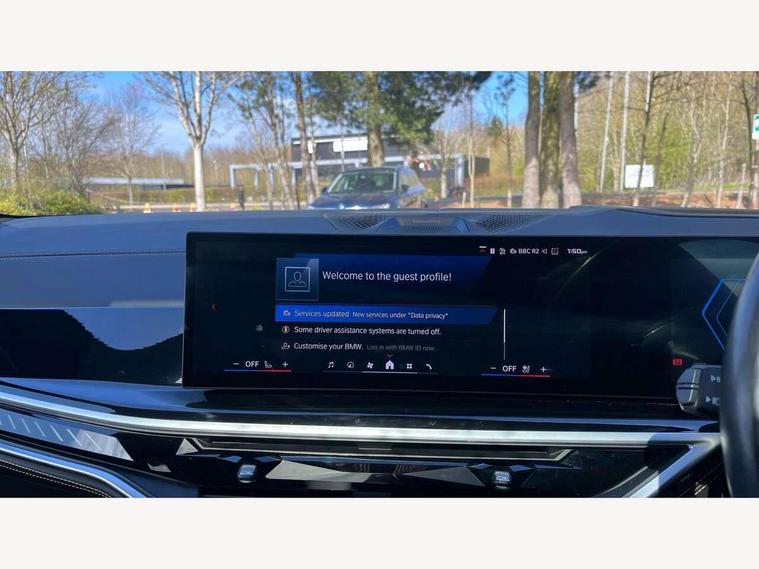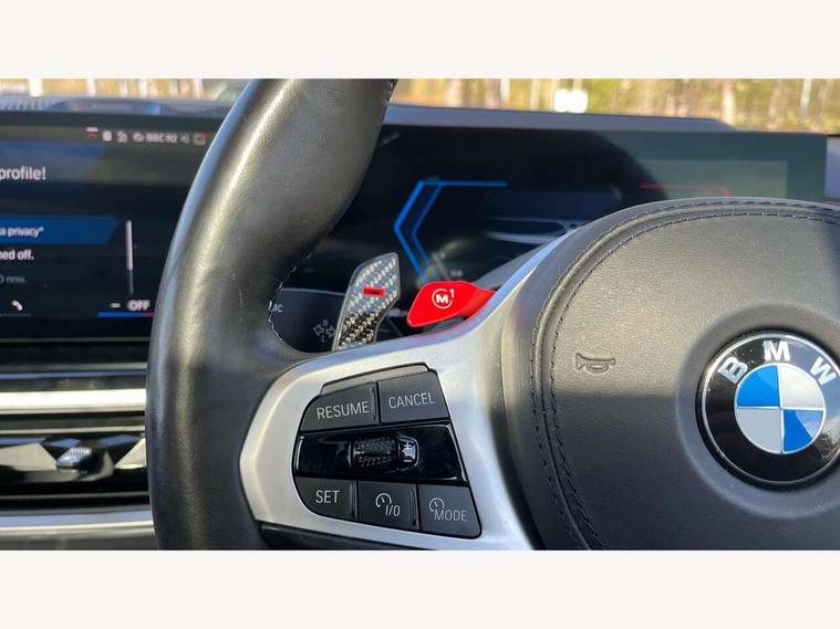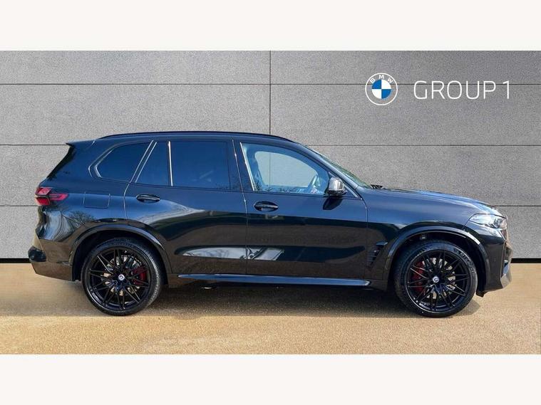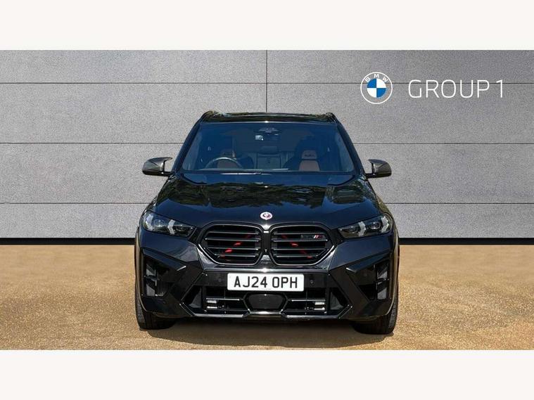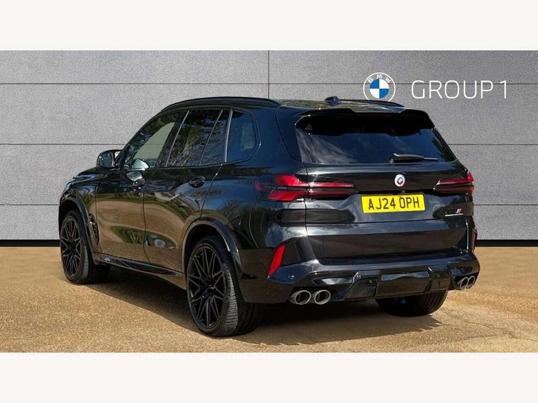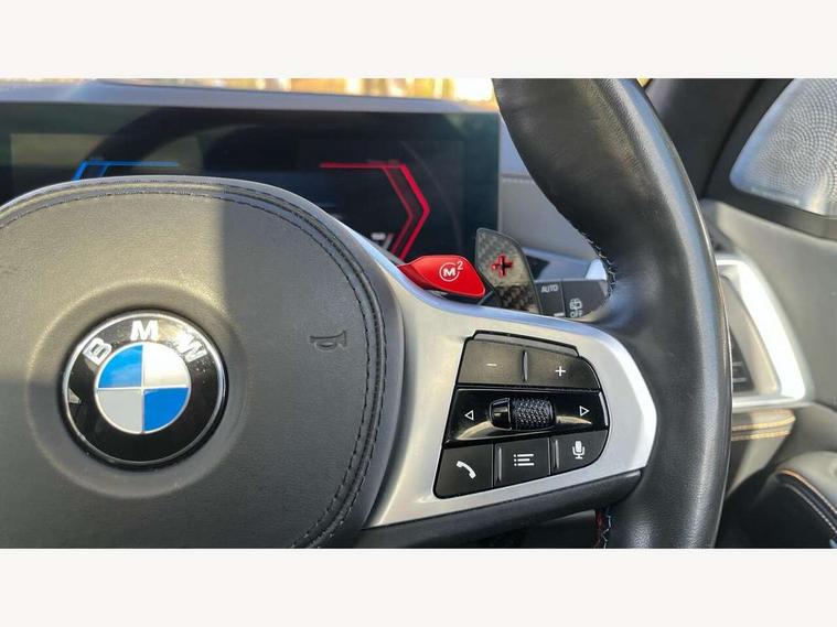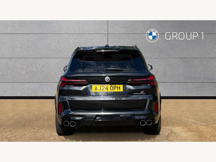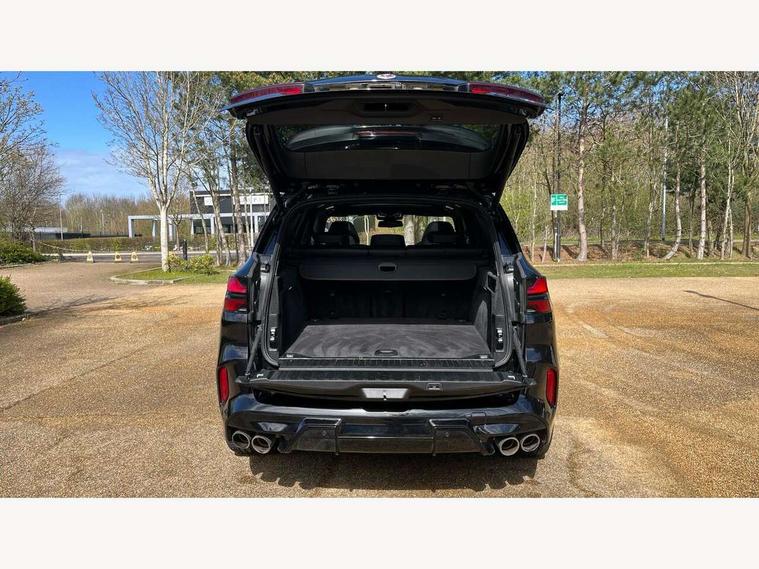 32GB hard disc drive (HDD) memory, Attentiveness assist, Automatic tailgate with seperately opening top hinged section, BMW ConnectedDrive online services, BMW Drive recorder, BMW gesture control, BMW legal emergency call, BMW Live Cockpit Pro with Head up display including 12.3" instrument display and 14.9" high resolution control display with navigation function, BMW Teleservices, Brake force display, Brake pad wear indicator warning light, Condition based service - BMW service history, electronic service booklet, integrated owner's handbook, Electric power steering, Enhanced bluetooth hands free facility with Telephony wireless charging, Front/rear park distance control (PDC), iDrive controller with shortcut buttons, Infinity symbol with line graphic on reset of average consumption, M drive buttons, M servotronic, Oil sensor for level and grade, On board computer inc. average speed, fuel consumption, liquid crystal Info display, journey computer, outside temperature display, personal profile, Parking Assistant Professional, Recovery braking system, Run flat indicator, Service interval indicator, Stop/start button, Storage for wireless charging, Wi-Fi hotspot, 8 speed automatic with steptronic transmission including launch control and gearshift paddles on the steering wheel, Active M differential, BMW M TwinPowerTurbo 8 cylinder petrol engine, Double VANOS, High precision injection, M Adaptive suspension pro, M Sport differential, M xDrive system, Petrol Particulate Filter, Safety battery terminal clamp, Turbocharger with Valvetronic, DAB Tuner enables digital radio reception, Favourite buttons, USB connection, USB type A 1.5A in cupholder, USB Type C 3A in centre armrest, Adaptive LED Headlights, Automatically dimming rear view mirror, BMW Individual high gloss shadow line exterior trim, BMW Individual high gloss shadow line with extended contents, BMW individual lights shadow line, Body color M rear spoiler, Body colour bumpers, Body colour door handles, Body colour roof spoiler, Brake lights illuminate under normal braking, Door locking - after driving off to secure vehicle, Dynamic brake lights with LED technology, Exterior mirror base in black matt, Follow me home headlight function, Front and rear bumper system, Front and rear door sill strips, Front and rear electric windows with open and close fingertip control, anti trap facility and comfort closing, Heated windscreen washer jets, High beam assistant, High gloss black shadow line roof rails, Integrated direction indicators, LED fog lights, LED Rear light with tail light, brake light and turn indicators, LED Reflectors, left and right, integrated in tailgate, M Sport exhaust system, M strake element with model designation, integrated in the Air Breather, M-specific Exterior mirrors, Rain sensor with automatic headlight activation and windscreen wiper control, Rear side wing doors, Rear wiper, Roller shutter, Sun protection glazing, Third brake light in rear spoiler, Trailer stabilisation logic, Under severe vehicle deceleration, Variable intermittent rear wash/wipe, Welcome light carpet, X5 M competition badging on tailgate high gloss black right finished, 12V - Power sockets with 2x centre console and 1x luggage compartment, 3 rear headrests, 3 seat bench in 2nd row, 4 Lashing eyes in boot, 4 zone control automatic air conditioning, 40:20:40 split folding rear seats, BMW ID, Child seat ISOFIX attachment with rear outer seats includes top tether, Compartment in front of cupholder, Driver + front passenger lumbar support, Driver and front passenger seat heating, Electric adjustment of the upper section of the backrest with Illuminated M logo on the head restraint, Electrical steering column with adjustable height and length with activation and control on the steering column, Front and rear cupholders x 2, Front and rear door pockets, Front and rear side armrest integrated into door trim, Front footwell lights, Front reading lights, Gear selector lever and operation, Left and right bag hooks in luggage compartment, Light inside glove compartment, Lockable glove compartment, Luggage compartment floor panel with integral storage tray, Luggage compartment lighting, Luggage net, Lumbar support with height and depth adjustment in backrest, M Electric front sport seats with memory function, M sport leather steering wheel, M steering wheel with gearshift paddle switches made of CFC, Multifunction controls for leather steering wheel, Multifunctional hooks, Seat back with flap pocket, Securing rings in luggage compartment, Single front passenger seat, Storage bins on all doors, Storage space underneath the floor insert in luggage compartment, Storage tray and compartment with cover in centre console, Sunvisors with illuminated vanity mirrors, Toolkit located in luggage compartment, Velour floormats, Ambient light interior pack - X5 M/ X6M, Connected Package Professional - X5 M, Expanded exterior mirror pack - X5 M/X6 M, Active protection, Airbags - driver/front passenger, rear and side, first and second row seats head airbags, front passenger seat airbag deactivation + knee airbag, Anti-lock braking system (ABS), Automatic Stability Control (ASC), Black M sports seatbelts with coloured M seam for all seats, Brake drying, Brake energy regeneration, Brake fade compensation, Braking pre-tensioning, Child proof locking system in rear door, Cornering brake control (CBC), Crash sensor activating central locking release, hazard warning lights, fuel cut off, interior lighting + activation of safety battery terminal clamp, Deformation zones - front and rear with door reinforcements and bumpers up to 2.5 mph, DSC - Dynamic Stability Control, Dynamic brake control, Dynamic Traction Control - DTC, Electromechanical parking brake with automatic drive away release and auto hold function, Electronic brake force distribution, Front and rear brake discs with interior ventilation, Front and rear M seatbelts stopper, seatbelt tensioner for front and outer r