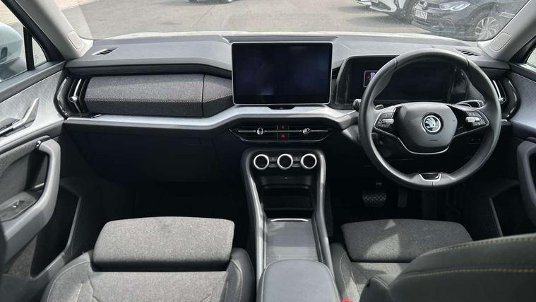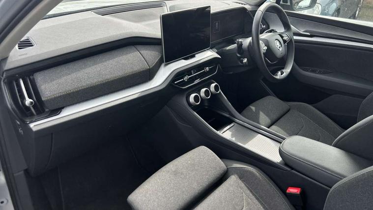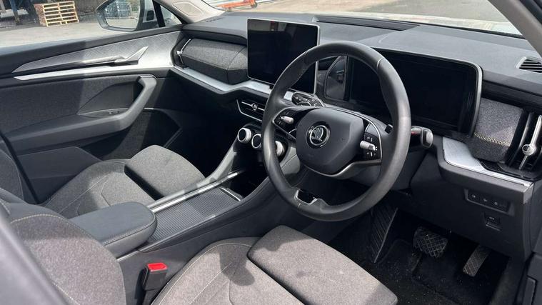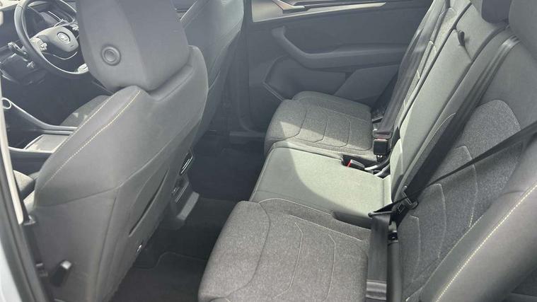 13" satellite navigation touchscreen display, Blind spot detection with door exit warning, Bluetooth system, ChatGPT functionality, Driver alert - Fatigue and drowsiness monitor, Dry display cleaner, Emergency call, Front and rear parking sensors, Front cross traffic assist, Lane assist, PAS, Rear traffic assist, Rear view camera, Tailgate unlocking from outside, Traffic sign recognition, USB C Port x 2 in front centre console, Virtual Cockpit - 10.25" digital display, Voice control system, Wireless charging for two smartphones (15W) with cooling function, Wireless SmartLink for Apple CarPlay and Android Auto, Stop/start function, 2x USB-C in the rear, 8 Speakers, DAB Digital radio, Aero front windscreen wipers with intermittent function, All weather light, Auto dimming rear view mirror, Black wheel arch surrounds, Body colour bumpers, Body colour door mirrors and handles, Cornering light and poor weather light, Electric folding /adjustable/separted heated/folding door mirrors, auto dimming with boarding sports and memory function, Electric front and rear windows, Exterior black decorative trims, Heat insulating glass in windshield, Heated rear window, Ice scraper in fuel tank cap, Invisible tailpipe, LED daytime running lights, LED front fog lamps, LED Headlights, LED rear fog light, LED rear lights, LED third brake light in rear spoiler, Light assistant with automatic headlight control and coming home feature, Logo projection in door mirrors, Rear roof spoiler, Rear side wing doors, Rear window wiper, Safety reflectors on front and rear doors, Unique dark chrome design logo on alloy wheels, Window control switches with black trim, Windscreen wipers with rain sensor, Without engine designation, 1.5l bottle holder points in all door, 1x centre rear reading light, 2 seat bench in 3rd row, 3 configurable smart dials with 32mm coloured display, 3 seat bench in 2nd row, 4 foldable roof handles with rear coat hooks, Ambient interior lighting - Dashboard, front-door stowage compartments, front and rear door panels and footwell lighting, Automatic gear selector on steering column, Chrome interior door handles, Driver/front passenger reading lights, Fabric headlining, Fixed bench 40:60:40 split folding backrests, Front and rear floor mats, Front centre armrest with jumbo box storage compartment, cup holder and 12V socket, Height adjustable front headrests, Isofix child seat fittings in outer middle row rear seats and front passenger with top tether, Manual height adjustment for front passenger seats and thigh support extender, Manual lumbar support for front passenger seat, Manually adjustable steering column, Pollen filter, Rear centre armrest with cupholders, Rear seat boot backrest release, Single front passenger seat, Skoda lettering on steering wheel, Storage pocket including mobile phone pockets on the backs of the front seats, Sunvisors with illuminated vanity mirrors, Three rear height adjustable headrests, Ticket holder on A Pillar, Tri zone climate control, Umbrella in door panel x1 made from sustainable materials, Upper and lower glovebox with card holder and coin compartment, USB C port by rear view mirror for charging only (15W), Variable boot floor, Auto door release and activation of warning lights in the event of an accident, Driver and front passenger airbag with knee airbag and front passenger airbag deactivation, Electric child locks, Electronic parking brake, ESC (incl. ABS+EMD+MSR+ASR+EDL+HBA+DSR+RBS+ESBS+MCB+TSA+XDS), Front assist with braking reaction to vehicles, pedestrians and cyclists, Front disc brakes, Fuel cut off safety device, Height adjustable front 3 point seatbelts + pretensioners, Hill hold assist, Junction assist with automatic emergency braking, Rear disc brakes, Safety vest holder in door, Seat belt reminder for all seats, Three point rear seat belts, Two tone horn, Tyre pressure monitor, Alarm with interior monitoring and tilt sensor with safe function, Anti-theft wheel bolts, Immobiliser, Remote central locking with 2 keys, Breakdown kit, Tool kit,