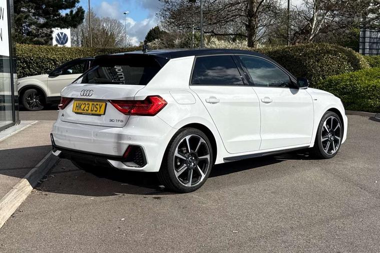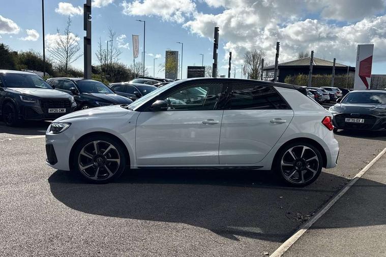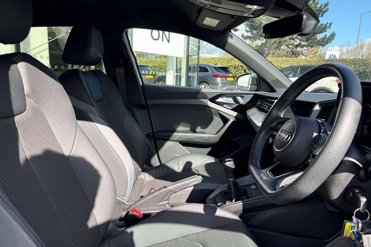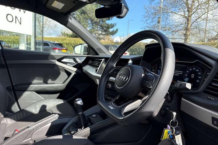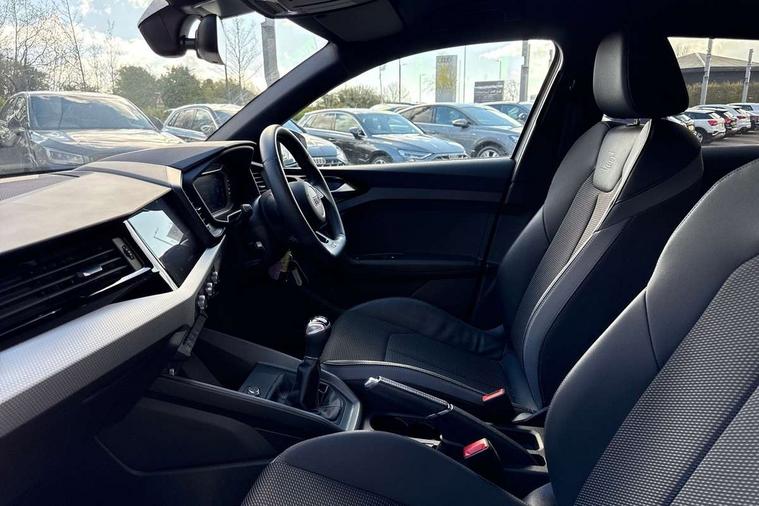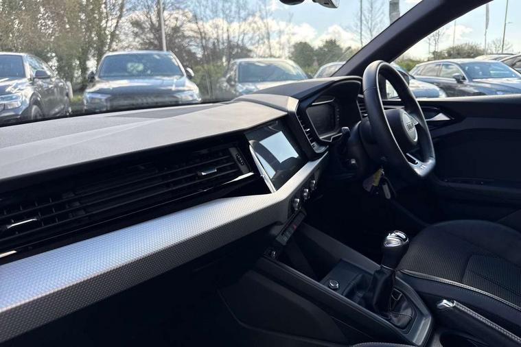 10.25" Digital instrument cluster display classis style instrument dials + speed, odometer, time, outside temperature, telephone menu + fuel level warning, Audi drive select - power steering assistance + engine, Audi smartphone interface with connect compatible smartphone via USB directly MMI display + Nav, music, third party apps controlled via MMI controller, Automatic start/stop system, Bluetooth interface, Cruise control, Driver's information system, Electromechanical power steering, Emergency e-call, Lane departure warning system, Rear parking sensor, Service interval indicator, Speed limiter, Voice control system, Washer fluid level indicator, Sports suspension, 2 x USB type C connection points, 6 passive loudspeakers, DAB Digital radio, MMI radio plus with 10.1" colour MMI display screen and MMI touch, Auto dimming rear view mirror, Black side skirts, Body coloured bumpers, Door sill trims with aluminium inlays and logo, Electric front and rear windows, Electrically adjustable, heated, folding door mirrors with integrated LED side indicator, Front side air inlets in grained matt black and C frame in anthracite black, Front wing badges, Heat insulating glass windscreen and side windows, Heated rear windscreen, High level LED brake light, LED headlights with LED rear lights + dynamic rear indicators + headlight adjustment and high beam, turning light + LED daytime running lights, Privacy glass, Rain and light sensors, Rear fog lights, Rear side wing doors, Rear wiper, Side front spoiler lips in grained matt black, 12V socket in centre console with two cup holders, 3 rear seats with headrests, 3 seat bench in 2nd row, 3 spoke flat bottomed multi-function plus leather steering wheel with S badging, grips in preforated leather and contrast stitching, 40:60 Split folding rear seat or folded fully, Black cloth headlining, Driver and passenger seat with manual height adjust with forward and backwards adjustment, Front and rear black floor mats with contrast stitching in fine silver, Front head restraints, Front passenger seat, Height and reach adjustable steering wheel, ISOFIX child seat mounting for front passenger and outer rear seats including top tether attachment point of outer rear seats, Leather gear knob with aluminium trim, Leatherette handbrake grip, Luggage compartment light with front and rear reading lights, Manual air conditioning, Manually adjustable lumbar support in front seats, Stainless steel pedals, Black styling pack - A1 Sportback Black Edition, LED interior lighting pack - A1, Luggage compartment pack - A1, 3x3 point rear seatbelts, Audi pre-sense front with pedestrain and cyclist recognition, Brake assist function, Driver and front passenger airbag with front side and head airbags, Electronic Stability Control including ABS, EBD, ASR and EDL, Front passenger airbag deactivation switch, Hill hold assist, Manual rear child locks, Seatbelt height adjustment for front seats, Seatbelt monitoring, Tyre pressure warning light, Warning triangle and first aid kit, Anti theft alarm, Anti theft wheel bolts and loose wheel warning, Immobiliser, Remote central locking with 2 foldaway keys, Aluminium trim for control switches, air vents and digital instrument cluster, Black dashboard, Silver grey inlays polygon structure in diamond paint finish, Structured grey accent areas including air vents, door handle recesses and centre console in quartz paint finish,