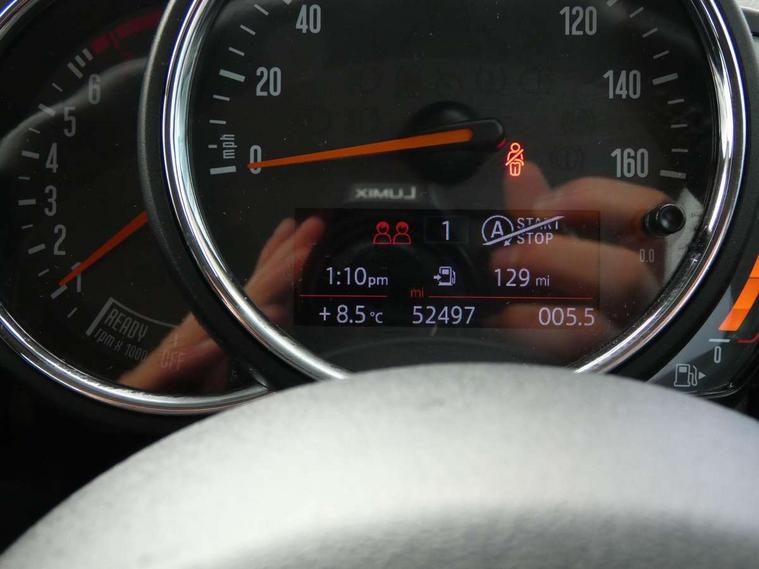 Acoustic seat-belt warning, Basic bluetooth function with USB audio, Brake fluid level warning light, Brake pad wear indicator warning light, DTC - Dynamic traction control, Exterior temperature gauge, Intelligent emergency call, MINI TeleServices, Oil level indicator, On board computer, Push button starter, Service interval indicator, Servotronic PAS, Electronic differential lock, Auxiliary input socket, DAB digital radio module, 2 speed wipers+intermittent wipe, Anti dazzle mirror, Anti trapping/one touch open close front windows, Black tailgate handle, Body colour roof, Body coloured bumpers, Chrome bezels around rear lights and headlights, Chrome door handles, Chrome exhaust tailpipe, Chrome grille surround, Chrome plated trim on bottom edge of window, Chrome strip on lower grille, Electric front windows, Electric rear windows, Electrically adjustable door mirrors, Flared wheel arches, Follow me home headlights, Green tinted heat insulating glass, Heated door mirrors/heated windscreen washers, Heated rear window with auto timer, LED fog lights, LED rear lights, Rear wiper, Roof spoiler in roof colour, Side scuttles, White indicator lights, 2 rear head restraints, 4 boot load lashing points, 4 way manually adjustable passenger seat with height, reach, tilt, backrest and headrest, 6-way manually adjustable driver's seat, Active carbon filter, Adjustable front seats backrest, Air recirculation system, Auxiliary socket in centre console storage compartment, Centre console storage, Driver's seat height adjuster, Driver/passenger sunvisors, Easy entry seats, Front and rear cupholders, Front head restraints, Front passenger grab handle, Gear/selector and handbrake in artificial leather, Internal chrome door handles, Isofix child seat preparation, Luggage compartment lighting, Multifunction steering wheel, Reach + rake adjustable steering column, Rear grab handles, Rear storage trays, Split folding rear seats, Storage compartments in doors, Toolkit in luggage compartment, 3 point seatbelts, 3x3 point rear seatbelts, ABS/EBD, ASC+T, Cornering brake control (CBC), Crash Sensor - activates hazard/interior lighting + unlocks doors, Driver and passenger airbags, Driver/front passenger side airbags, DSC - Dynamic Stability Control, Fuel cut off safety device, Head airbags, Hill start assist, Manual passenger airbag deactivation function, Seatbelt pretensioners, Tyre pressure warning, Ventilated front disc brakes, Drive away door locking, Remote central locking/doors+fuel cap+tailgate, Second remote key, Thatcham category 1 alarm + immobiliser,