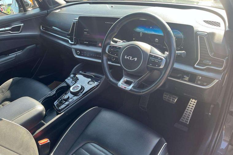 12.3" Display with navigation, 12.3" supervision colour cluster display, 360 degree around view monitor, Apple car play/Android Auto with voice control, Blind spot collision avoidance assist, Blind spot view monitor, Drive mode selector, E-call, Forward collision avoidance assist (FCA) - city/pedestrian/cyclist/junction covering, Front and rear parking sensors, Highway Driving Assist (HDA), Intelligent speed limit assist, Kia Connect (UVO), Lane Following Assist (LFA), Lane keep assist, Low washer fluid warning, Parking collision avoidance assist (PCA), Remote smart parking assist, Reversing camera system integrated into centre fascia screen, Smart cruise control with stop and go functionality, Smart power tailgate, Speed sensitive power steering, Trip computer, Windscreen washer level indicator, Wireless Smartphone charger, Intelligent Stop and Go, Bluetooth audio streaming, DAB Radio with MP3, Harman Kardon premium sound system, Rear USB port, Steering wheel mounted audio controls, USB C type charging ports on centre console, USB C type charging ports on side of front seats, USB port for connection of a media device, All round electric windows with drivers and front passenger auto up/down function, Automatic headlight control system, Automatic window defogger, Backlite glass heated with timer, Body colour and black bumper with silver accents, Body colour exterior door handles, Body colour radiator upper garnish and door garnish, Dual LED adaptive headlamps, Electric panoramic glass sunroof (Electric one touch with safety function), Electrically adjustable/heated/folding door mirrors with LED indicators, Front and rear chrome skid plates, Gloss black door mirrors, Gloss black radiator grille, Gloss black side sill and wheel arch body mouldings, Glossy black roof rack, High beam assist, Interior electrochromic mirror, LED daytime running lights, LED front fog lamps, LED High mounted stop light, LED rear combination lamp, Rain sensing wipers with aero blades, Rear fog lamp, Rear privacy glass, Rear side wing doors, Rear spoiler, Rear wiper, Satin finished beltline, Silver coloured inserts to bumpers, Tinted rear glass, Trailer stability assist, 10 way driver/8 way passenger electrically power adjustable seats, 12V power socket in front centre fascia and luggage compartment, 3 seat bench in 2nd row, 3 x passenger assist grips, 40/20/40 split folding rear seat, All-round height adjustable headrests, Ambient lighting, Black headlining, Centre console storage box, Cupholders in rear armrest, D-Shaped sports leather steering wheel and perforated inserts with GT-Line logo, Door courtesy lamps, Drink holder at centre armrest, Driver and front passenger side sunvisors with illuminated vanity mirrors, Driver seat memory function, Drivers seat power lumbar support, Front and rear door storage, Front seat and rear pockets, Front/rear centre armrests, Gear shift indicator, Glovebox illumination, Heated front and outer rear seats, Heated steering wheel, Interior door lock/unlock function, ISOFIX Child seat top tethers and anchor fixings outer rear seats, LED interior personal lamp, LED lighting in overhead console, Luggage area LED light, Luggage area load cover, Luggage net with hooks, Metal paint interior door handles, Paddle shift controls, Rear cabin light, Rear coat hooks, Single front passenger seat, Sports pedals, Suede leather upholstery, Three zone climate control, Tilt/telescopic adjustable steering wheel, Ventilated front seats, Ventilation ducts to rear compartment, Active front headrests, All round 3-point seatbelts, Anti-lock braking system (ABS), Dual front side airbags, Dual horn, Electronic parking brake, Electronic stability control with downhill brake control, Front passenger airbag cut-off switch, Front seatbelt pretensioners + load limiters, Height adjustable front seatbelts, Hill start assist control (HAC), Impact sensing auto door unlocking, Multi collision brake assist, Rear door child safety locks, Rear seat alert system, Traction control, Twin curtain airbags, Twin front airbags, Tyre pressure monitoring system, Advanced anti-theft system including immobiliser and alarm, Door deadlocks, Engine Start/Stop Button with Smart Entry System, Locking wheel nuts, Speed sensitive auto door locking, Visible vehicle identification number, Aluminium pattern finish centre fascia and door garnish, 18" GT-Line alloy wheels, Michelin tyres, Tyre mobility kit,
