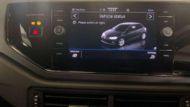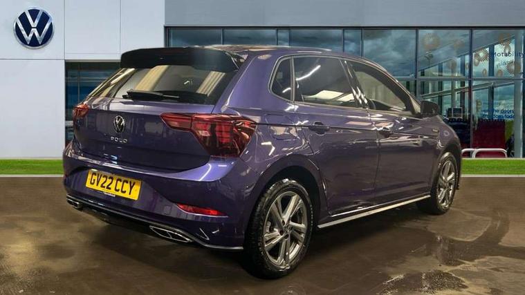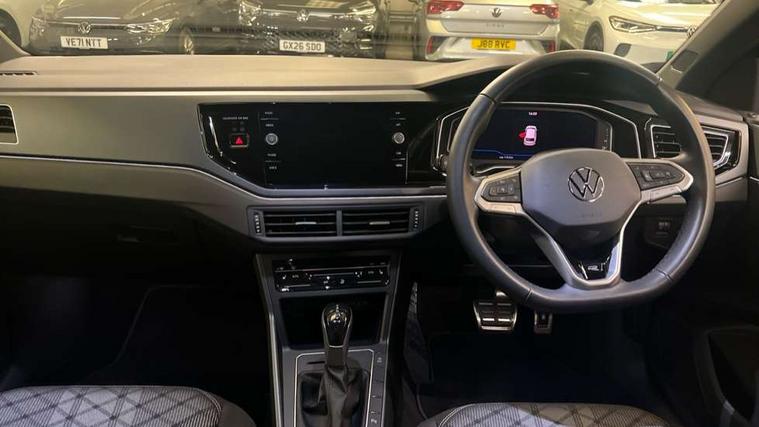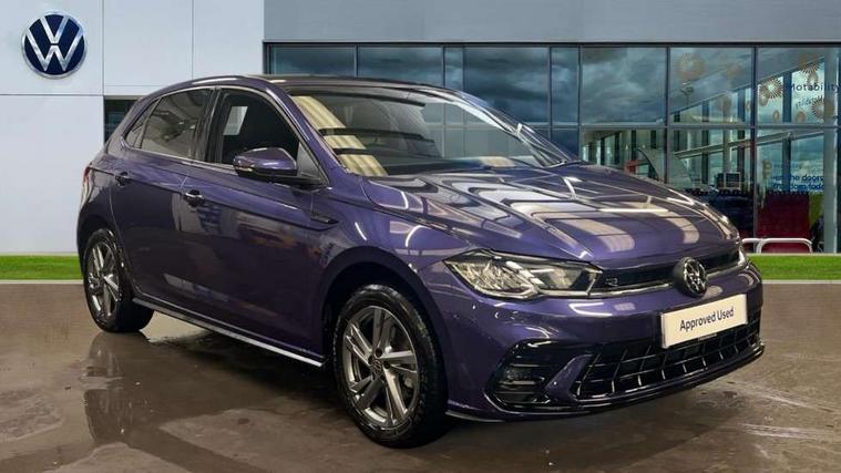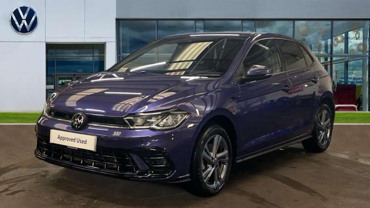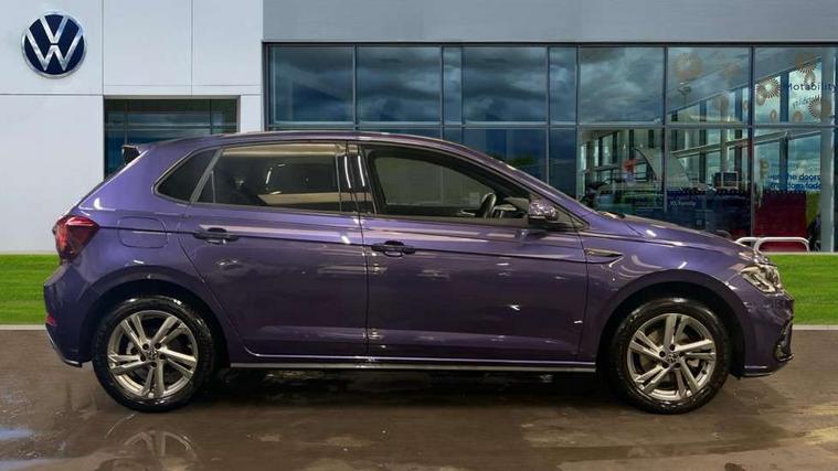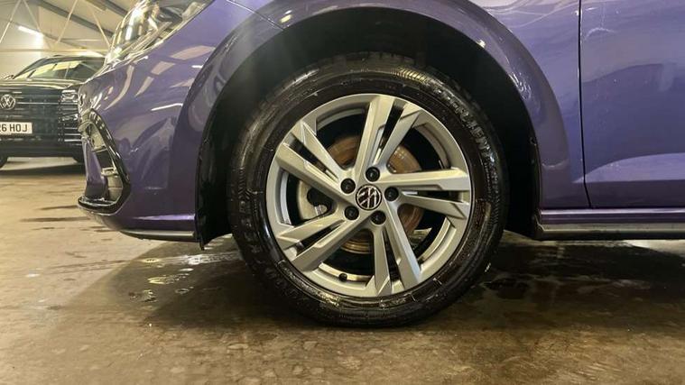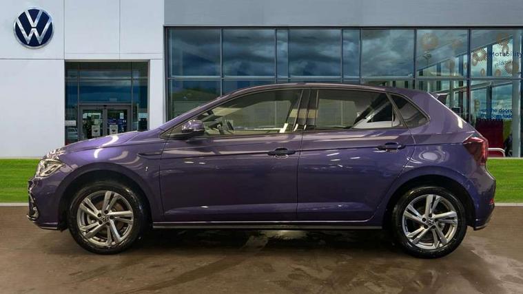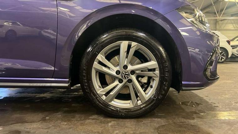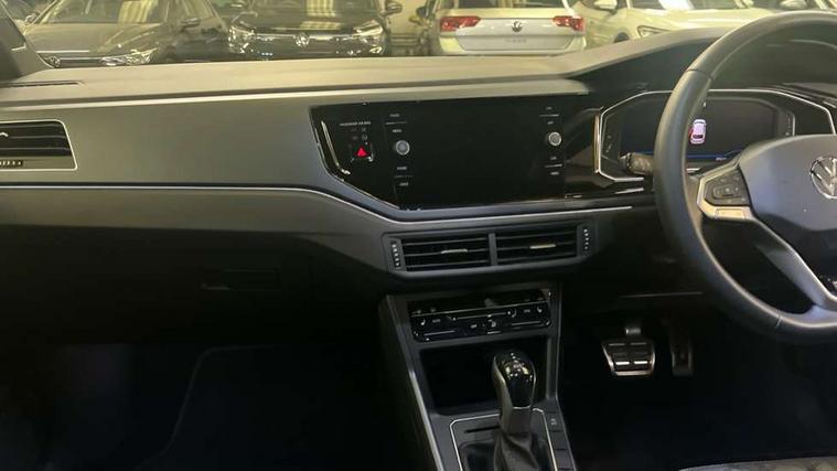 Adaptive cruise control with follow-to-stop and speed limiter, Bluetooth mobile phone interface, Digital Cockpit Pro with 10.25" Display, Driver alert system, Dynamic road sign display, Emergency call service, Power assisted speed sensitive steering, Preparation for We connect and We connect plus, Speedo and rev counter, electronic odometer, trip, service interval display and fuel gauge, Standard rear axle, Travel Assist - Lane keeping system and traffic jam assist, Travel assist including emergency assist, Trip computer, Warning signal and warning light for front and rear seatbelts not fastened, Washer fluid level indicator, Wireless app connect, Front wheel drive, Rear shock absorpion, Start-stop system with battery regeneration (recuperation - energy recovery during braking), DAB Digital radio, Diversity antenna for FM reception, Front and rear 6 speakers, Body colour bumpers, Body colour door handles, Body colour door mirrors, Electric front windows, Front scuff plates with R-Line logo, Heat insulating darkened glass in side and rear windows, Heat insulating glass windscreen, Power folding adjustable/heated exterior mirrors and front passenger exterior mirror lowering function, Rear electric windows, Rear fog light, Rear side wing doors, Rear tinted glass from B-pillar backwards approx 65% tinted, Rear windscreen washer and wiper with interval delay, Third brake light, 12V power socket in centre console, 2 USB-C ports in the front, 2 USB-C charging sockets on the center console in the rear, 3 rear head restraints, 60/40 split folding rear seat and rear seat bench not split, Air care climatronic air conditoning system with active combination filter and 2-zone temperature control, Black roof lining, Ceramique headliner, Chrome plated radiator grille inserts, air vent surrounds and light switch surrounds, Door and side trim panel, Driver and front passenger seat height adjustment, Driver/passenger sunvisors with illuminated vanity mirrors, Front + rear carpet mats, Front centre armrest, Front footwell illumination, Front seat backrest storage pockets, Front sports comfort seats, Handbrake lever handle in leather, Isofix child seat preparation easy-fit (for two outer rear seats, and front passenger seat) compatible with I-size, Karoso artvelours cloth upholstery, Leather trimmed gear knob, LED interior light with switch off delay and dimmer, 2 reading lights front and rear, Luggage compartment cover, Luggage compartment floor, Luggage compartment lighting, Lumbar adjustment for front seats, Single front passenger seat, Stainless steel pedals, Standard pedal cluster, Three spoke leather wrapped multifunction steering wheel with shifting paddles, Light and sight pack - Polo R-Line/Black Edition, 3 point height adj front seatbelts + pretensioners, 3x3 point rear seatbelts, ABS, Driver and front passenger airbag with front passenger airbag deactivation, Drivers and front passengers safety optimised head restraints, ESC (Electronic stability control) + EDL (Electronic Differntial lock) and ASR (Traction control), Extended and predictive pedestrian/ cyclist protection, Front curtain and side airbags with center airbag, Front/rear disc brakes, Hill hold control, Manual child lock in rear doors, Single tone horn, Tyre pressure loss indicator, Alarm with interior protection, Anti-theft alarm system with interior monitoring, backup horn, and towing protection, Anti-theft wheel bolts, Electronic engine immobiliser, Chrome applications on rotary light, mirror adjustment, window regulator switches, outlet with frame in black, Dark grey anodised matt decorative inserts in dash and front door panels, Low rolling resistance tyres,