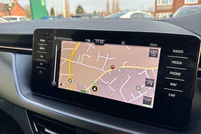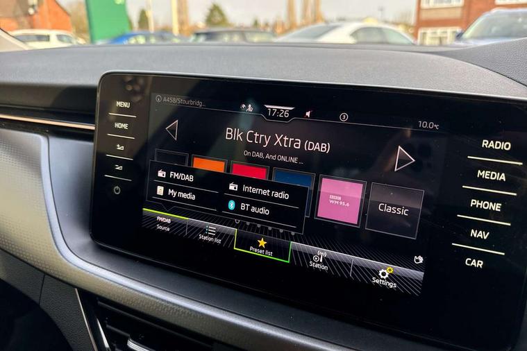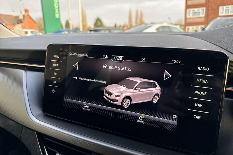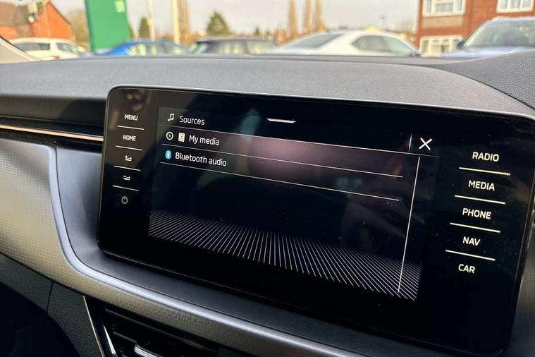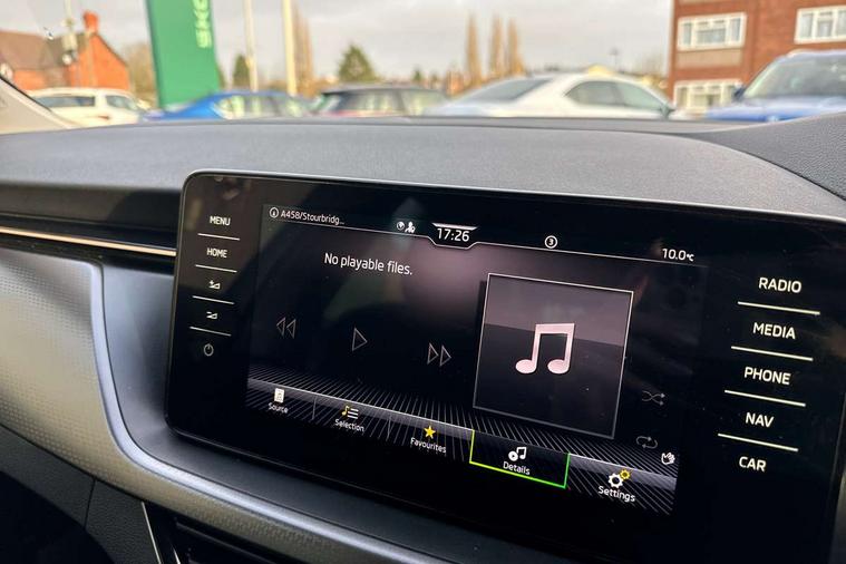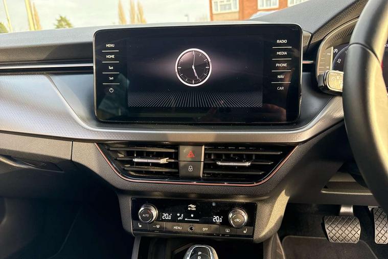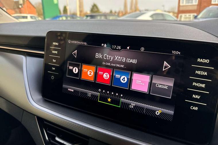 Amundsen satellite navigation with 9.2" glass colour touchscreen display, web radio, voice control and traffic sign recognition, Bluetooth system, E-call, Front assist system, Gesture control, PAS, Rear view camera, Service indicator, Speed limiter, Wireless SmartLink for apple car play, android auto and mirrorlink, 8 Speakers, Auxiliary input socket, DAB Digital radio, Body colour bumpers, Body colour door mirrors and handles, Chrome grille surround, Dimming rear view mirror with black surround, Electric folding door mirrors, Electrically adjustable and heated door mirrors, Front and rear electric windows, Headlight range control, Heated rear window, LED rear lights with dynamic indicators, LED third brake light, Light sensors, Privacy glass, Rain sensor, Rear fog lights, Rear side wing doors, Rear wiper, 12V Accessory socket in centre console, 3 seat bench in 2nd row, Chrome inner door handles, Dual zone climate control, Front head restraints, Glove compartment with illumination, Ice scraper, Isofix child seat fittings on outer rear seats, ISOFIX on front passenger seat, Manual lumbar support for front seats, Rake/reach adjustable steering wheel, Reading lights, Single front passenger seat, Sun visors with illumination on front passenger, Textile floor mats, Third rear headrest, Top tether for front passenger seat, Umbrella in driver's door, 3x3 point rear seatbelts, Airbags - driver and front passenger, ESP, Front passenger airbag deactivation switch, Front side airbags with curtain airbags, Hill hold control, Manual parking brake, Manual rear child locks, One tone horn, Rear disc brakes, Seatbelt reminder for driver an co-driver, Traction control, Tyre pressure monitor, Anti-theft alarm system with interior monitoring, backup horn, towing protection and remote central locking with SAFE system, Anti-theft wheel bolts, Electronic engine immobilizer, Latice curved decorative insert on the dashboard with hot stamping in copper and white ambient lighting white,