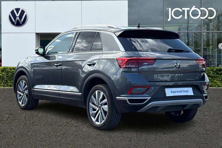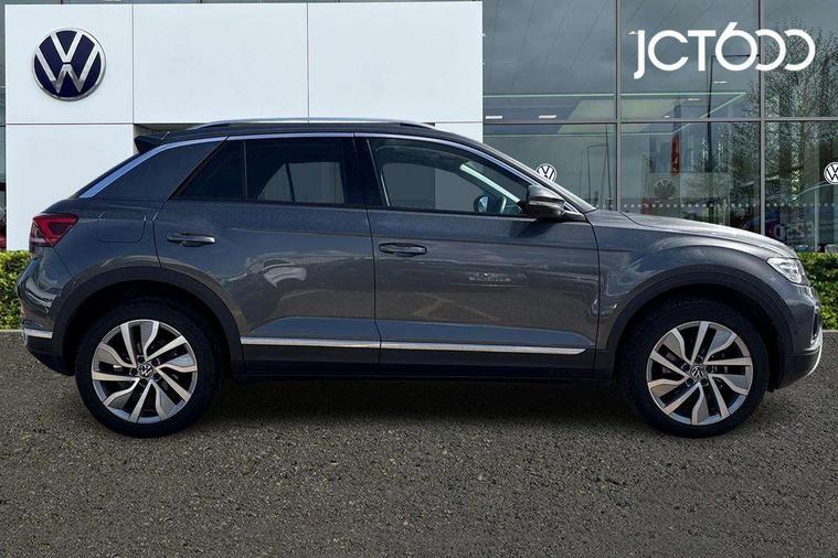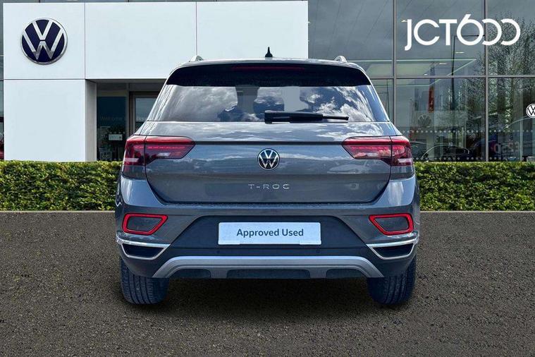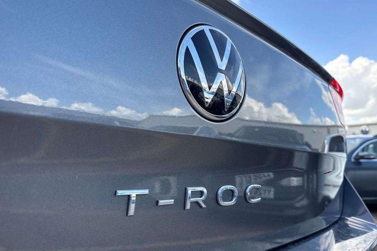 10.25" Digital cockpit pro, Advanced driver attention and drowsiness monitor, Emergency call service, Lane keeping system Lane Assist, Mobile phone interface, Modified key software - reduce switch off time for key status change to Long no motion, Online services, Park assist including front and rear parking sensors, Power assisted speed sensitive steering, Service interval indicator, Tailgate/trunk lid release from outside, Think blue trainer driver tips and journey analysis, Warning sound and light for front seatbelts unfastened, Wireless app connect, Wireless Smartphone charger, Battery regeneration during braking, Start/stop function with battery regeneration, DAB Digital radio, Diversity antenna for FM reception, Front and rear 6 speakers, Music playback - MP3, WMA and AAC files, Premium USB cable in choice of either Apple or Android smartphone compatibility, SD card slot, Simultaneous pairing of 2 compatible mobile devices, Title and cover art display, We Connect and We Connect Plus functionality, Auto dimming interior rear view mirror, Automatic hazard lights activation under emergency braking, Automatic headlight control with LED separate daytime running lights with coming/leaving home function, Body colour sports bumpers with silver metallic underbody fascia, Dynamic headlight range control with self adjusting whilst driving, Electrically adjustable and heated door mirrors, Extended roof spoiler, Exterior mirrors aspherical on driver side, convex on front passenger side, External USB type C socket and charging sockets, Front windscreen wiper with intermittent wipe and 4 position delay, Heated rear window, LED 3rd brake light, LED rear combination lamps, LED rear number plate lights, Light mode for poor weather, rain, fog or snow, Power windows with comfort operation and circuit breaker, Rain sensor, Rear exhaust tailpipe, Rear fog light on one side and reversing lights on both sides, Rear side wing doors, Rear wash/wipe with intermittent wipe setting, Remote electrically foldable door mirrors, puddle lights and reverse activated passenger's door mirror, 12V power socket in centre console, 3 rear head restraints, 3 seat bench in 2nd row, 4 load lashing points in luggage compartment, Air care climatronic air conditoning system with active combination filter and 2-zone temperature control, Chrome plated radiator grille inserts, air vent surrounds and light switch surrounds, Door and side trim panel with leatherette insert, Drawer under drivers seat, Front + rear carpet mats, Front centre armrest, Front comfort sports seats, Front cupholders x 2, Front footwell illumination, Front seat back storage pockets, Glove compartment door with light, Instrument lighting, white adjustable panel illumination, Interior ambient lighting and surround lighting, Interior light delay, Isofix child seat preparation, Leather gearshift handle, LED interior light with switch off delay/dimmer and 2 front/rear LED reading lights, Load-through provision with cup holder when folded down ('Unsplit rear seat bench, split folding backrest, with centre armrest), Luggage compartment lighting, Non-folding front passenger seat backrest, Single front passenger seat, Storage compartment in left and right luggage area, Storage compartment in rear doors, Storage compartments in driver and front passenger doors, Sunvisors with illuminated vanity mirrors, Variable boot floor, height adjustable and removable, Driver assistance pack without proactive passenger protection - T-Roc, 3 point height adj front seatbelts + pretensioners, 3 point seatbelts in outer rear with ECE label, ABS, Child locks on rear doors, City emergency braking and pedestrian monitoring, Driver and front passenger airbag with front passenger airbag deactivation, Driver and front passenger safety-optimised head restraints, Drivers seatbelt reminder, Electronic parking brake, Electronic Stability Control (ESC) inc EDL (Electronic Differential Lock) and ASR (Traction Control), Front and rear passengers curtain airbag system including front side airbags, Predictive pedestrian protection, Rear disc brakes, Two tone horn, Tyre pressure loss indicator, Volkswagen roadside assistance, Trims for alloy wheels,