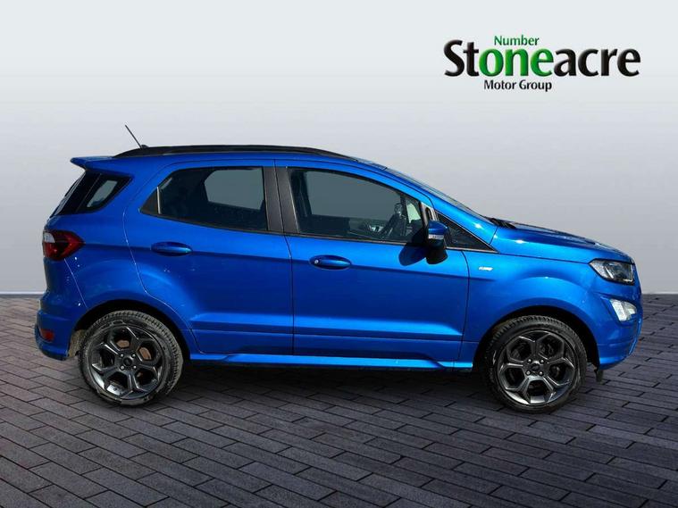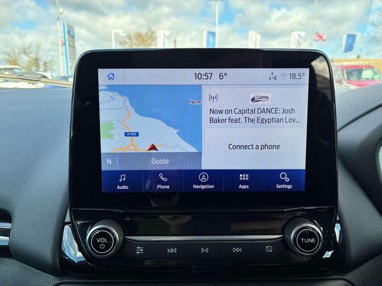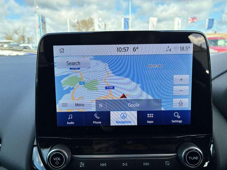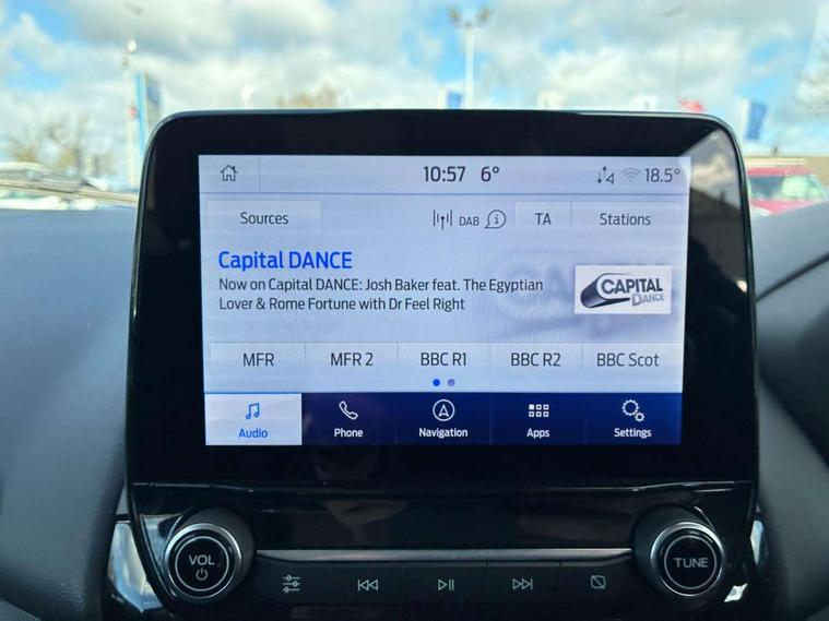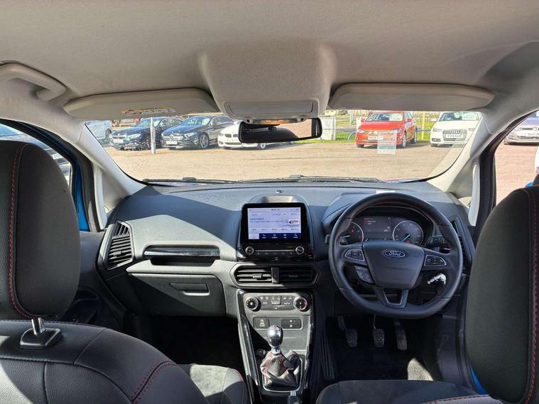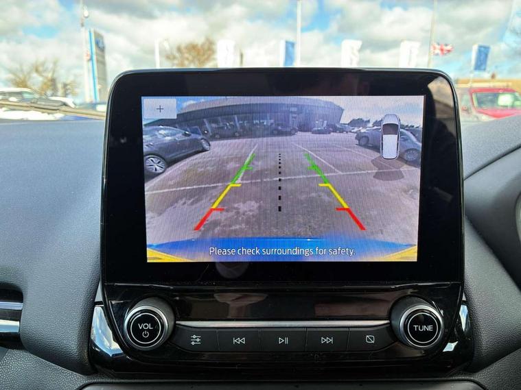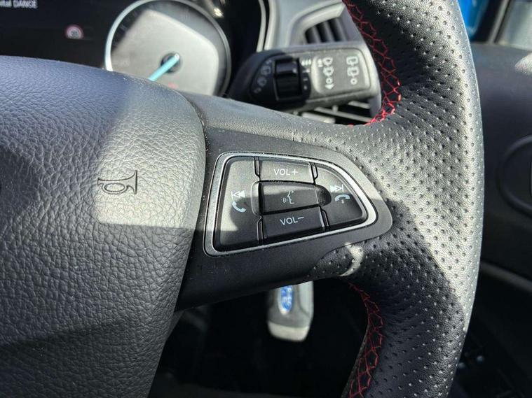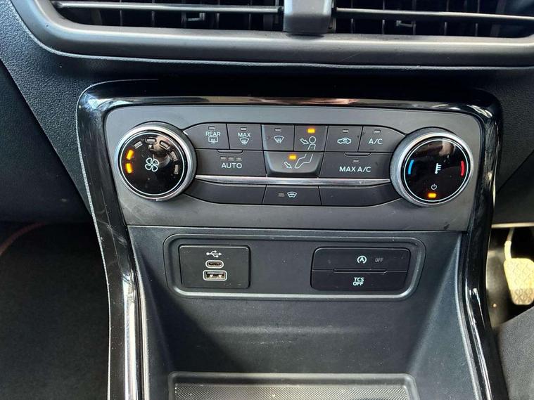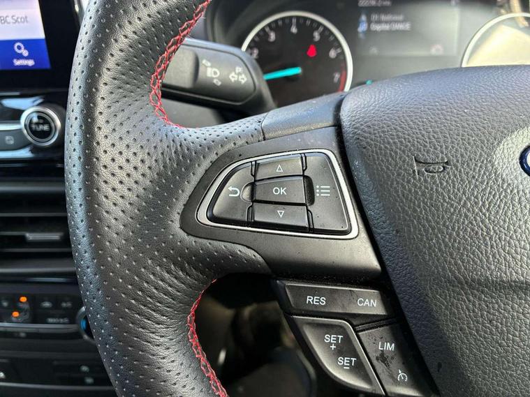 Cruise control, e-Call (emergency call), Easy fuel capless refuelling system, Ford SYNC 3 nav system with DAB radio, 8" screen, emergency assistance, Apple car play/Android auto, 2x USB, 6 speakers, Ford pass connect, Intelligent speed limiter, PAS, Rear parking sensors, Rear view camera, Traffic sign recognition, Trip computer, Sports suspension, Steering wheel mounted audio controls, Auto dimming rear view mirror, Automatic front wipers, Automatic headlights, Black roof rails, Body colour door handles, Body coloured bumpers, Chrome lower window surround, Electrically adjustable and heated door mirrors, Front fog lights, Front grille bars and surround in black, Headlight levelling control, Large rear roof spoiler, LED day running lights, LED third brake light, Power front and rear windows, Puddle lights, Quick-clear heated windscreen, Rear side wing doors, Rear wiper, ST Line body styling kit - Black headlamp bezel, front and rear sport bumpers, body colour lower door claddings, 12V socket in front and rear, 3 seat bench in 2nd row, 60/40 split rear seats, Ambient lighting, Centre console with sliding front armrest, Cooled glovebox, Courtesy lights with map reading light, Driver seat height/lumbar adjust, Driver's side glovebox, Driver/passenger sunvisors and lidded vanity mirrors, EATC - Electronic Auto Temperature control, Folding grab handles, Front head restraints, Front seat back map pockets, Illuminated glovebox, Illuminated luggage compartment, Isofix system on outer rear seats, Luggage compartment carpet, Neosuede/Partial sensico leather upholstery, Overhead console with sunglasses holder, Rake adjustable rear seats, Reach + rake adjustable steering column, Rear headrests, Sensico trimmed steering wheel, handbrake and gearshift gaiter with red stitching, Single front passenger seat, ST-Line Front floor mats with red stitching, Stainless steel sports pedals, Storage drawers under front seats, Tie down hooks, Variable boot floor, 3x3 point rear seatbelts, ABS, Autonomous emergency braking, Child locks on rear doors, Curtain airbags, Driver airbag, Drivers knee airbag, Electronic Stability Programme with hill launch assist, Front passenger airbag deactivation, Front side airbags, Passenger airbag, Pre collision assist system with AEB, Seatbelt reminder for driver and front passenger, Traction control, Tyre pressure monitoring system, Immobiliser, MyKey system, Remote central locking, Thatcham 1 volume sensing alarm, Low rolling resistance tyres, Tyre inflation kit,