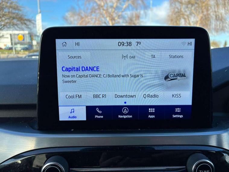 12.3" digital colour instrument cluster, Ford easy fuel, Ford SYNC 3 with 8" TFT LCD touchscreen, App Link, andriod auto/apple carPlay, emergency assistance and navigation with Ford pass connect, Front and rear parking sensors, Hands free power tailgate, Lane keeping aid with lane departure warning, Power assist steering, Rear view camera, Selectable drive modes, Service interval indicator, Standard suspension, B&O premium audio system with 10 speakers and subwoofer, 2 USB ports, DAB radio/CD, Auto dimming rear view mirror, Auto headlamps with high and low beam, Auto wipers, Front LED fog lamps, LED daytime running lights, LED rear lights, Power folding heated door mirrors with puddle lights, Power front/rear windows with global close, Privacy glass, Quickclear heated windscreen, Rear spoiler, Silver roof rails, Third brake light, Twin exhausts, 10 way power adjustable drivers seat, 2nd row sliding seats with 60:40 split, 8 way manual passenger seat including lumbar support and height adjust, Ambient lighting, Centre console with electronic parking brake, Dual electronic automatic temperature control, Front and rear floor mats, Front and rear head restraints, Partial premium touch sensico leather upholstery with black cloth inserts, Rear charging point, Sports seats, 3x3 point rear seatbelts, Airbags - front driver/passenger, front and rear curtain, Drivers knee airbag, Electronic stability control (ESC) and ABS, Ford MyKey Gen 2 safety system, Manual child proof rear door locks, Post collision braking, Pre collision assist with autonomous emergency braking, Rear seat Occupancy alert, Tyre pressure monitoring system, Engine immobiliser, Keyless entry and Ford power start button (Keyless start), Locking wheel nuts, Remote powered central double locking doors, Thatcham category 1 alarm,