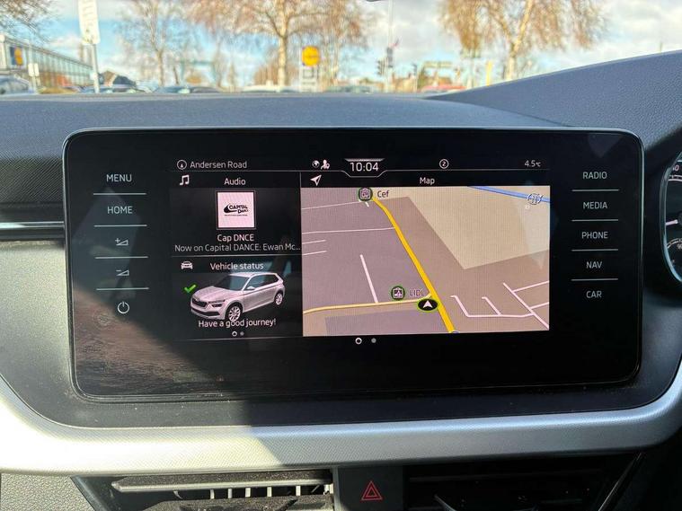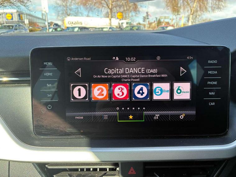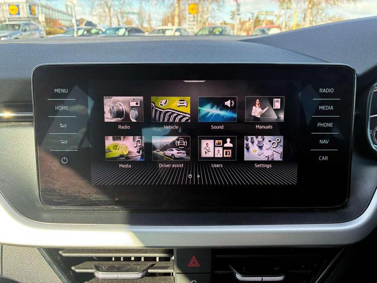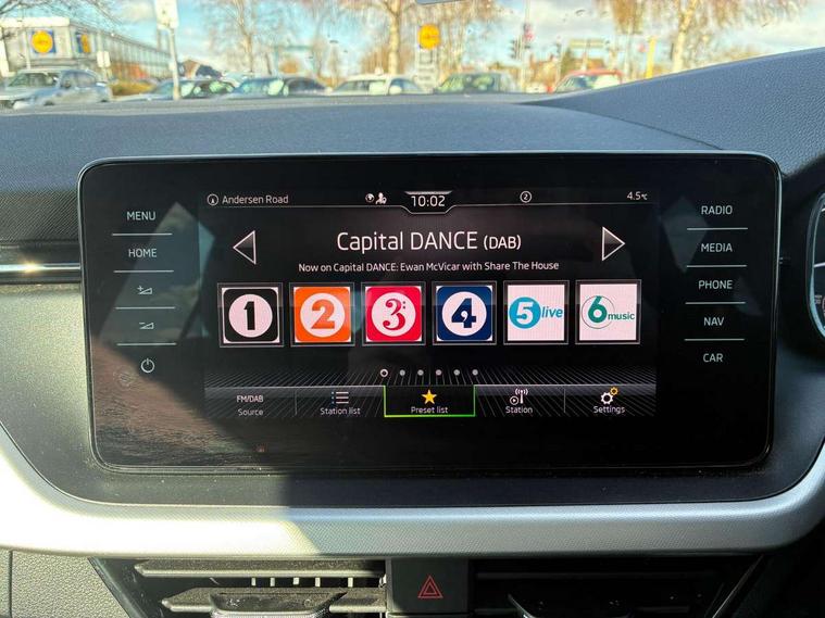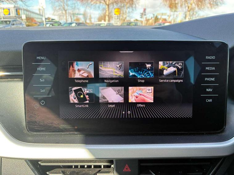 Amundsen satellite navigation with 9.2" touchscreen display, web radio and voice control, Bluetooth system, E-call, Front assist system, Gesture control, Lane assist, PAS, Service indicator, Speed limiter, Trip computer, Wireless SmartLink for apple car play, android auto and mirrorlink, 2 USB - C ports with 1x adaptor cable, 8 Speakers, Auxiliary input socket, DAB Digital radio, Auto dimming rear view mirror, Body colour bumpers, Body colour door mirrors and handles, Chrome grille surround, Electrically adjustable and heated door mirrors, Front and rear electric windows, Headlight range control, Heated rear window, Privacy glass, Rear fog lights, Rear wiper, 12V Accessory socket in centre console, Chrome inner door handles, Front head restraints, Glove compartment with illumination, Ice scraper, Isofix child seat fittings on outer rear seats, ISOFIX on front passenger seat, Manual lumbar support for front seats, Rake/reach adjustable steering wheel, Reading lights for driver and front passenger, Sun visor with make up mirror for front passenger, Textile floor mats, Third rear headrest, Top tether for front passenger seat, Umbrella in driver's door, 3x3 point rear seatbelts, Airbags - driver and front passenger, ESP, Front passenger airbag deactivation switch, Front side airbags with curtain airbags, Hill hold control, Manual parking brake, One tone horn, Rear disc brakes, Seatbelt reminder for driver an co-driver, Traction control, Tyre pressure monitor, Alarm with interior monitoring, back up horn and tilt sensor with safe function and towing protection, Anti-theft wheel bolts, Immobiliser, Remote central locking with SAFE system, Silver haptic decorative insert with glossy black hot stamping,