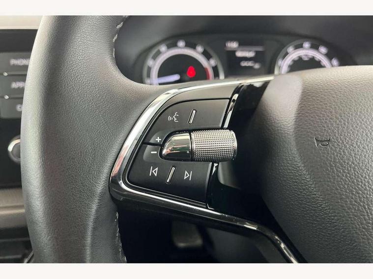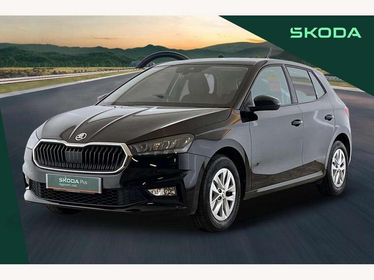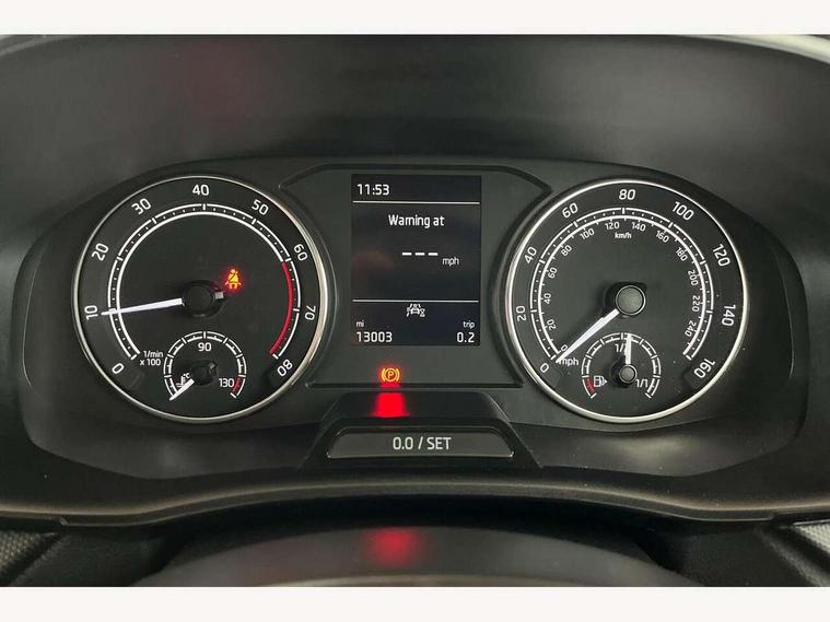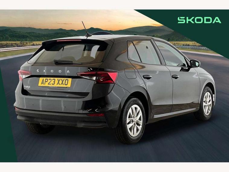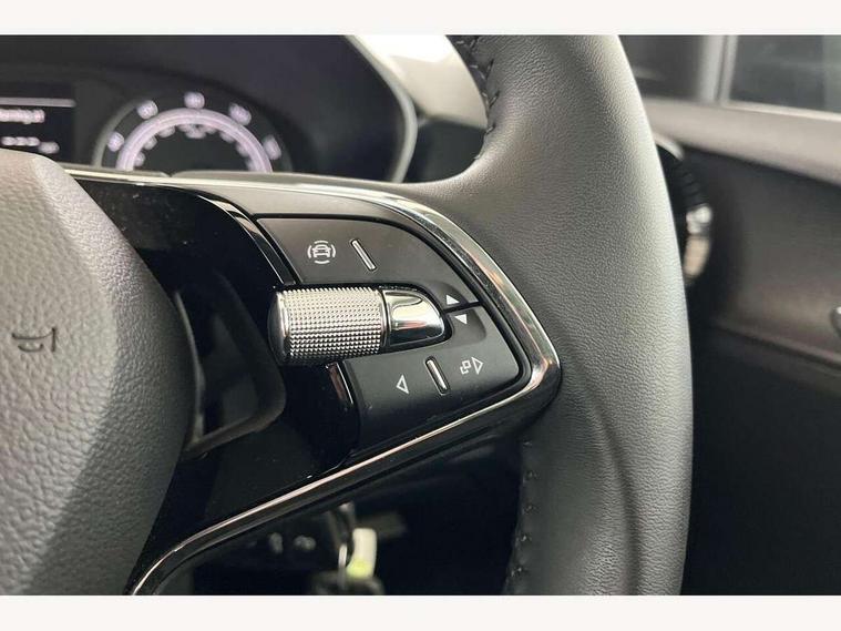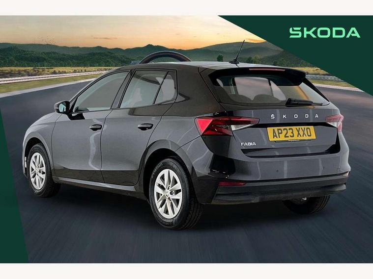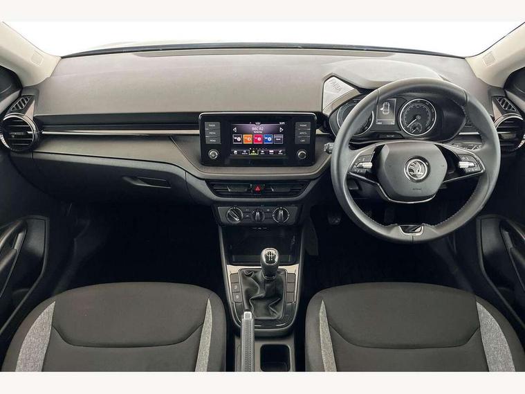 Bluetooth connection, Driver alert system - DAS, Electromechanical power steering, Exterior temperature gauge, Lane assist including road edge detection, Multifunction trip computer in black and white, Service interval indicator, Speed limiter, 2x USB-C in the front (for data transmission and charging), 4 speakers in front, Auxiliary socket for external MP3 player, DAB digital radio reception, Radio Swing with 6.5" colour display, Basic LED Headlights, Basic rear lights, Body colour door mirrors, Body coloured bumpers, Dimming rear view mirror with black frame, Door mirror integrated indicators, Electrically adjustable and heated door mirrors, Electrically adjustable front windows with function auto up/down, Front fog lights, Front window wiper intermittent control, Headlight range control - Automatic, Ice scraper in fuel cap, LED daytime running lights with coming and leaving home feature, Mechanical adjustable rear windows, Rain sensor, Rear LED fog light, Rear side wing doors, Rear window wiper with washing nozzles, Roof mounted spoiler, SKODA tailgate lettering in chrome, Third brake light, 2 reading lights in front and 2 reading lights in rear, 2 spoke leather multifunction steering wheel, 3 rear headrests, Backrest split and folding, Central console with fixed cup holder and storage box, Chrome handbrake release button, Fabric upholstery, Gearshift knob/handle in leather, Grain satin black interior door handles, Hand brake lever handle in leather, Height adjustable front headrests, Height adjustable front seats, Height adjustable steering wheel, ISOFIX and TopTether anchorage points to the outer rear seats, ISOFIX and TopTether on the front passenger seat, Luggage compartment lighting, Manual air conditioning, Manually adjustable lumbar support in front seats, Pollen filter, Rear seat bench unsplit, Single front passenger seat, Storm grey headlining, Sun visors with mirror and airbag label on passenger side, Ticket holder, 3-point height adjustable front seats belts with pretensioner and force limiter, Automatic warning lights in case of crash, Driver and passengers airbag with switch off function, e-Call+, ESC including ABS, MSR, ASR, EDS, HBA and XDS, Front and rear seat belt warning, FRONT ASSIST (AEB City and AEB Inter Urban), Front side airbags, Head airbags, One tone horn, Pedestrian protection, Three rear 3-points safety seat belts with pretensioner and force limiter including stop function for outer rear seat belts, Tyre pressure monitoring system, Anti-theft alarm system including immobiliser, interior monitoring, backup horn, and towing protection, Central locking with radio remote control, interior controls, SAFE function and 2 foldable keys, Black painted air vents, Glossy black decorative trim, Grain satin black central console cover, Grain satin black lower decorative trim, Satin black door and side trim panel in front, Anti-theft wheel bolts protection, Super-low rolling resistance tyres,