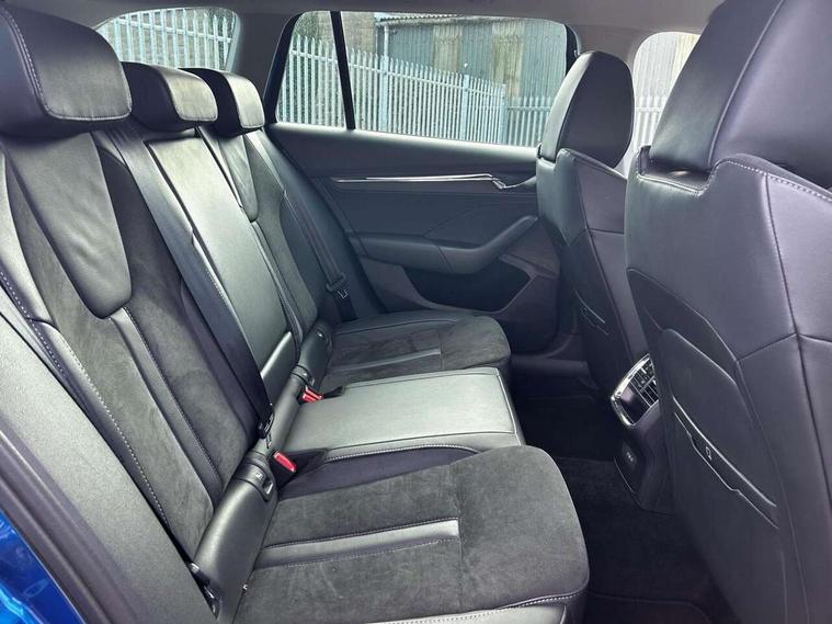 1x USB Type C port in rear view mirror (charging only), 2x USB Type C ports in rear of front centre armrest (charging only), Adaptive cruise control, Blind Spot Detection (BAS), Bluetooth system, Columbus satellite navigation with 10" touchscreen display, Electro-mechanical power steering, Front assist system, Lane assist, Smartlink (includes android auto and mirrorlink), Speed limiter, Virtual Cockpit - 10.25" digital display, Voice control system, Wireless SmartLink for Apple Car Play, 2x USB Type C ports (for charging and data transfer), DAB Digital radio, Aero front windscreen wipers with intermittent function, Auto dimming rear view mirror, Body colour door mirrors and handles, Chrome grille surround, Chrome roof rails, Chrome strip in lower front bumper, Chrome window surround, Electric front and rear windows, Electrically adjustable, heated and folding door mirrors with memory function, Heated rear windscreen, High level third brake light, Ice scraper in fuel cap, Rain and light sensors, Rear fog light on one side, Rear privacy glass, Rear spoiler, Rear window wiper, 3 rear headrests, 4 foldable roof handles, Chrome inner door handles, Electrically adjustable driver's seat with memory and lumbar support, Front centre armrest, Front head restraints, Illuminated air conditioned glovebox, Leather trimmed gearshift lever, Luggage compartment lighting with two side lamps, Parcel shelf - rolling, Sun visors with mirrors, Sunglasses storage, Textile floor mat set, Ticket holder, Two-spoke leather multi function steering wheel with paddles, Umbrella in door panel, Unsplit rear bench seat and split folding backrest, Variable boot floor, LED interior light pack - Octavia, 3 point front/outer rear seatbelts+pre-tensioners, Alarm with interior monitoring, tilt sensor and back up horn, Automatic door unlocking in case of crash, Automatic fuel cut off in case of crash, Automatic warning lights in case of emergency braking, Driver and passenger front and side airbags, Drivers knee airbag, Electronic parking brake, Emergency call and proactive services, ESC including ABS, EBV, MSR, ASR, EDS, HBA, DSR, Head and curtain airbags, Hill hold control, Hill start assist, ISOFIX on front passenger seat and outer rear seats, Manual rear child locks, Passenger airbag deactivate switch, Rear disc brakes, Two tone horn, Tyre pressure monitor, Visual and acoustic seat belt reminder, Warning reflectors in front door, Door locks with immobiliser, Keyless entry and start/stop including rear doors, Remote central locking, Chrome air vent surrounds,
