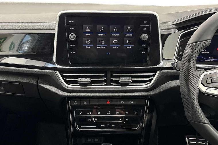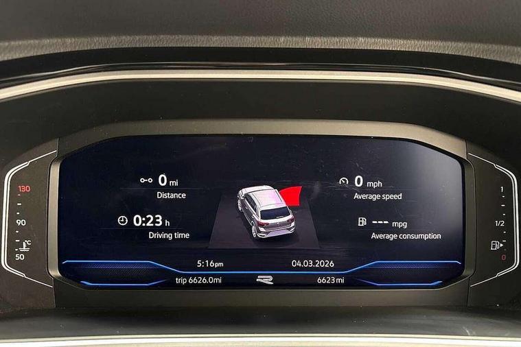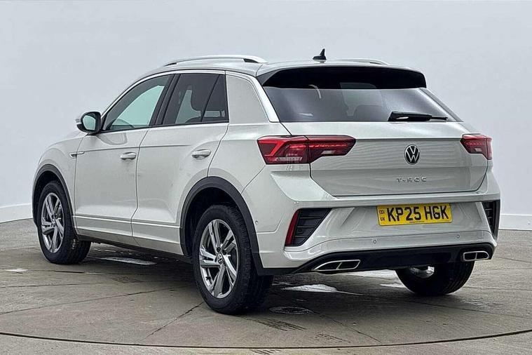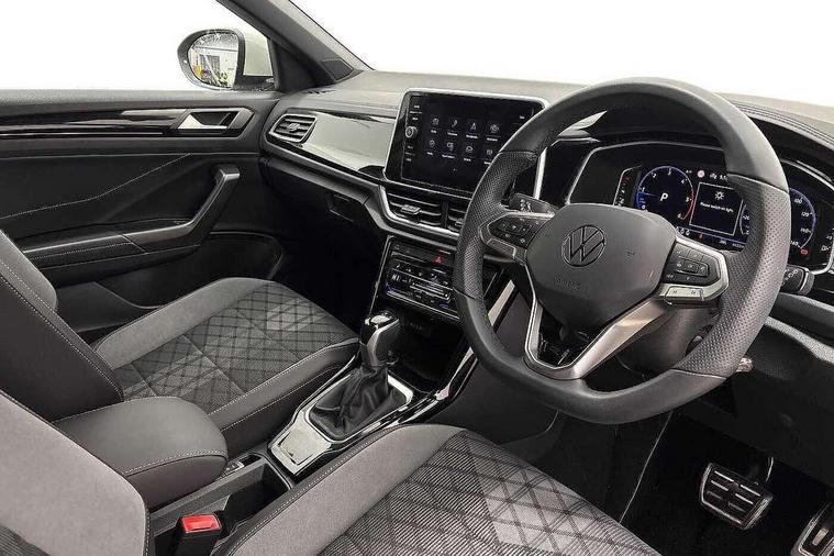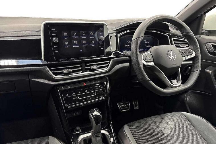 10.25" Digital cockpit pro, Advanced driver attention and drowsiness monitor, Dynamic road sign display, Emergency call service, Lane keeping system Lane Assist, Mobile phone interface, Modified key software - reduce switch off time for key status change to Long no motion, Online services, Park assist including front and rear parking sensors, Service interval indicator, Tailgate/trunk lid release from outside, Think blue trainer driver tips and journey analysis, Warning sound and light for front seatbelts unfastened, Wireless app connect, Battery regeneration during braking, Start/stop function with battery regeneration, DAB Digital radio, Diversity antenna for FM reception, Front and rear 6 speakers, Music playback - MP3, WMA and AAC files, Premium USB cable in choice of either Apple or Android smartphone compatibility, SD card slot, Simultaneous pairing of 2 compatible mobile devices, Title and cover art display, We Connect and We Connect Plus functionality, Auto dimming interior rear view mirror, Automatic hazard lights activation under emergency braking, Automatic headlight control with LED separate daytime running lights with coming/leaving home function, Body coloured exterior mirror housings and door handles, Electrically adjustable and heated door mirrors, Extended roof spoiler, Exterior mirrors aspherical on driver side, convex on front passenger side, External USB type C socket and charging sockets, Front windscreen wiper with intermittent wipe and 4 position delay, Heated rear window, LED 3rd brake light, LED rear combination lamps, LED rear number plate lights, Power windows with comfort operation and circuit breaker, Privacy glass for rear side windows and rear window, R-Line design body coloured bumpers, Rain sensor, Rear exhaust tailpipe, Rear fog light on one side and reversing lights on both sides, Rear side wing doors, Rear wash/wipe with intermittent wipe setting, Remote electrically foldable door mirrors, puddle lights and reverse activated passenger's door mirror, 12V power socket in centre console, 3 rear head restraints, 3 seat bench in 2nd row, 4 load lashing points in luggage compartment, Air care climatronic air conditoning system with active combination filter and 2-zone temperature control, Black roof lining, Chrome plated decorative trims, Chrome plated radiator grille inserts, air vent surrounds and light switch surrounds, Door and side trim panel with leatherette insert, Front + rear carpet mats, Front centre armrest, Front cupholders x 2, Front footwell illumination, Front reading light, Front scuff plates with R Line logo, Front seat back storage pockets, Glove compartment door with light, Instrument lighting, white adjustable panel illumination, Interior ambient lighting and surround lighting, Interior light delay, Isofix child seat preparation, Leather gearshift handle, Load-through provision with cup holder when folded down ('Unsplit rear seat bench, split folding backrest, with centre armrest), Luggage compartment lighting, Single front passenger seat, Stainless steel pedals, Storage compartment in left and right luggage area, Storage compartment in rear doors, Storage compartments in driver and front passenger doors, Sunvisors with illuminated vanity mirrors, Variable boot floor, height adjustable and removable, Driver assistance pack without proactive passenger protection - T-Roc, 3 point height adj front seatbelts + pretensioners, 3 point seatbelts in outer rear with ECE label, ABS, Child locks on rear doors, City emergency braking and pedestrian monitoring, Driver and front passenger airbag with front passenger airbag deactivation, Driver and front passenger safety-optimised head restraints, Drivers seatbelt reminder, Electronic parking brake, Electronic Stability Control (ESC) inc EDL (Electronic Differential Lock) and ASR (Traction Control), Front and rear passengers curtain airbag system including front side airbags, Hill start assist, Predictive pedestrian protection, Rear disc brakes, Two tone horn, Tyre pressure loss indicator, Volkswagen roadside assistance, Piano black decorative inserts in dashboard and front door trim panels, Trims for alloy wheels,