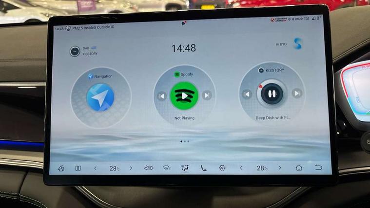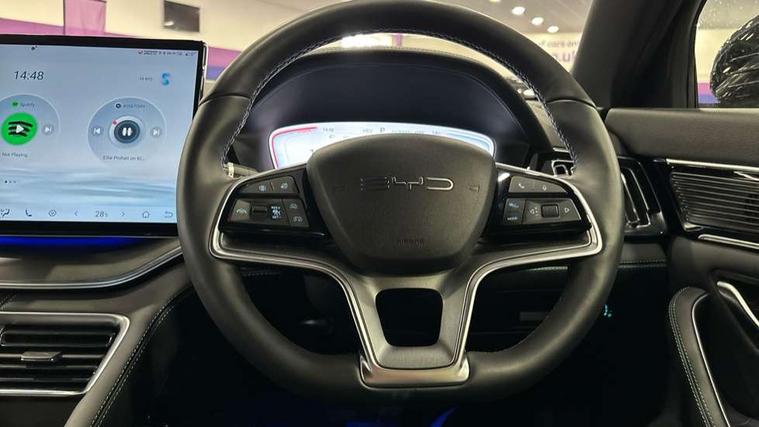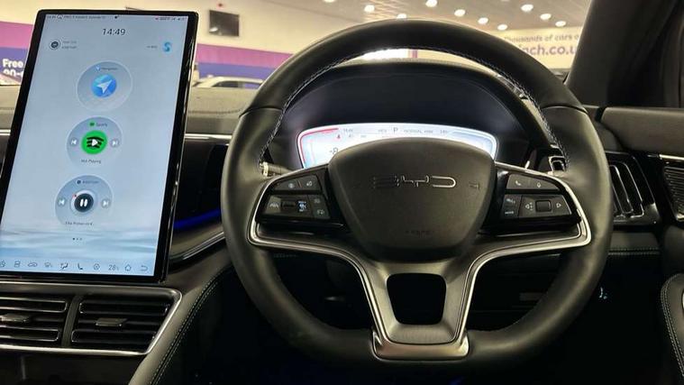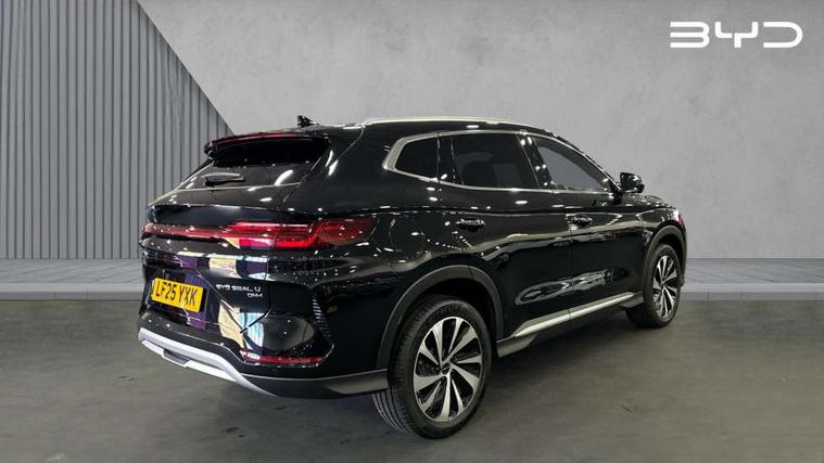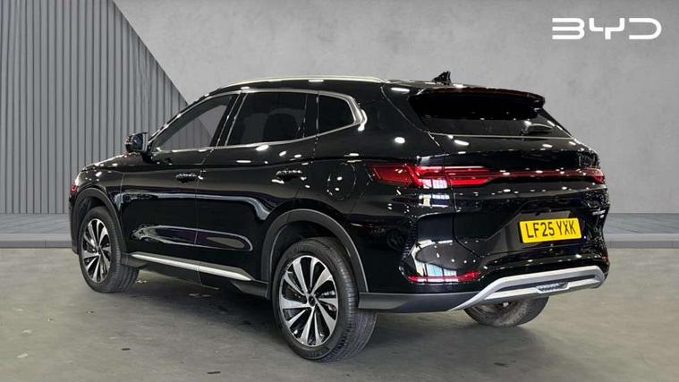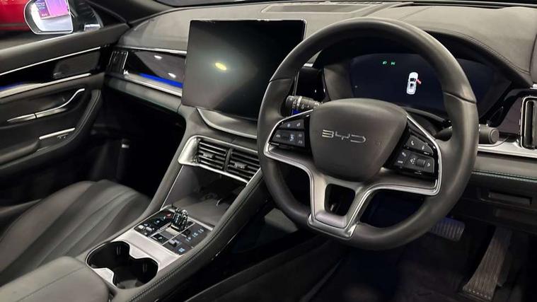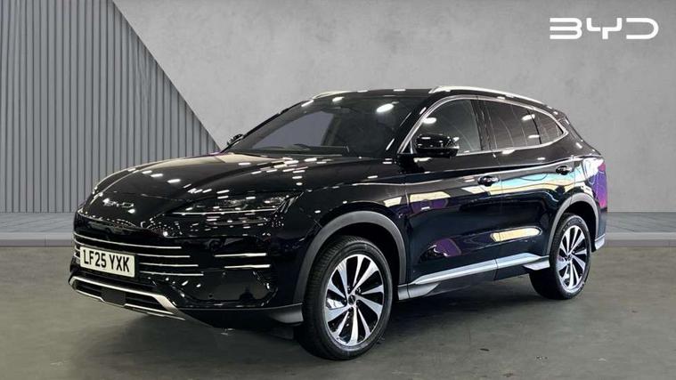 12.3" TFT full LCD instrument panel, 360 camera, Adaptive Cruise Control (ACC) and Intelligent Cruise Control (ICC), Automatic vehicle hold, Blind spot detection, BYD voice control assistant "Hi, BYD", Controller Deceleration Parking (CDP), Drive mode select (Eco, normal, sport, snow), e-Call (emergency call), Electric tailgate release, Emergency Lane Keeping Assist (ELKA), Forward collision warning, Front and rear parking sensors, Front cross traffic alert and front cross traffic brake, Head up Display, Indirect driver fatigue management, Intelligent Speed Limit Control (ISLC), Keyless system entry and start, Lane change assist, Lane Departure Assistant (LDA) and Lane Departure Warning (LDW), Lane departure prevention, PAS, Predictive collision warning, Rear collision warning, Rear cross traffic alert and rear cross traffic brake, Rollover Control System (RMI), Smartphone wireless charging, 2 x 15W, Traffic sign recognition (TSR), Vehicle-to-Load (V2L) function, 11kW on board charger, Mode 3 Type 2 charging cable (3 phase), V2L (Vehicle to load) power strip - Type F, 15.6" Electrically rotatable touchscreen, FM/DAB+ radio, Front USB ports, 1 x 18W Type C, 1 x 60W Type C, Infinity sound system with 10 speakers, Rear USB ports, 2 x 18W Type C, Aluminium roof rails, Auto dimming interior rear view mirror, Auto headlamps (on/off), Dynamic welcome lights, Electric folding and heated door mirrors, Emergency tow hook, Exterior mirror footlights, Follow me home headlights (The headlights turned on in advance and delayed off function), Front windscreen, UV protection, thermal insulation and sound proofing, High beam assist, LED 3rd brake light, LED daytime running lights, LED Headlights, LED taillights, One touch electric front/rear windows with pinch protection, Panoramic sunroof with anti-pinch sensor and electrically adjustable sunshade, Rain sensor windscreen wipers, Rear fog lights, Rear side wing doors, Rear window and rear windscreen with tinted glass, Rear wiper, 12V power outlet, 3 seat bench in 2nd row, 8 way electrically adjustable drivers seat, Adjustable rear headrests, Boot parcel shelf, Driver and passenger sunvisors with illuminated vanity mirrors, Driver seat memory function, Front centre armrest with 2 cupholders, Front LED reading lights, Front passenger seat with 4-way electric adjustment, Front seat footlights, Heat pump, Heated front seats, Heated steering wheel, Integrated headrest in front seats, ISOFIX and i-Size for front passenger and outer rear seats, LED front door lights, Nylon floor mats, PM2.5 air filter, PM2.5 air purification system, Rear air vents, Rear armrest with 2 cupholders, Rear side LED reading lights, Rhythm-reactive multi-colour ambient lighting, Single front passenger seat, Split folding rear seats - 40/60, Vegan leather multifunction steering wheel, Vegan leather upholstery, Ventilated front seats, 3x3 point rear seatbelts, ABS/EBD, Automatic emergency braking system, Brake override system (BOS), Child presence detection, Comfort stop, Door open warning, Driver airbag, Electric parking brake, Force limiting pre-tensioned front seat belts, Front centre airbag, Front passenger airbag, Front passenger airbag deactivation, Front side airbags, Hill descent control, Hill hold control, Hydraulic Brake Assist (HBA), Hydraulic brake boost, Mechanical child safety lock, Rear middle seat force limiting seat belt, Rear seat belt pretensioners, Reflective vest, Side curtain airbags, Traction control system (TCS), Tyre pressure monitoring system (TPMS), Vehicle Dynamics Control System (VDC), Warning triangle, 2 x Smart keys, Anti theft alarm system, Automatic door locking, 19" Bi-colour alloy wheels, Tyre nut covers remover, Tyre repair kit,