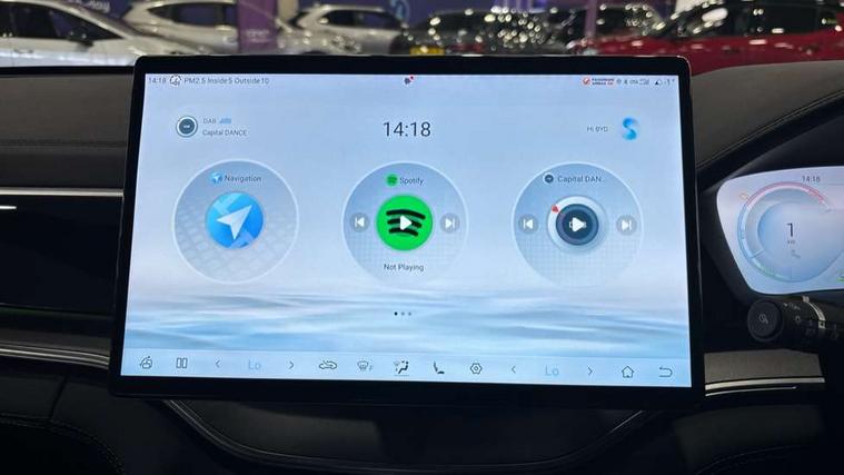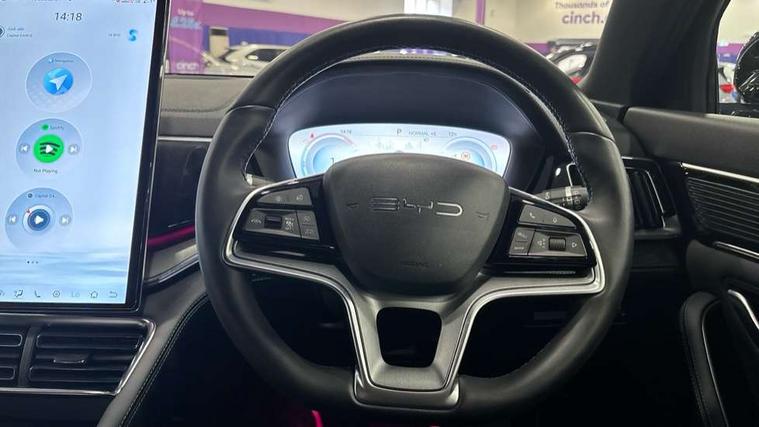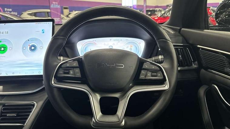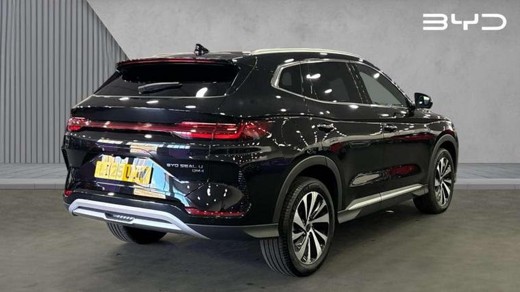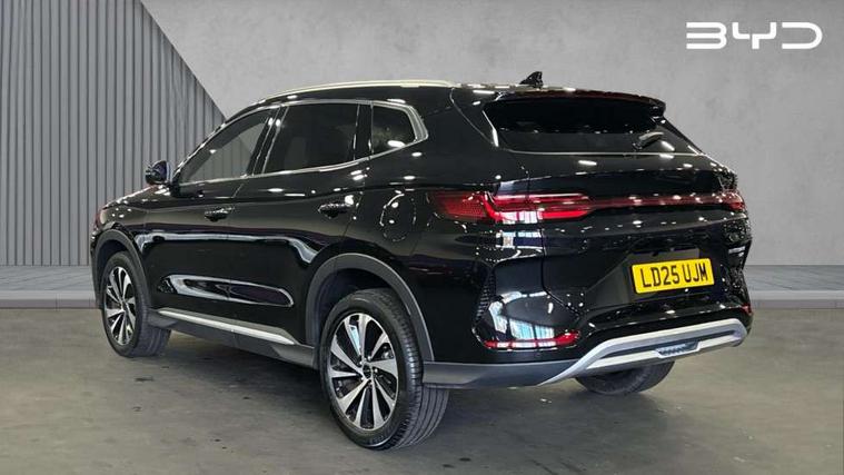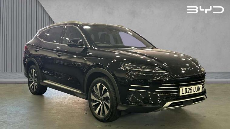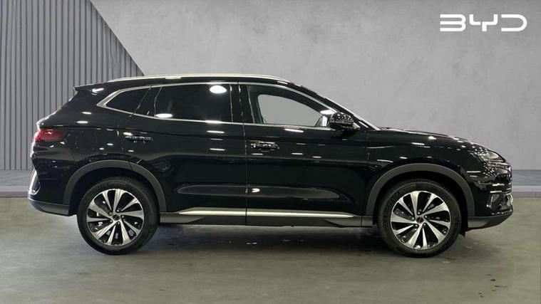 12.3" TFT full LCD instrument panel, 360 camera, Adaptive Cruise Control (ACC) and Intelligent Cruise Control (ICC), Automatic vehicle hold, Blind spot detection, BYD voice control assistant "Hi, BYD", Controller Deceleration Parking (CDP), Drive mode select (Eco, normal, sport, snow), e-Call (emergency call), Electric tailgate release, Emergency Lane Keeping Assist (ELKA), Forward collision warning, Front and rear parking sensors, Front cross traffic alert and front cross traffic brake, Head up Display, Indirect driver fatigue management, Intelligent Speed Limit Control (ISLC), Keyless system entry and start, Lane change assist, Lane Departure Assistant (LDA) and Lane Departure Warning (LDW), Lane departure prevention, PAS, Predictive collision warning, Rear collision warning, Rear cross traffic alert and rear cross traffic brake, Rollover Control System (RMI), Smartphone wireless charging, 2 x 15W, Traffic sign recognition (TSR), Vehicle-to-Load (V2L) function, 11kW on board charger, Mode 3 Type 2 charging cable (3 phase), V2L (Vehicle to load) power strip - Type F, 15.6" Electrically rotatable touchscreen, FM/DAB+ radio, Front USB ports, 1 x 18W Type C, 1 x 60W Type C, Infinity sound system with 10 speakers, Rear USB ports, 2 x 18W Type C, Aluminium roof rails, Auto dimming interior rear view mirror, Auto headlamps (on/off), Dynamic welcome lights, Electric folding and heated door mirrors, Emergency tow hook, Exterior mirror footlights, Follow me home headlights (The headlights turned on in advance and delayed off function), Front windscreen, UV protection, thermal insulation and sound proofing, High beam assist, LED 3rd brake light, LED daytime running lights, LED Headlights, LED taillights, One touch electric front/rear windows with pinch protection, Panoramic sunroof with anti-pinch sensor and electrically adjustable sunshade, Rain sensor windscreen wipers, Rear fog lights, Rear side wing doors, Rear window and rear windscreen with tinted glass, Rear wiper, 12V power outlet, 3 seat bench in 2nd row, 8 way electrically adjustable drivers seat, Adjustable rear headrests, Boot parcel shelf, Driver and passenger sunvisors with illuminated vanity mirrors, Driver seat memory function, Front centre armrest with 2 cupholders, Front LED reading lights, Front passenger seat with 4-way electric adjustment, Front seat footlights, Heat pump, Heated front seats, Heated steering wheel, Integrated headrest in front seats, ISOFIX and i-Size for front passenger and outer rear seats, LED front door lights, Nylon floor mats, PM2.5 air filter, PM2.5 air purification system, Rear air vents, Rear armrest with 2 cupholders, Rear side LED reading lights, Rhythm-reactive multi-colour ambient lighting, Single front passenger seat, Split folding rear seats - 40/60, Vegan leather multifunction steering wheel, Vegan leather upholstery, Ventilated front seats, 3x3 point rear seatbelts, ABS/EBD, Automatic emergency braking system, Brake override system (BOS), Child presence detection, Comfort stop, Door open warning, Driver airbag, Electric parking brake, Force limiting pre-tensioned front seat belts, Front centre airbag, Front passenger airbag, Front passenger airbag deactivation, Front side airbags, Hill descent control, Hill hold control, Hydraulic Brake Assist (HBA), Hydraulic brake boost, Mechanical child safety lock, Rear middle seat force limiting seat belt, Rear seat belt pretensioners, Reflective vest, Side curtain airbags, Traction control system (TCS), Tyre pressure monitoring system (TPMS), Vehicle Dynamics Control System (VDC), Warning triangle, 2 x Smart keys, Anti theft alarm system, Automatic door locking, 19" Bi-colour alloy wheels, Tyre nut covers remover, Tyre repair kit,