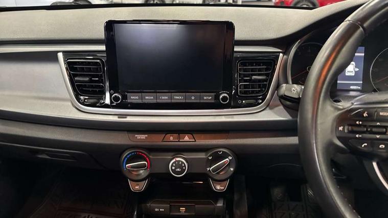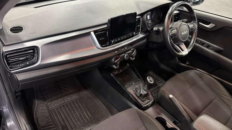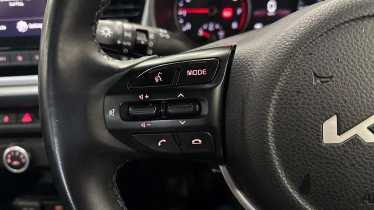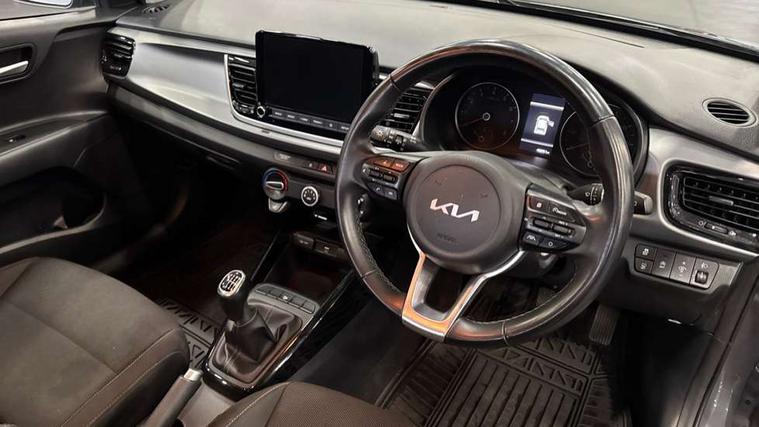 8" touch screen, Apple car play/Android Auto, Cruise control + speed limiter, Digital clock, Electric power steering, Emergency stop signalling system, Gear selection indicator, Manual speed limit assist (MLSA), Outside temperature display, Rear parking sensor, Reversing camera system with dynamic guidelines (Integrated into centre fascia screen), Tachometer, Trip computer, Voice control system, Windscreen washer level indicator, Intelligent Stop and Go, 6 speakers, Bluetooth connectivity including audio streaming, DAB Digital radio, Front USB port for media connection, Rear USB port, Steering wheel mounted audio controls, Aeroblade-type front wipers, Automatic lighting control, Bi-function projection headlights, Black grille with chrome surround, Body colour bumpers, Body colour door handles, Body coloured door mirrors, Cornering light, Electric adjustable/heated/folding door mirrors, Front electric windows with driver's auto up/down function, Headlamp levelling, Heated rear window, LED daytime running lights, LED indicators in door mirrors, Projection front fog lights, Projection headlights, Rear electric windows, Rear fog lamp, Rear wash/wipe, Speed variable front wipers, Tinted glass, Welcome home function, 3 passenger assist grips, 60/40 split/folding 2nd row of seats, Air conditioning, All round height adjustable headrests, Centre Console with Storage Box and Sliding Armrest, Dash illumination dimmer switch, Driver's seat height adjuster, Driver/passenger sunvisors and illuminated vanity mirrors, Front and rear door map pockets with bottle holder, Front passenger seatback pockets, Front USB charger port and 12V socket, ISOFIX top tethers and lower anchor points, Leather trimmed gearshift, Leather trimmed steering wheel, Load area light, Luggage area parcel shelf, Luggage hooks, Overhead console with sunglasses holder, Premium cloth upholstery, Silver interior door handles, Tilt/telescopic adjustable steering wheel, Advanced driving assistance pack - Rio, 3-point front seatbelts, 3x3 point rear seatbelts, ABS with Electronic Brakeforce Distribution (EBD) and Brake Assist System (BAS), Automatic unlocking of doors in case of impact, Cornering brake control (CBC) and Straight line stability (SLS), Electronic stability control (ESC) and vehicle stability management (VSM), Front seatbelt pretensioners + load limiters, Height adjustable front seatbelt anchors, Hill start assist control (HAC), Passenger airbag deactivate switch, Rear child proof door locks, Seatbelt warning, Traction control, Twin curtain airbags, Twin front airbags, Twin front side airbags, Tyre pressure monitoring system, Anti theft alarm, Deadlocking system, Engine immobiliser, Locking wheel nuts, Remote central door and tailgate locking with fold-away key, Speed sensitive auto door locking, Visible vehicle identification number, Silver fascia trim, 15" Alloy wheels, Tyre mobility system,