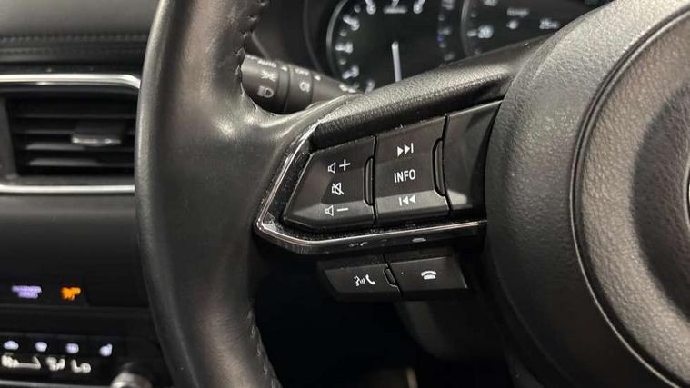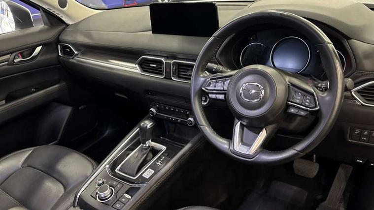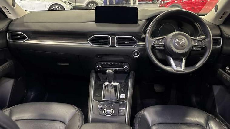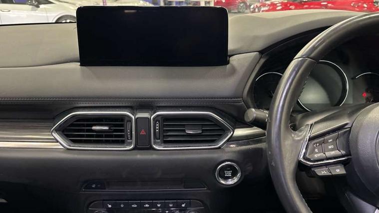 10.25" display with Mazda Connect infotainment, 7" colour TFT display, Advanced blind spot monitoring, Bluetooth connectivity with voice control, Collision prevention assist, Connected services, Cruising Traffic Support, Drive mode selector, Electric power steering, Emergency stop signalling system, Engine start/stop button, Forward collision warning, Front and rear parking sensors, Integrated navigation system, Intelligent speed assist, Lane departure warning system, Lane keep assist, Power liftgate, Qi wireless phone charging, Radar cruise control with Stop and Go, Rear cross traffic alert, Reversing camera, Service indicator, Traffic sign recognition (TSR), Trip computer, Windscreen projected colour active driving display (HUD) with memory, Wireless apple car play/android Auto, Cylinder Deactivation, i-stop, AM/FM radio, Bluetooth audio streaming, Bose premium sound system with 10 speakers, DAB Digital radio, Multimedia Commander including separate volume dial, Steering wheel mounted audio controls, Adaptive front lighting system, Auto dimming rear view mirror, Automatic headlights, Black inlay dashboard panel, Body colour door mirrors, Body colour roof spoiler, Body coloured front and rear black lower bumper mouldings, Coming/leaving home lighting function, Door mirror integrated indicators, Dual chrome tailpipes, Dusk sensitive headlamps, Electric front/rear windows with one touch auto up/down, Front grille in gloss black finish, Front grille in gloss black finish with chrome signature wing, Gloss black B and C pillars garnish, High beam assist, Intermittent rear wash/wipe, LED auto levelling, LED daytime running lights, LED front fog lights, LED Headlights, LED third brake light, Power folding and heated door mirrors, Power tilt/slide sunroof, Privacy glass (rear side windows only), Rain sensing front wipers, Rear side wing doors, Satin black side mouldings, Scuff plates, Shark fin antenna, Signature LED rear combination lights, Variable intermittent front wash/wipe, Vinyl with wood grain metal inlay door trim panel, Windscreen wiper de-icer, 12v electrical power outlet, 3 seat bench in 2nd row, 3 stage heated front seats, 40:20:40 Karakuri fold-flat seat system, 6 way electric adjustable passenger seat, 8 way electric driver seat with lumbar support + memory, Cargo room flat floor board with waterproof undertray, Driver seat power slide, recline and height adjustment, Driver, Front passenger and two rear grab handles with coat hooks, Driver/passenger front seatback pockets, Driver/passenger sunvisors + illuminated vanity mirrors (drivers with ticket holder), Dual zone climate control, Folding centre armrest with 2 cup holders, Front and rear door pockets, Front centre storage with two cupholders, Front passenger seat power slide, recline and height adjustment, Heated steering wheel, Humidity sensor, Illuminated glovebox, Interior dome light with integral spotlight, ISOFIX child seat anchorage points attached on outer rear seats, Karakuri tonneau cover, Leather upholstery, Leather wrapped steering wheel and gear knob, Light roof lining, Luggage compartment LED lighting, Luggage compartment power outlet, Paddle shifts, Rear air vents, Rear headrests, Rear seat recline, Roof mounted sunglasses holder, Single front passenger seat, Three height adjustable head restraints, Tilt/height adjustable steering wheel, USB Connectivity (2x front Type-C, 2x rear Type-B), White interior LED illumination lighting, 3 point front seatbelts with pre-tensioners, 3 rear 3 point seatbelts, ABS, Advanced Smart City Brake Support - SCBS, Child locks on rear doors, Driver and front passenger side airbags, DSTC-Dynamic Stability and Traction Control, Dual front airbags, Electronic brake force distribution, Electronic parking brake with auto hold, ESP, Front and rear curtain airbags, Front passenger airbag deactivation, G-Vectoring control, Hill hold assist, Seatbelt reminder front and rear, Single stage passenger airbags, Smart brake support with forward obstruction warning, Tyre pressure monitoring system, Automatic door locking when moving off, Deadlock, Immobiliser, Power door locks, Remote central locking, Smart keyless entry, Thatcham Cat.1 alarm, 19" diamond cut black alloy wheels, Tyre repair kit,