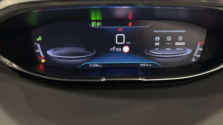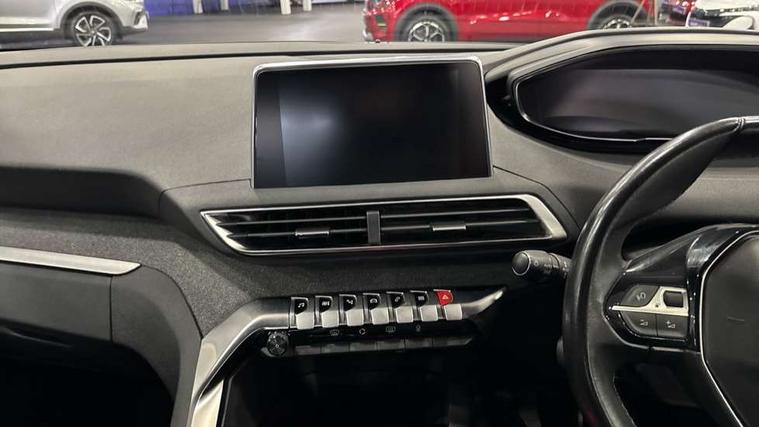 'Lights On' Reminder warning buzzer, 3D connected navigation + voice control + Peugeot connect SOS and assistance, Bluetooth telephone facility, Digital clock, Exterior temperature indicator with ice warning, Front and rear parking sensors, Lane departure warning system, Mirror screen with mirror link, apple carplay and android auto, Multi function trip computer, PEUGEOT i-Cockpit with 8.0" capacitive touchscreen in centre console, PEUGEOT i-Cockpit with compact sports steering wheel, PEUGEOT i-Cockpit with configurable 12.3" Head-up digital instrument panel, Speed limit recognition and recommendation, Dynamic stability control and electronic anti-skid system, DAB Digital radio, Steering column mounted multifunction controls, USB socket, 2 X Rear number plate lights, Aluminium longitudinal roof bars, Automatic hazard light activation upon heavy brake application, Automatic triggered rear windscreen wiper in reverse gear, Black and chrome front wing trim, Black bumper protection plate, Black rubber side window trim, Body colour door handles, Body colour door mirror shells, Body colour rear spoiler with stainless steel edging trim, Body coloured bumpers, Body protectors (bottom of front and rear bumpers + wheel arches + protection at bottom of doors) in black, Chrome bumper inserts, Chrome front fog light trim, Chrome radiator grille and surround, Chrome rear bumper facia, Dark tinted rear side windows + tailgate window, Door mirror mounted LED courtesy approach lights, Electric operated/heated door mirrors, Front windscreen wiper with magic wash cleaning system, Gloss black finish B and C pillar, Gloss black rear cluster connecting strip, Gloss black windscreen surround, Halogen headlights, Headlights left on audible warning, Heated rear windscreen with integrated antenna, LED daytime running lights, LED sequential scrolling front indicators, LED side indicator lights integrated into door mirrors, Lion grey front bumper scuff plate, One touch electric front/rear windows with pinch protection, Power folding door mirrors with blind spot detection indicator and auto dipping function in reverse gear, Radiator grille in chrome edge trim and facets, Rear LED Peugeot signature 'Claw Effect' lights, Stainless steel roof arches, 1/3 to 2/3 split folding rear seats, 12V Sockets in dashboard, rear cabin and load area, 2 cupholders in front centre console, 2 rear reading spotlights, 2x Rear coat hooks, 3x Isofix child seat fittings in the front passenger and outer rear seats, 4 Grab handles retractable and damped, 4 Lashing eyes in boot, Blue ambient lighting for connecting zone, Blue ambient lighting to front door panels, central storage and cupholders, Blue ambient lighting to head up instrument panel, Centre front armrest with butterfly wing opening and illuminated storage compartment, Driver and front passenger seat height adjustment, Driver seat manual adjustment, Dual zone automatic climate control, Electric power steering with reach and rake adjustable steering column, Fixing rings 4 in load compartment, Flocked glovebox interior, Fold flat front passenger seat with picnic table, Footwell illumination, Front headrests, Front interior light with 2 reading spotlights and rear interior light with timer, Front seat back map pockets, Gear shift indicator, Height adjustable headrests, Illuminated glovebox, Illuminated vanity mirrors, Mistral full grain leather steering wheel, Rear armrest with ski flap and two cup holders, Rear centre console ventilation system, Rear headrests, Reclining front seats, Roof LED interior lighting, Roof lining - Salin light grey, Satin chrome dashboard trim, Satin chrome digital instrument panel and touchscreen trim, Satin chrome front door panel recess trim, Satin chrome gear lever, Satin chrome interior door handles, Satin chrome scorpion's tail and toggle switch trim, Seatbelt not fastened audible and visual alert for front seats, Seatbelt unfastened on the move audible and visual alert for front and rear seats, Two position boot floor, Safety pack - 3008, Safety Plus Pack - 3008, Visibility pack - 3008, 3x Rear three-point retractable seatbelts with force limiters in the outer rear seats, Adaptive driver and front passenger airbags with passenger airbag deactivation function, Anti-lock braking system with electronic braking distribution and emergency braking assistance, Auto city emergency braking, Driver and front passenger side airbags, Driver SMART airbag, Electric child locking functionality on rear windows and doors, Electric parking brake, ESP with ASR, Front and rear curtain airbags, Front optimised safety headrests and 3 x rear retractable headrests with height adjustable, Front passenger SMART airbag with deactivate switch, Front three point retractable seatbelts with pre tensioners and force limiters, Front ventilated disc brakes and rear disc brakes, Height adjustable front seatbelts, Hill start assist, Tyre pressure sensor, Anti theft alarm, Automatic door lock/re-lock after 30 seconds, Central locking button on dash, Deadlocks, Electronic immobiliser, Locking wheel bolts, Remote control central locking with two plip keys, Brumeo fabric Dashboard, front and rear door panel finish, Satin chrome dash trim, Satin chrome instrument dial surrounds,