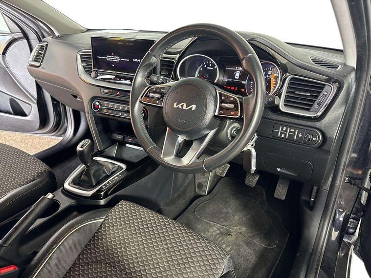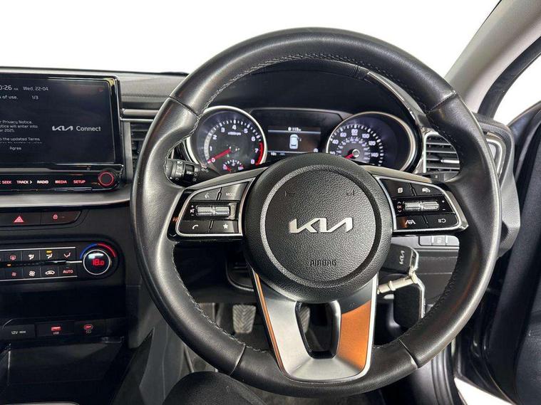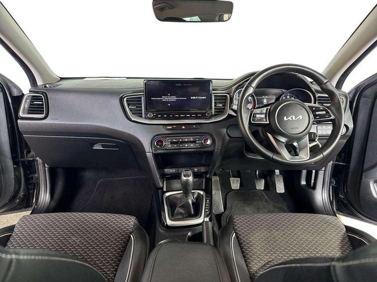 10.25" touchscreen satellite navigation, 4.2" supervision colour cluster display, Apple car play/Android Auto with voice control, Bluetooth with Voice Recognition & Music Streaming, Cruise control + speed limiter, Driver Attention Warning (DAW), Emergency call service, Emergency stop signalling system, Forward Collision-Avoidance Assist (FCA) - City/Pedestrian/Cyclist, Kia connect UVO, Lane Following Assist (LFA), Lane keep assist, Manual speed limit assist, Motor driven power steering, Rear parking sensor, Reversing camera system with dynamic guidelines (Integrated into centre fascia screen), Trip computer, Intelligent Stop and Go, 6 speaker audio system, DAB Radio with MP3, Illuminated USB ports, Steering wheel mounted controls, USB Fast Charger in Front Centre Console, USB port for connection of a media device, All-round Electric Windows with Front Auto Up & Down Function, Auto dimming rear view mirror, Automatic defog system, Automatic headlights control, Body colour bumpers, Body colour door mirrors, Body colour exterior door handles, Body coloured rear spoiler, Chrome window surround, Electric adjustable/heated/folding door mirrors with LED Indicators, Heated rear window with timer, High beam assist, High gloss black and white chrome coated radiator grille, LED daytime running lights, LED front fog lights, LED Headlights, LED High-mounted Brake Light, LED rear combination lights, LED rear fog light, Privacy glass (rear side windows and tailgate), Rain sensing front wipers, Rear side wing doors, Rear wash/wipe, Roof rails, Tinted glass, Wide view drivers door mirror, Windscreen Washer Level Warning, 12V power socket in luggage compartment, 12V power sockets, 3 seat bench in 2nd row, 3 x passenger assist grips, 60/40 split folding rear seat, All-round height adjustable headrests, Centre console storage box/armrest, Cloth upholstery with faux leather bolsters, Cupholders in centre console, Cupholders in rear armrest, Dash illumination dimmer switch, Door courtesy lamps, Driver & Front Passenger Sunvisors with Vanity Mirror Illumination & Ticket Holder, Driver + front passenger electric lumbar support, Driver's seat height adjuster, Dual Height Luggage Area Floor, Dual zone automatic air conditioning, Faux leather door centre trim, Front and rear door storage, Front cabin map light with sunglasses case, Front Passenger Seat Height Adjuster, Front seat back pockets, Gear shift indicator, Heated front seats, Heated steering wheel, Interior door lock/unlock function, ISOFIX Child seat top tethers and anchor fixings, Leather handbrake, Leather trimmed steering wheel, Light grey headlining, Luggage area light, Luggage area parcel shelf, Luggage hooks, Rear centre armrest, Rear coat hooks, Satin chrome interior door handles, Single front passenger seat, Tilt/telescopic adjustable steering wheel, All round 3-point seatbelts, Anti-lock braking system (ABS), Dual front side airbags, Dual horn, Electronic parking brake, Electronic stability control (ESC) and vehicle stability management (VSM), Front passenger airbag cut-off switch, Height adjustable front seatbelts, Hill start assist control (HAC), Impact sensing auto door unlocking, Rear door child safety locks, Seatbelt reminder warning, Twin curtain airbags, Twin front airbags, Tyre pressure monitoring system, Alarm system, Engine Immobiliser & Deadlocks, Engine Start/Stop Button with Smart Entry System, Locking wheel nuts, Speed sensitive auto door locking, Black high gloss front console garnish & door trim, Satin Chrome Fascia Trim, 17" Alloy wheels, Tyre mobility kit,