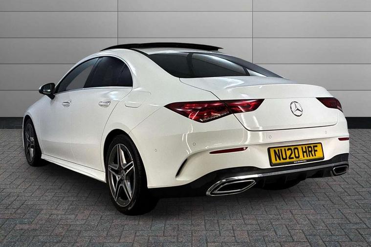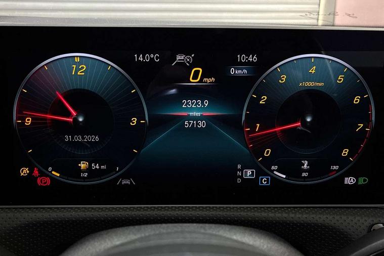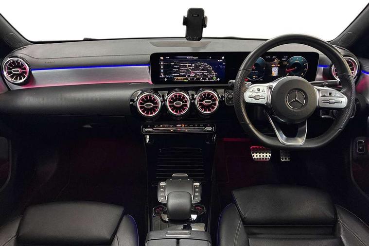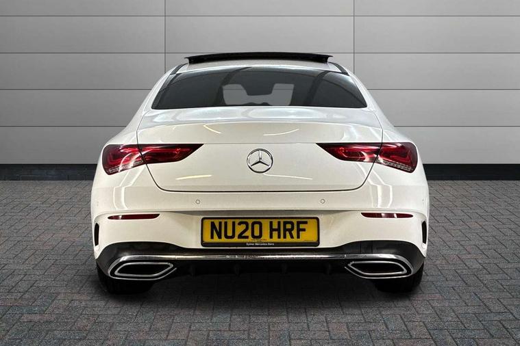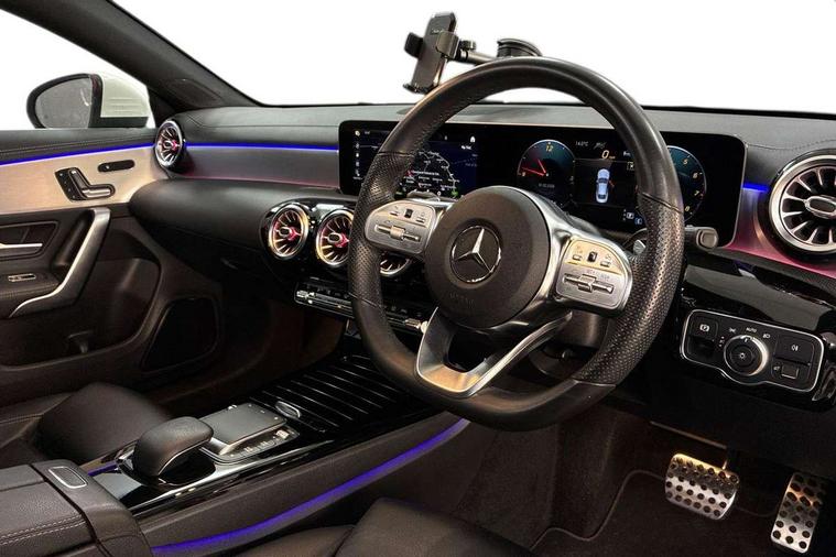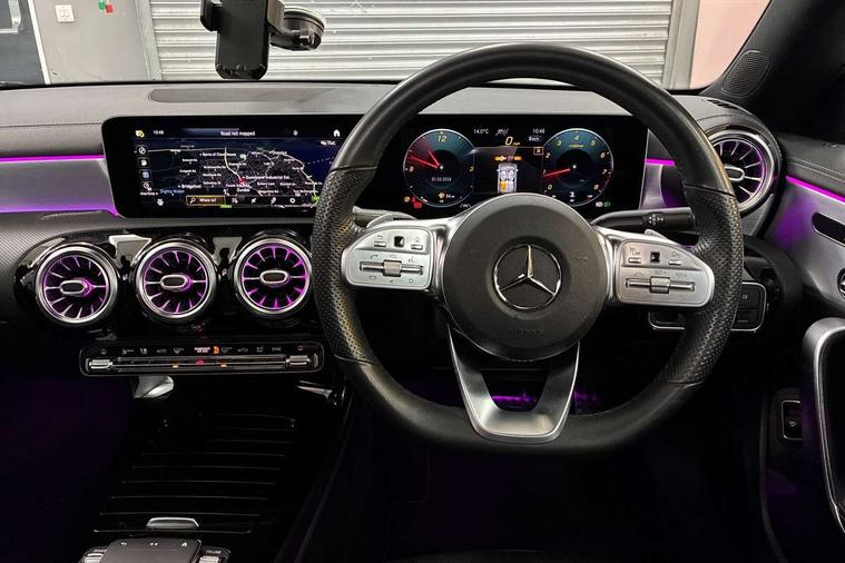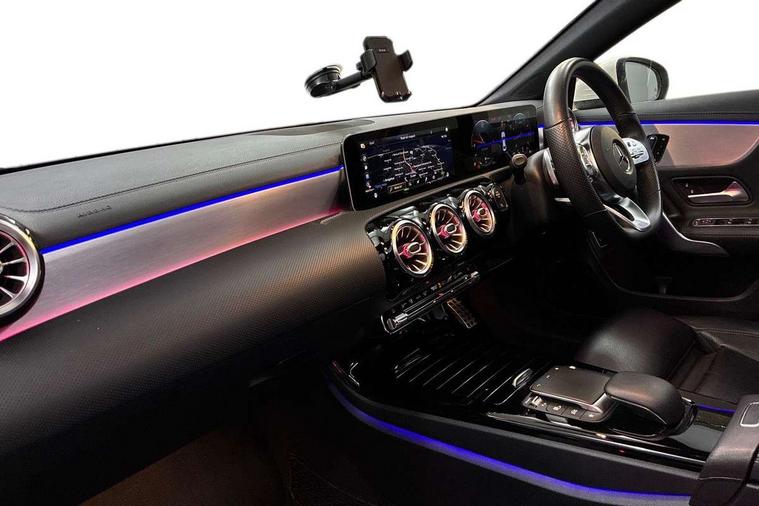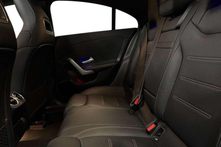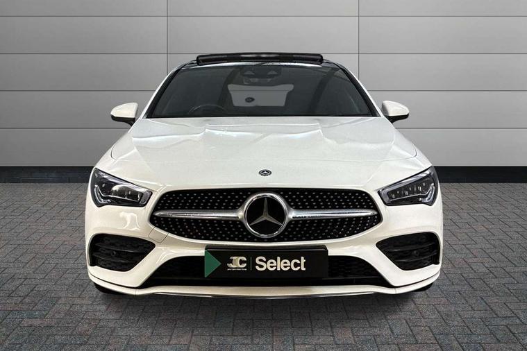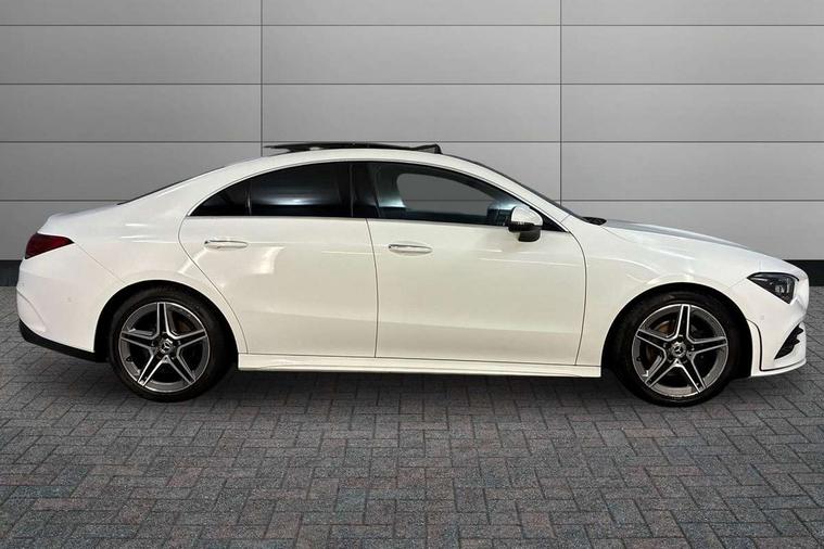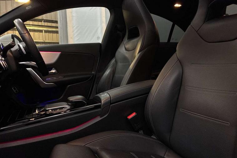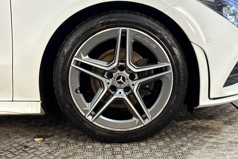 10.25 inch Instrument display with digital cockpit, 10.25 inch touchscreen central media display, Attention assist - Monitors steering behaviour and long journey fatigue, Dual bluetooth interfaces, DYNAMIC SELECT with a choice of driving modes (ECO, Comfort, Sport, Sport+ and Individual), ECO start/stop function, Fluid level warning indicator for fuel, oil, coolant and washer fluid, Hard-disk navigation, Hey Mercedes Voice activation, Lamp failure indicator, Mercedes me connect including emergency call system, accident recovery, breakdown and maintenance management, Outside temperature gauge, Owners manual and service booklet in English, Pre-installation for Vehicle Monitoring, Pre-installation for Vehicle Setup, Pre-installation of private car share, Preinstallation for Mercedes Benz link, Radio aerial integrated into front and rear windshields, Service indicator (ASSYST), Smartphone integration with Apple CarPlay and Android auto, Traffic sign assist, Trip computer in multifunction display with current consumption indicator, Wireless charging, 7G-DCT 7 speed automatic transmission, Lowered comfort suspension, Rear axle multi-link, DAB digital radio tuner, MBUX multimedia system with DAB digital radio and touchpad including satellite navigation, Mercedes Benz advanced sound system (225 W) with 10 speakers, 1 central speaker, speakers on doors, a tweeter on door, one sub woofer + boost amplifier, USB (type C) ports (2) in stowage compartment and 1 in front of centre console, Adaptive brake lights, AMG body styling with AMG front apron and rear apron and visible exhaust tailpipe in chrome trim elements, AMG bodystyling side skirts, Body colour bumpers, Body colour door handles, Chrome beltline strips, Chrome weather strip, Diamond radiator grille pins in chrome with silver painted louvres and chrome insert, Electric panoramic sliding sunroof, Electric windows, Electrically adjustable and heated door mirrors with integrated LED indicators, Exhaust system with 2 Visible tailpipe trim elements and rear apron with trim in chrome, Headlamp assist automatic headlamp activation, Heated glass rear windscreen + timer control, High level LED third brake light, Integrated LED daytime running lights, LED tail lamp, Multibeam LED headlamps with adaptive highbeam assist plus, Privacy glass with dark tinting on rear side windows and rear window, Rain sensing windscreen wipers with two sensitivity settings, Rear fog lamp, Vehicle Monitoring, Vehicle Setup, Window line trim strip in chrome, 3 spoke flattened bottom nappa leather multifunction steering wheel with perforated leather in grip area, 40:20:40 split folding rear seat backrests, Air conditioning - Two zone thermotronic luxury automatic climate control with display, Air vents with surround in silver chrome, Automatic child seat recognition sensor, Black roof lining, Brushed stainless steel sports pedals with rubber studs, Electrically adjustable front memory seats including lumbar support, Floor mats with stitched AMG lettering, Front centre armrest with stowage, Front seat cushion length adjustment, Galvanished gear shift paddles on steering wheel, Heated front seats, Illuminated glove compartment stowage, Illuminated Mercedes benz door sills with Mercedes Benz lettering, Interior lighting - 64 colour Ambient lighting, Luggage net on driver/front passenger seat backrest, Manually height and reach adjustable steering column, Rear armrest with two integral cup holders for drinks, Rear head restraints, Rear interior lamp, Spectacles compartment for driver, Sport seats with fixed head restraints, Stowage compartment in centre console with retractable cover, Sunvisors with illuminated vanity mirrors, Touchpad on center console, Twin front cupholders, Two outer rear seat isofix and top tether child seat fixing points, Keyless go pack - CLA, Light and sight pack - CLA, Mirror pack - CLA, Parking package - CLA, Seat comfort pack - CLA, Active bonnet pedestrain safety measure which detects an impact and raises bonnet by 65mm, Adaptive brake assist with hold function and hill start assist, Anti-lock braking system (ABS), Black seat belts, Bonnet with power domes, Brake pad wear warning indicator, Childproof locks manually operated for rear doors and electrically operated for rear power windows, Crash responsive emergency lighting, Driver and front passenger head and sidebags, Driver and front passenger windowbags, Drivers knee airbag, Dual stage driver and front passenger airbags, Electric parking brake, Electronic stability programme with acceleration skid control, ESP curve dynamic assist, Front and rear seatbelt reminder, Front brake callipers with Mercedes Benz lettering, Front passenger seat occupancy sensor, Three point rear seat belts, Tyre pressure monitoring system, Warning triangle and first aid kit, Alarm system with immobiliser and interior protection -Thatcham category 1, Remote central locking and crash sensor with emergency opening function, Light aluminium with longitudinal grain interior trim, 18" 5 twin spoke design alloy wheels painted in titanium grey with high sheen finish, Summer tyres, Tirefit tyre sealant kit,
