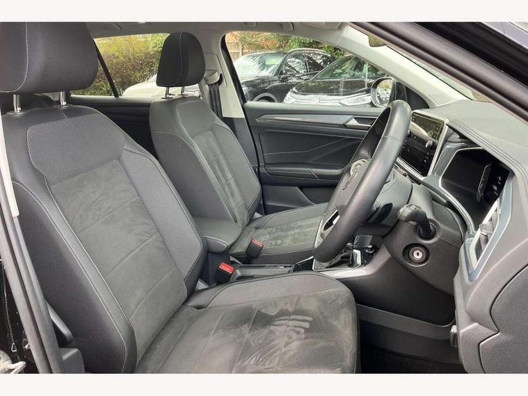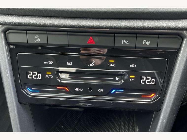 10.25" Digital cockpit pro, Bluetooth mobile phone interface, Driver alert system with fatigue detection, Driver tips and journey analysis, Emergency call service, Lane keeping system Lane Assist, Modified key software - reduce switch off time for key status change to Long no motion, Online services, Park assist including front and rear parking sensors, Service interval indicator, Tailgate/trunk lid release from outside, Think blue trainer driver tips and journey analysis, Warning sound and light for front seatbelts unfastened, Wireless app connect, Battery regeneration during braking, Start/stop function with battery regeneration, Diversity antenna for FM reception, Music playback - MP3, WMA and AAC files, Premium USB cable in choice of either Apple or Android smartphone compatibility, SD card slot, Simultaneous pairing of 2 compatible mobile devices, Title and cover art display, We Connect and We Connect Plus functionality, 3rd brake light, Auto dimming interior rear view mirror, Automatic hazard lights activation under emergency braking, Automatic headlight control with LED separate daytime running lights with coming/leaving home function, Body colour sports bumpers with silver metallic underbody fascia, Dynamic headlight range control with self adjusting whilst driving, Extended roof spoiler, Exterior mirrors aspherical on driver side, convex on front passenger side, External USB type C socket and charging sockets, Front windscreen wiper with intermittent wipe and 4 position delay, Heated rear window, LED rear combination lamps, LED rear number plate lights, LED tail lamp rear comination lamps, Light mode for poor weather, rain, fog or snow, Power windows with comfort operation and circuit breaker, Rain sensor, Rear exhaust tailpipe, Rear fog light on one side and reversing lights on both sides, Rear side wing doors, Rear wash/wipe with intermittent wipe setting, Remote electrically foldable door mirrors, puddle lights and reverse activated passenger's door mirror, 12V power socket in centre console, 3 rear head restraints, 3 seat bench in 2nd row, 4 load lashing points in luggage compartment, Air care climatronic air conditoning system with active combination filter and 2-zone temperature control, Chrome plated radiator grille inserts, air vent surrounds and light switch surrounds, Door and side trim panel with leatherette insert, Drawer under drivers seat, Front + rear carpet mats, Front centre armrest, Front comfort sports seats, Front cupholders x 2, Front footwell illumination, Instrument lighting, white adjustable panel illumination, Interior ambient lighting and surround lighting, Interior light delay, Isofix child seat preparation, Leather gearshift handle, LED interior light with switch off delay/dimmer and 2 front/rear LED reading lights, Load-through provision with cup holder when folded down ('Unsplit rear seat bench, split folding backrest, with centre armrest), Luggage compartment lighting, Non-folding front passenger seat backrest, Single front passenger seat, Storage compartment in left and right luggage area, Storage compartment in rear doors, Storage compartments in driver and front passenger doors, Sunvisors with illuminated vanity mirrors, Variable boot floor, height adjustable and removable, Driver assistance pack without proactive passenger protection - T-Roc, 3 point height adj front seatbelts + pretensioners, 3 point seatbelts in outer rear with ECE label, ABS, Child locks on rear doors, Driver and front passenger airbag with front passenger airbag deactivation, Driver and front passenger safety-optimised head restraints, Drivers seatbelt reminder, Electronic parking brake, Electronic Stability Control (ESC) inc EDL (Electronic Differential Lock) and ASR (Traction Control), Front and rear passengers curtain airbag system including front side airbags, Front assist with city emergency braking and pedestrian monitoring, Front seat side impact airbags, Predictive pedestrian protection, Rear disc brakes, Single tone horn, Tyre pressure loss indicator, Volkswagen roadside assistance, Anti-theft alarm system with interior monitoring, backup horn, and towing protection, Remote central locking with SAFELOCK, radio remote control with 2 remote control folding keys, Trims for alloy wheels,