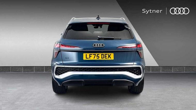 Adaptive cruise control, Audi connect emergency call and service, Audi connect remote and controls, Audi drive select (Balanced/Individual, effeciency, comfort and dynamic), Audi virtual cockpit plus - 11.9" display, Bluetooth interface, Camera based traffic sign recognition, Driver attention and fatigue monitor with driver monitoring, Front cross traffic assist, Lane departure warning with emergency assist, Panoramic curved display with 12.8" MMI navigation plus and MMI touch, Park assist plus with parking system and 360 display, Phonebox light with wireless charging, Reversing camera, Smartphone interface includes wireless Apple carplay/Android Auto, Start/stop system, Swerve assist and turn assist, Traffic sign based speed limiter, Voice control system with natural language interaction, Comfort suspension, Petrol Particulate Filter, 2 USB-C ports with charge and data functions, Audi sound system with 10 loudspeakers, subwoofer, 8 channel amplifier with 260 watts, DAB digital radio module, Acoustic glass for front door windows, Acoustic windscreen, Aluminium roof rails, Aluminium window trim, Audi Q3 lettering on the B-pillars, Auto dimming door mirrors, Auto dimming rear view mirror, Body colour door mirrors, Contrasting finish in volcano grey, Electrically folding, adjustable and heated door mirrors with integrated LED side indicators and kerb view function for passenger side, Full paint finish, Illuminated door sills with aluminium inserts at the front with S logo, LED daytime running lights, LED headlights plus with LED rear lights pro with continous light strip, illuminated Audi rings, rear, LED third brake light, Loading sill protector in stainless steel, Main beam assist, Privacy glass - dark tinted rear window, rear door and side windows, Projection light in the exterior mirrors - Projects a graphic element onto the ground, Q3 badging on the rear, Rain and light sensors, Rear side wing doors, Rear window, rear door windows and rear side windows in clear glass, Rear wiper, Sports bumpers, 3 seat bench in 2nd row, 3 spoke flat top and bottomed leather multi function sport steering wheel with gear shift paddles and "S" badging, 3-zone deluxe automatic air conditioning, 4 way lumbar support for the front seats - electric with horizontal and vertical adjustment in four directions, Black cloth headlining, Front and rear floor mats, Front and rear headrests, Front centre armrest, Heated front seats, Height and reach adjustable steering wheel, Interior storage compartment, Leather/artificial leather upholstery combination with S emblem + front sports seats, Luggage compartment lid, electrically opening and closing, Manual front seats with height adjustment, Rear seat bench plus with split folded 40:20:40, Single front passenger seat, Stainless steel pedals, Steering wheel operating unit, gloss black, Storage compartment in front centre console, Ambient lighting package pro - Q3, S line exterior styling pack - Q3, 3x3 point rear seatbelts, Convenience key with safelock, Driver and front passenger airbag with passenger airbag deactivation, Electromechanical parking brake, Electronic stabilisation control including ABS, ASR and EDL, First aid kit with warning triangle and high visibility vests, Front emergency brake assist, Hill hold assist, i - Size child seat mounting on the front passenger side and i - Size and top tether on the outer rear seats, Power operated child locks, Seatbelt monitoring, Three point automatic belts with belt tensioner and height adjustment, Tyre pressure loss indicator, Anti theft wheel bolts, Remote central locking, Thatcham approved category 1 anti theft alarm, Dark aluminium divergence inlay, Interior elements in dinamica microfibre, Interior trims in aluminium look, Tool kit and Jack,