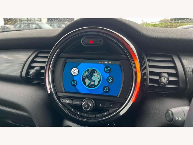 Acoustic seat-belt warning, Basic bluetooth function with USB audio, Brake fluid level warning light, Brake pad wear indicator warning light, DTC - Dynamic traction control, Exterior temperature gauge, Intelligent emergency call, MINI TeleServices, Oil level indicator, On board computer, Push button starter, Service interval indicator, Servotronic PAS, Electronic differential lock, Auxiliary input socket, DAB digital radio module, 2 speed wipers+intermittent wipe, Anti dazzle mirror, Anti trapping/one touch open close front windows, Body coloured bumpers, Chrome bezels around rear lights and headlights, Chrome door handles, Chrome exhaust tailpipe, Chrome grille surround, Chrome plated trim on bottom edge of window, Chrome strip on lower grille, Electric front windows, Electric rear windows, Electrically adjustable door mirrors, Flared wheel arches, Follow me home headlights, Green tinted heat insulating glass, Heated door mirrors/heated windscreen washers, Heated rear window with auto timer, High gloss black tailgate, LED fog lights, LED rear lights, Rear wiper, Roof spoiler in roof colour, Side scuttles, White indicator lights, 2 rear head restraints, 4 boot load lashing points, 4 way manually adjustable passenger seat with height, reach, tilt, backrest and headrest, 6-way manually adjustable driver's seat, Active carbon filter, Adjustable front seats backrest, Air recirculation system, Auxiliary socket in centre console storage compartment, Centre console storage, Driver's seat height adjuster, Driver/passenger sunvisors, Easy entry seats, Front and rear cupholders, Front head restraints, Front passenger grab handle, Gear/selector and handbrake in artificial leather, Internal chrome door handles, Isofix child seat preparation, Luggage compartment lighting, Multifunction steering wheel, Reach + rake adjustable steering column, Rear grab handles, Rear storage trays, Split folding rear seats, Storage compartments in doors, Toolkit in luggage compartment, 3 point seatbelts, 3x3 point rear seatbelts, ABS/EBD, ASC+T, Cornering brake control (CBC), Crash Sensor - activates hazard/interior lighting + unlocks doors, Driver and passenger airbags, Driver/front passenger side airbags, DSC - Dynamic Stability Control, Fuel cut off safety device, Head airbags, Hill start assist, Manual passenger airbag deactivation function, Seatbelt pretensioners, Tyre pressure warning, Ventilated front disc brakes, Drive away door locking, Locking wheel bolts, Remote central locking/doors+fuel cap+tailgate, Second remote key, Thatcham category 1 alarm + immobiliser,
