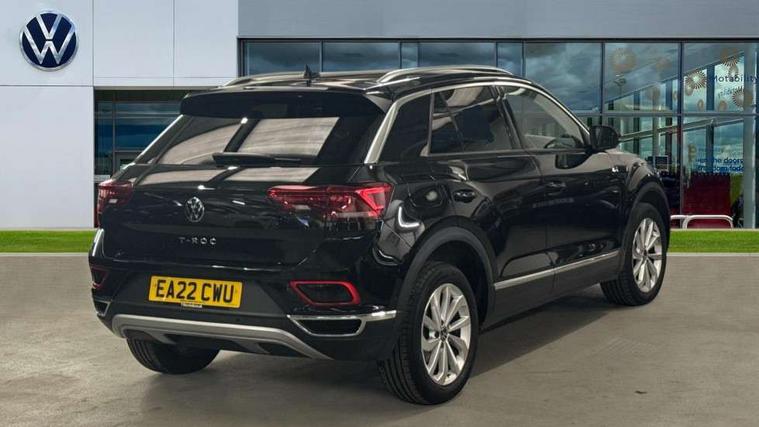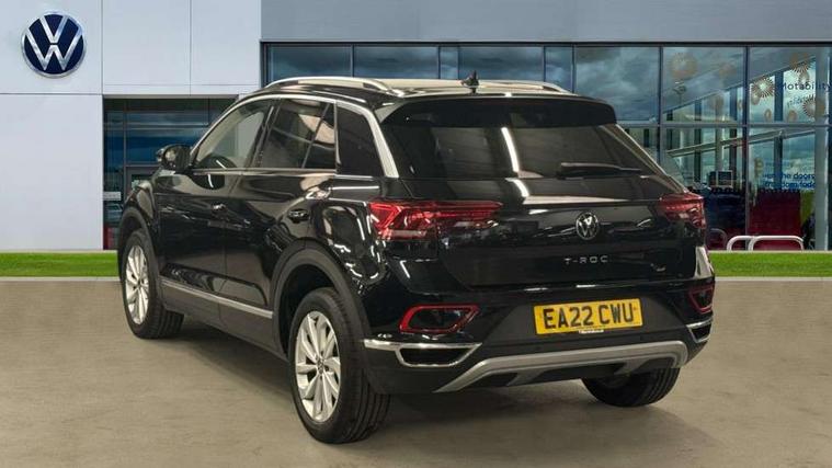 10.25" Digital cockpit pro, Bluetooth mobile phone interface, Driver alert system with fatigue detection, Driver tips and journey analysis, Emergency call service, Lane keeping system Lane Assist, Modified key software - reduce switch off time for key status change to Long no motion, Online services, Park assist including front and rear parking sensors, Service interval indicator, Tailgate/trunk lid release from outside, Think blue trainer driver tips and journey analysis, Warning sound and light for front seatbelts unfastened, Wireless app connect, Battery regeneration during braking, Start/stop function with battery regeneration, Diversity antenna for FM reception, Front and rear 6 speakers, Music playback - MP3, WMA and AAC files, Premium USB cable in choice of either Apple or Android smartphone compatibility, SD card slot, Simultaneous pairing of 2 compatible mobile devices, Title and cover art display, We Connect and We Connect Plus functionality, 3rd brake light, Auto dimming interior rear view mirror, Automatic hazard lights activation under emergency braking, Automatic headlight control with LED separate daytime running lights with coming/leaving home function, Body colour sports bumpers with silver metallic underbody fascia, Dynamic headlight range control with self adjusting whilst driving, Extended roof spoiler, Exterior mirrors aspherical on driver side, convex on front passenger side, External USB type C socket and charging sockets, Front windscreen wiper with intermittent wipe and 4 position delay, Heated rear window, LED Plus headlamps, LED rear combination lamps, LED rear number plate lights, LED tail lamp rear comination lamps, Light mode for poor weather, rain, fog or snow, Power windows with comfort operation and circuit breaker, Rain sensor, Rear exhaust tailpipe, Rear fog light on one side and reversing lights on both sides, Rear side wing doors, Rear wash/wipe with intermittent wipe setting, Remote electrically foldable door mirrors, puddle lights and reverse activated passenger's door mirror, 12V power socket in centre console, 3 rear head restraints, 3 seat bench in 2nd row, 4 load lashing points in luggage compartment, Air care climatronic air conditoning system with active combination filter and 2-zone temperature control, Chrome plated radiator grille inserts, air vent surrounds and light switch surrounds, Door and side trim panel with leatherette insert, Drawer under drivers seat, Front + rear carpet mats, Front centre armrest, Front comfort sports seats, Front cupholders x 2, Front footwell illumination, Instrument lighting, white adjustable panel illumination, Interior ambient lighting and surround lighting, Interior light delay, Isofix child seat preparation, Leather gearshift handle, LED interior light with switch off delay/dimmer and 2 front/rear LED reading lights, Load-through provision with cup holder when folded down ('Unsplit rear seat bench, split folding backrest, with centre armrest), Luggage compartment lighting, Non-folding front passenger seat backrest, Single front passenger seat, Storage compartment in left and right luggage area, Storage compartment in rear doors, Storage compartments in driver and front passenger doors, Sunvisors with illuminated vanity mirrors, Variable boot floor, height adjustable and removable, Driver assistance pack without proactive passenger protection - T-Roc, 3 point height adj front seatbelts + pretensioners, 3 point seatbelts in outer rear with ECE label, ABS, Child locks on rear doors, Driver and front passenger airbag with front passenger airbag deactivation, Driver and front passenger safety-optimised head restraints, Drivers seatbelt reminder, Electronic parking brake, Electronic Stability Control (ESC) inc EDL (Electronic Differential Lock) and ASR (Traction Control), Front and rear passengers curtain airbag system including front side airbags, Front assist with city emergency braking and pedestrian monitoring, Front seat side impact airbags, Predictive pedestrian protection, Rear disc brakes, Single tone horn, Tyre pressure loss indicator, Volkswagen roadside assistance, Alarm with interior protection, Anti-theft alarm system with interior monitoring, backup horn, and towing protection, Remote central locking with SAFELOCK, radio remote control with 2 remote control folding keys, Trims for alloy wheels,