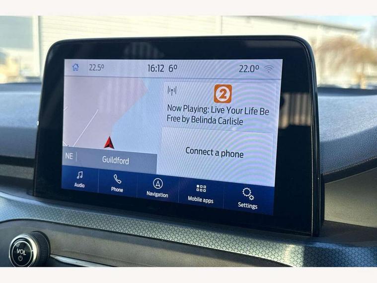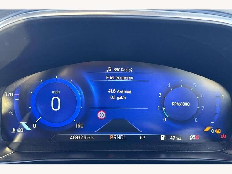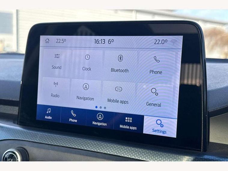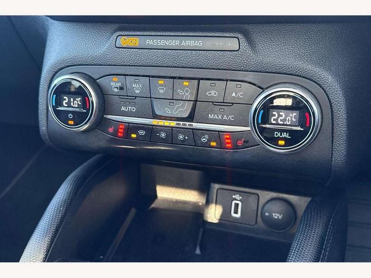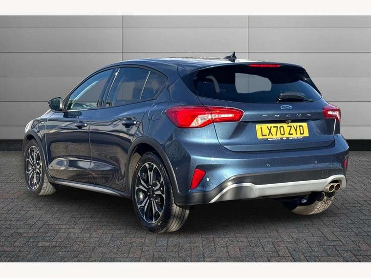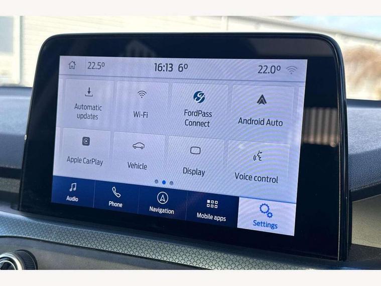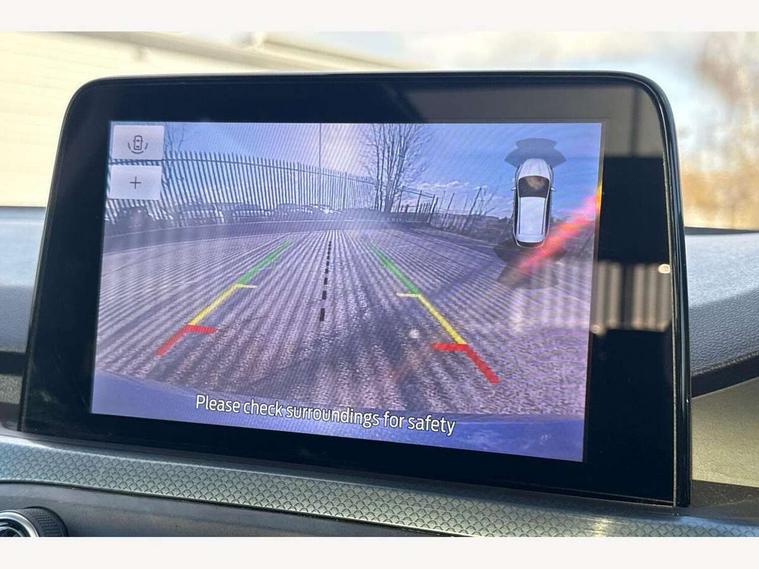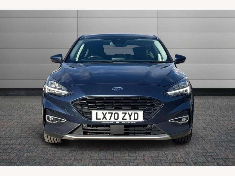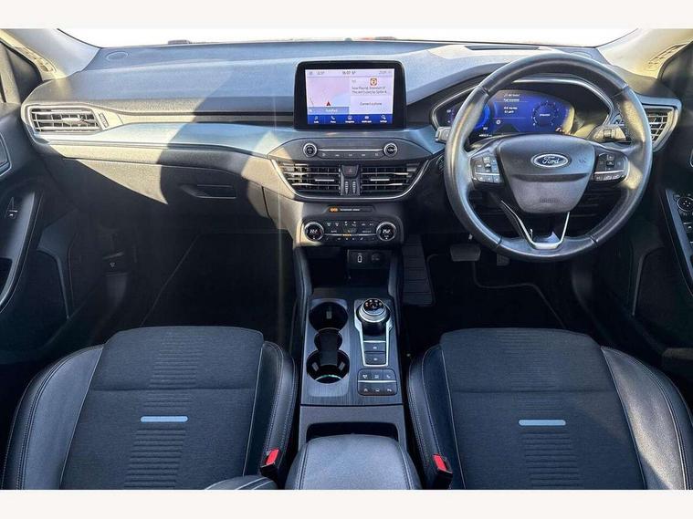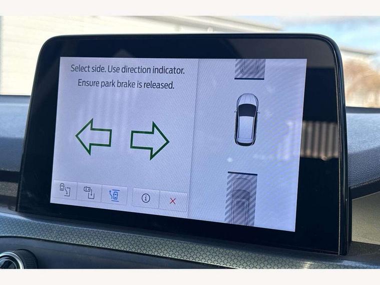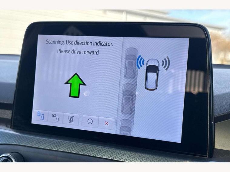 Bluetooth system, Digital clock, Easy fuel capless refuelling system, Eco mode, Ford pass connect, Ford SYNC 3 nav system with DAB radio, 8" colour touch screen, voice control, app link, Apple car play/Android auto and 4.2" TFT coloured cluster, Front and rear parking sensors, Intelligent speed assist, PAS, Rotary gear shift dial, Selectable drive modes with slippery and trail mode, Trip computer, Raised ride height (30mm higher than standard), Aux input, 'Quickclear' heated windscreen/heated washer jets, Active branded scuff plates, Active front and rear bumper with unique upper and lower grille, Auto dimming rear view mirror, Auto headlamps (on/off), Automatic rain sensing wipers, Black painted roof and mirror caps, Body colour power folding door mirrors with puddle lights, Body coloured bumpers, Body coloured door handles, Electrically operated and heated door mirrors with side indicators, Electrically operated front and rear windows with one touch opening and closing, Front variable intermittent wipers with electric wash, Heated rear window, LED daytime running lamp, LED front fog lamps with cornering function, Openable panorama roof, Rear privacy glass, Tailgate wash/wipe, Twin exhaust tailpipes, Unique door and instrument panel inserts, Unique skid plates and side rocker mouldings, 3 spoke leather trimmed steering wheel with integrated audio controls, 6 way power adjustable driver seat, 60/40 split back and cushion rear seats with 2 height adjustable headrests, Centre console with armrest, Driver's seat manual height adjust, Dual zone electronic air temperature control, Front and rear floor mats with blue stitching, Front passenger seat manual height and lumbar adjust, Gear lever gaiter ring with blue stitching, Heated front seats, Height adjustable front headrests, Isofix child seat preparation, Paddle shift controls, Partial leather upholstery with blue stitching, Reach + rake adjustable steering column, Rear centre headrest, Soft console knee pads with blue stitching, ABS+Electronic Brake force Distribution, Auto hold function, Driver airbag, Electronic parking brake, Electronic stability control, Front and rear seatbelt reminder, Front inertia reel height adjustable seatbelts with pre-tensioners, Front passenger airbag, Front side airbags, Hill start assist, Passenger airbag deactivate switch, Post collision braking, Pre collision assist with autonomous emergency braking and pedestrian/cyclist detection, Side curtain airbags, Three rear inertia reel lap/diagonal seatbelts, Tyre pressure monitoring system, Keyless entry, MyKey system, Remote central locking & engine immobiliser, Thatcham category 1 alarm, 18" 5x2 spoke absolute black machined painted alloy wheels, Mini steel spare wheel,