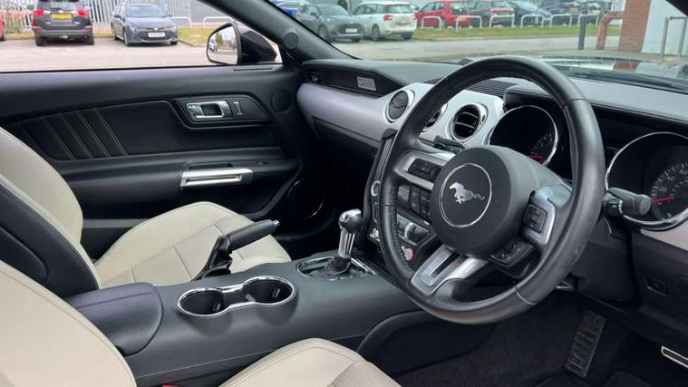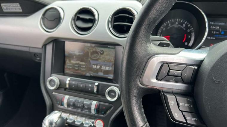 Cruise control, Electric power steering, Ford SYNC Bluetooth connection with voice control and USB port, Rear view camera, Service interval indicator, SYNC Emergency Assistance, Trip computer, Independent front/rear suspension, Limited slip differential, DAB Digital radio, Auto dimming rear view mirror, Automatic headlights, Automatic rain sensing wipers, Bi-Xenon headlights, Body colour bumpers, Body colour door mirrors, Electric folding door mirrors with puddle lamps, Electric front windows, Electric rear quarter windows, Front fog lights, Front grille with vertical bars, 6 way electric front seats, Ambient lighting, Cup holders, Driver's electric lumbar adjustment, Dual electronic automatic temperature control, Front headrests, Front sports seats, Gearshift paddles, Illuminated entry system, Isofix system on outer rear seats, Leather gearknob, Leather multifunction steering wheel, Leather upholstery, Rake/reach adjustable steering wheel, 4 seatbelts, ABS, Brembo brake callipers, Drivers knee airbag, Dual front airbags, ESP, Front side airbags, Tyre pressure monitor, Key free system with 'Ford Power' start button, Keyless entry, MyKey system, Perimeter alarm, 19" Black multispoke alloy wheels, Tyre repair kit,